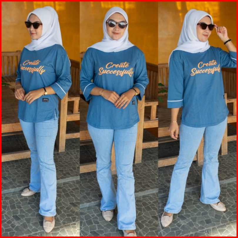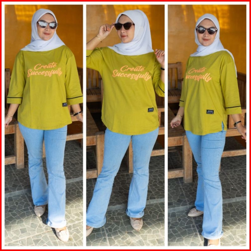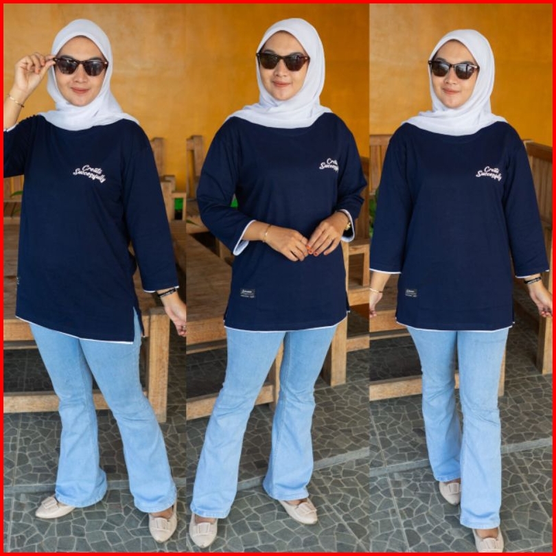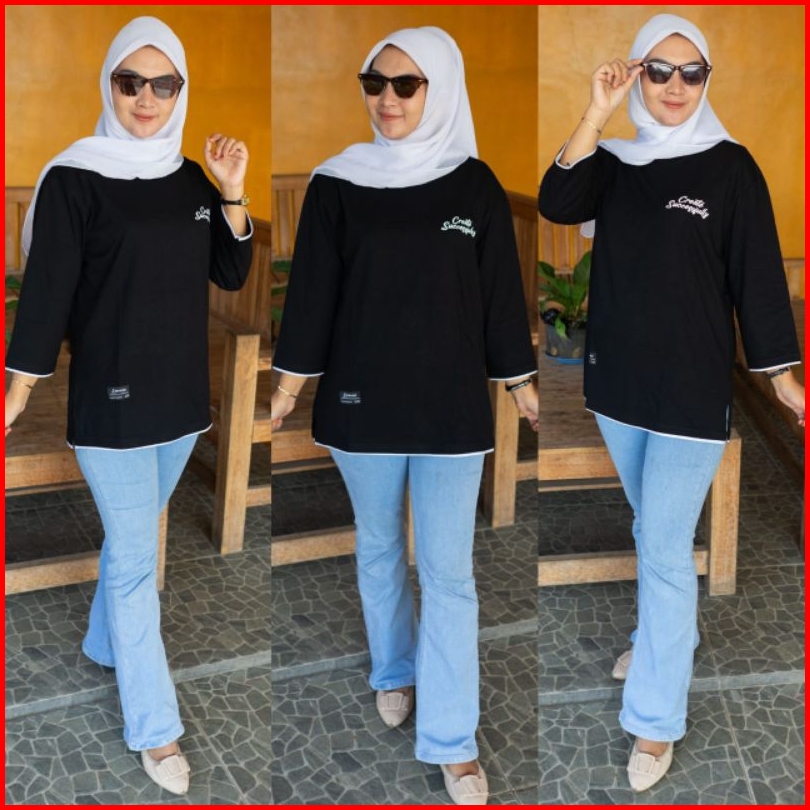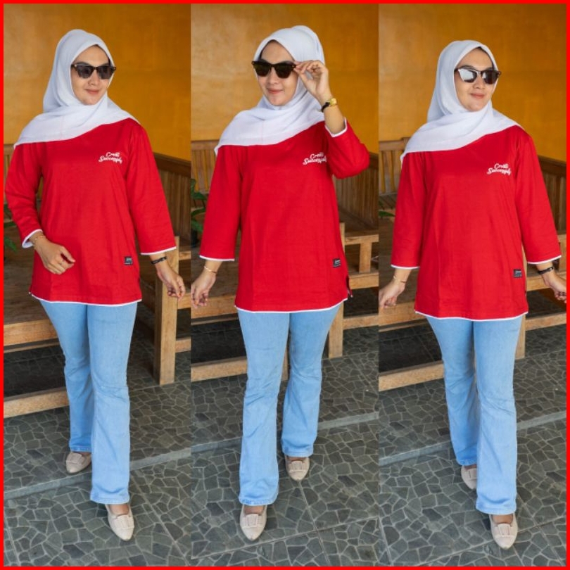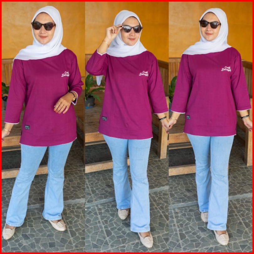 Kaos Motip Lengan Balap Dan Cubit 01b Atasan Wanita Tangan 7 8 Bahan Katun Kombet 20s Motif Terbaru Bahan Kombet 20s
