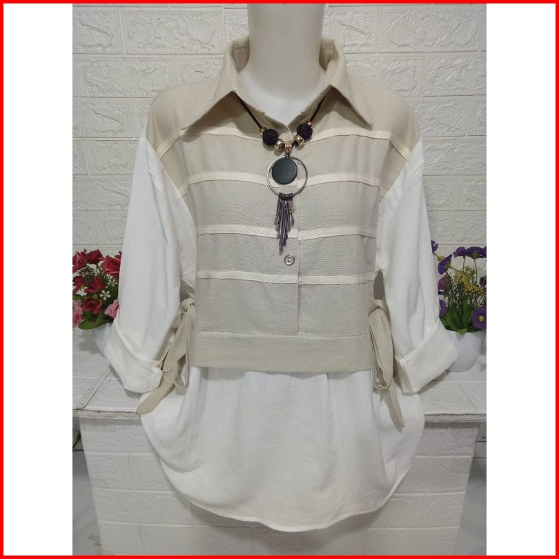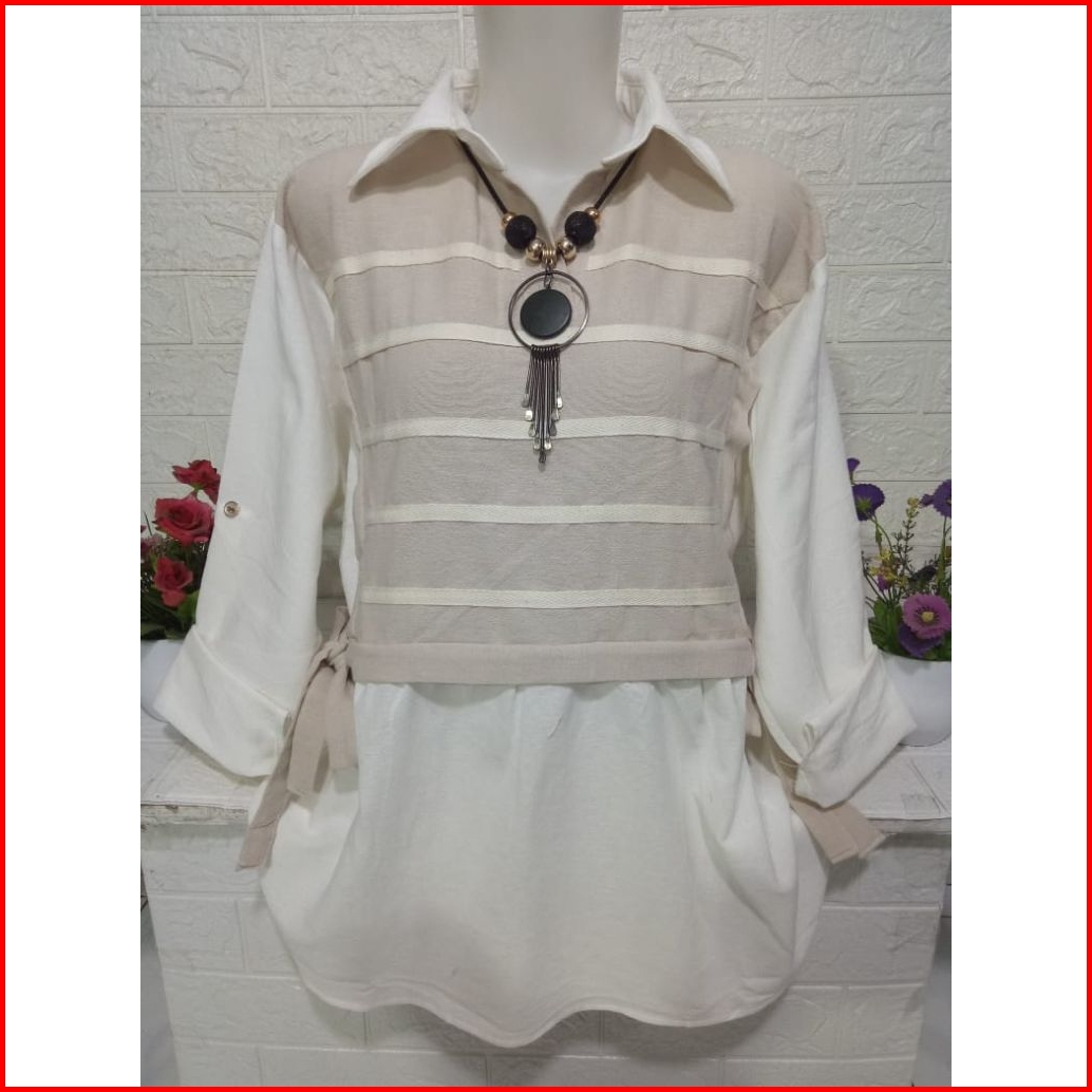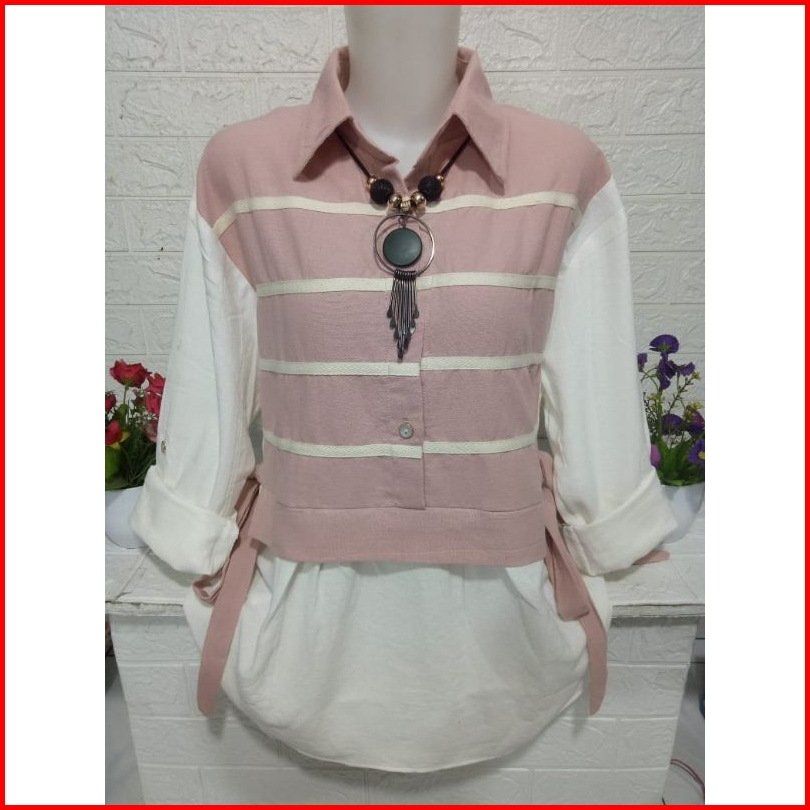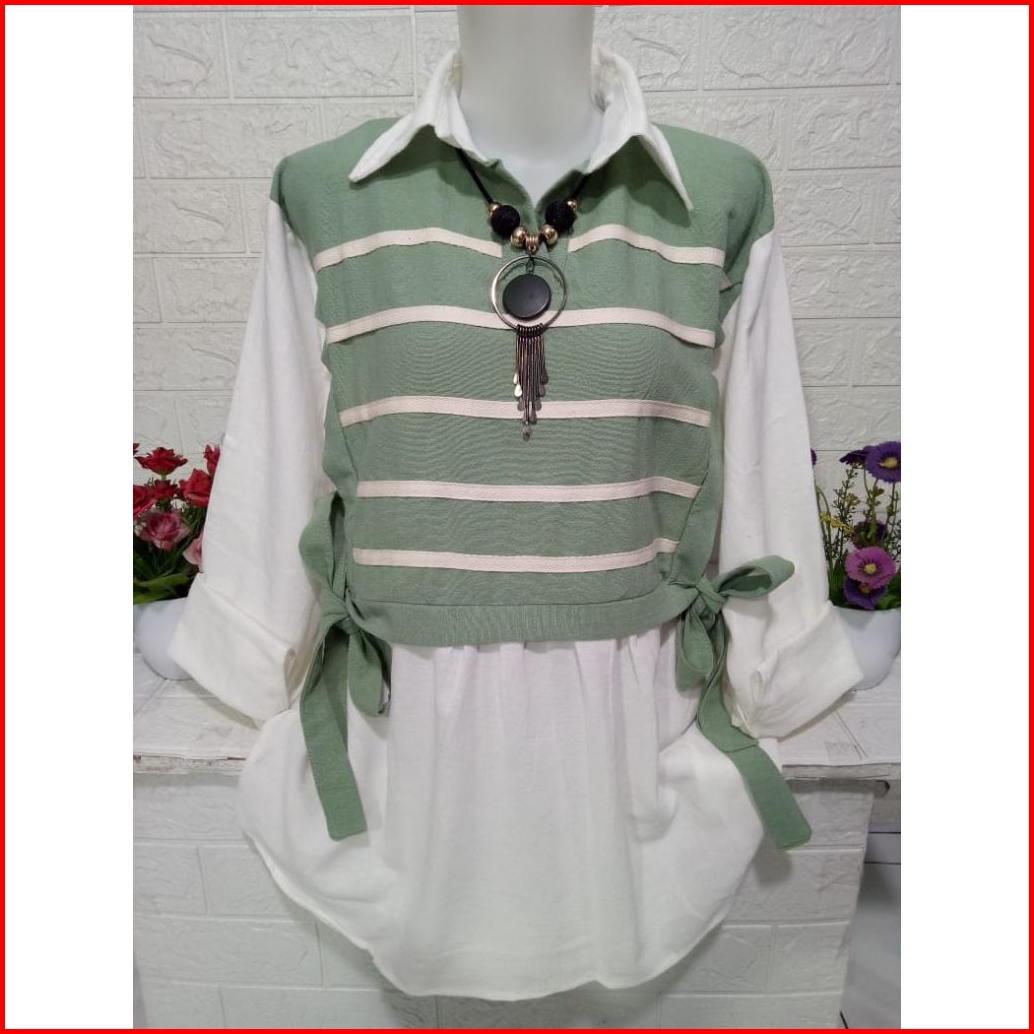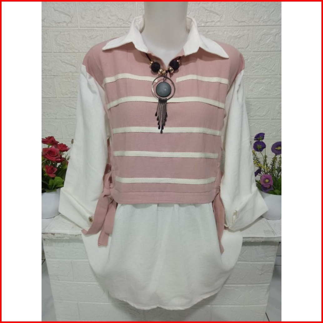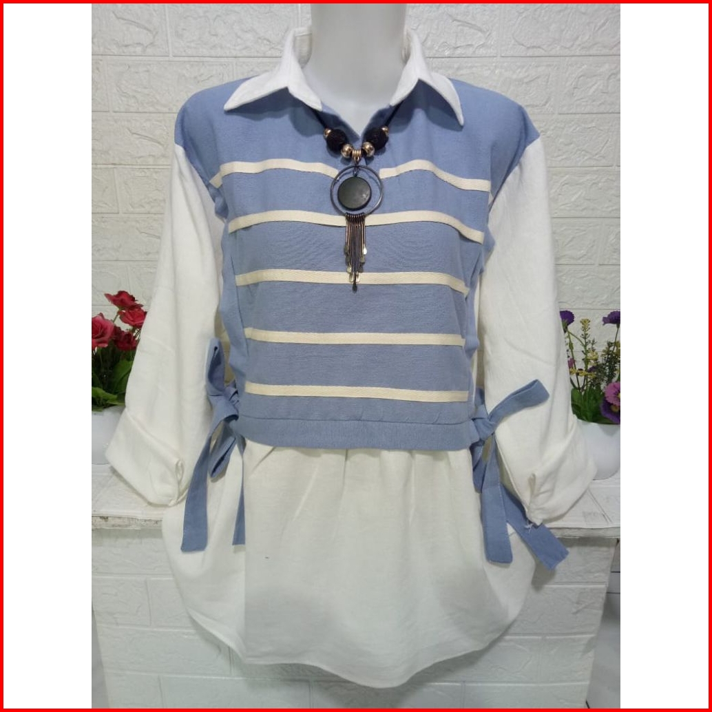 Atasan Wanita Blouse Model Striped Shirt Lengan Panjang B389