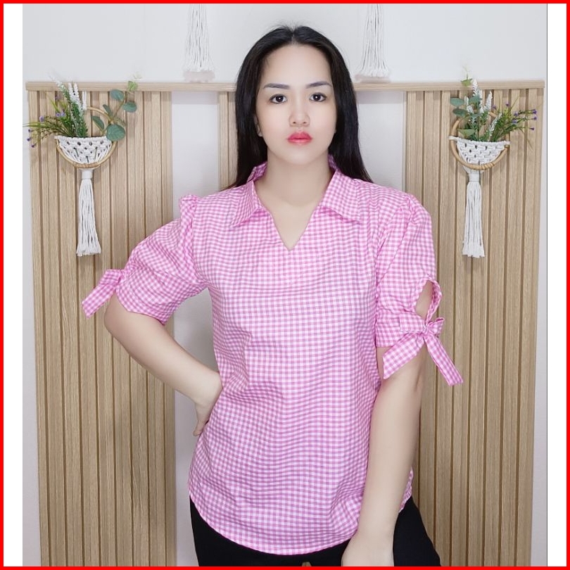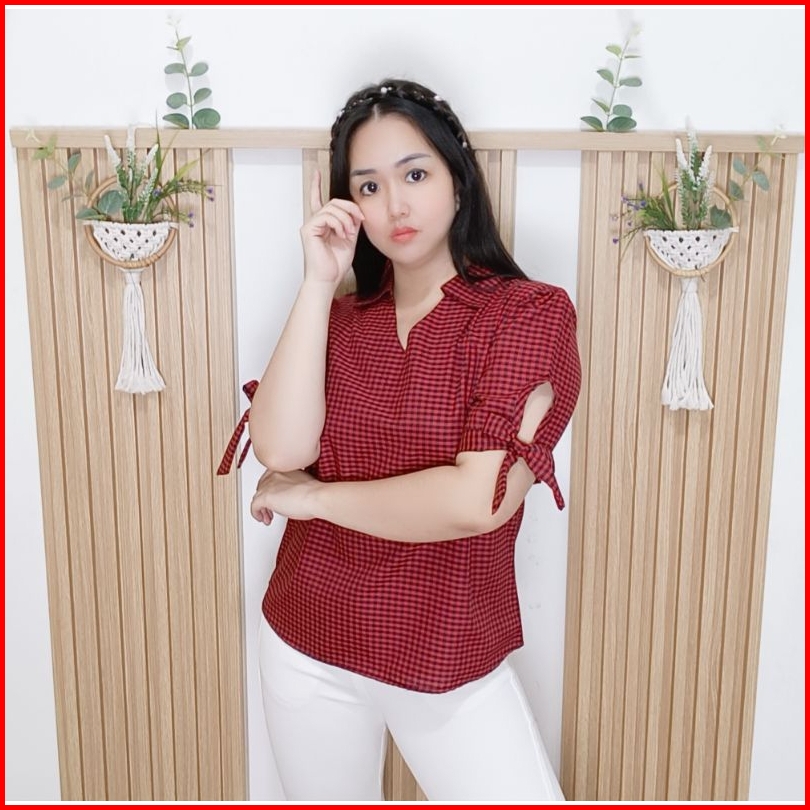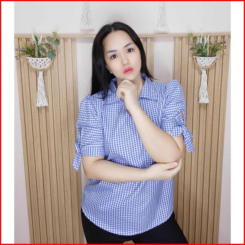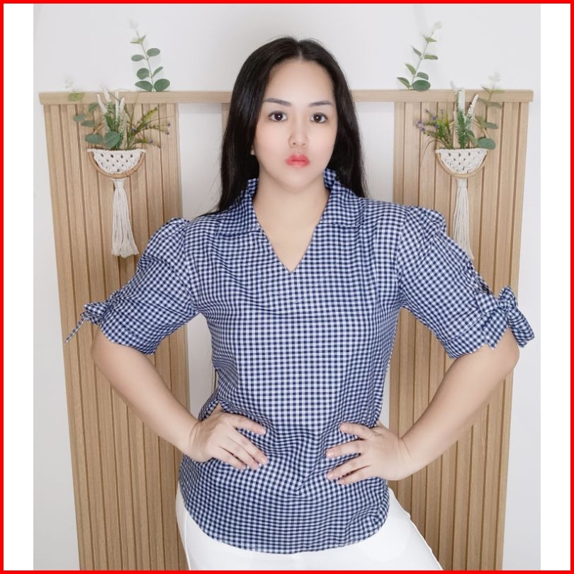 Jjj Lyn - Blouse Yuriko Atasan Wanita Motif Kotak Atasan Kerja Atasan Kasual