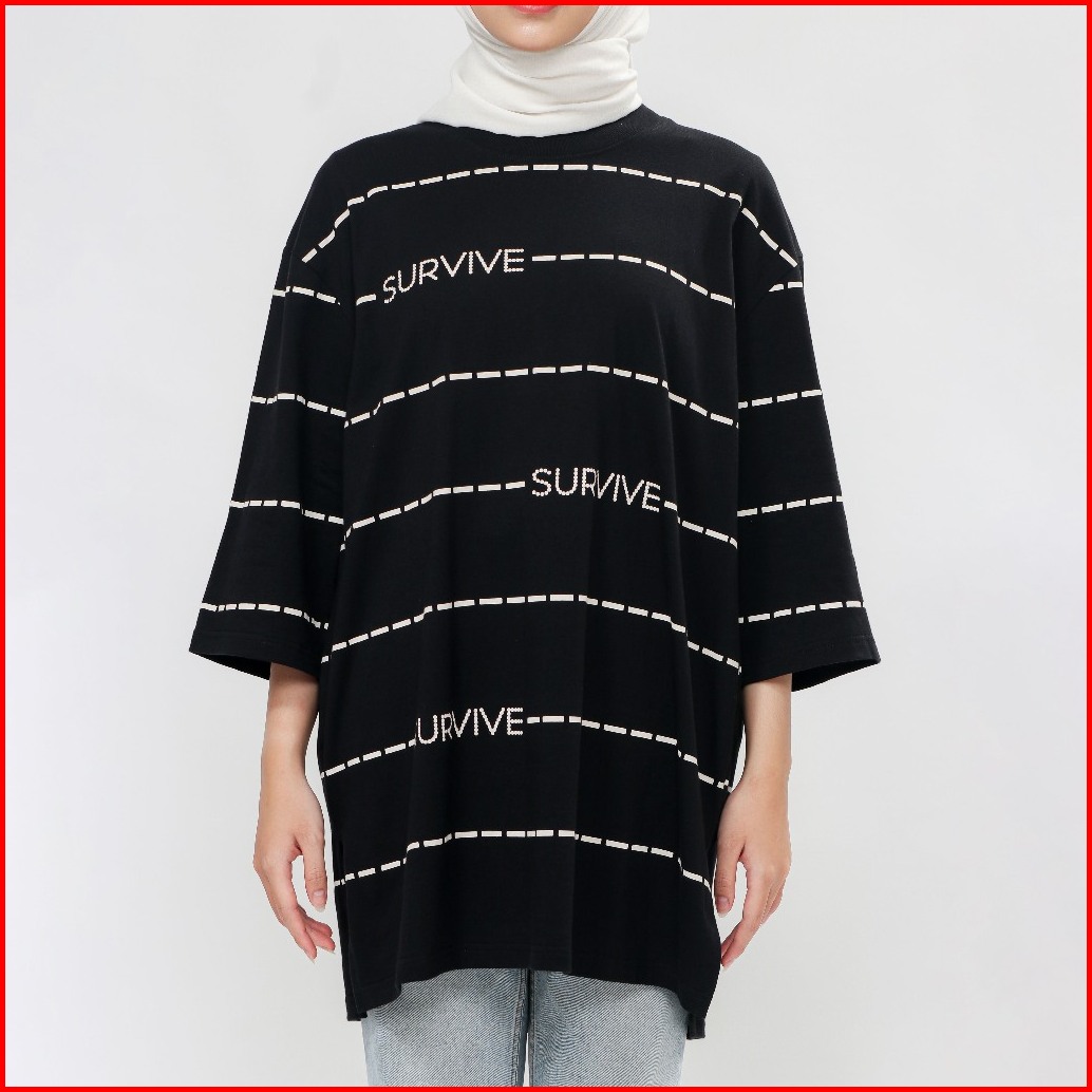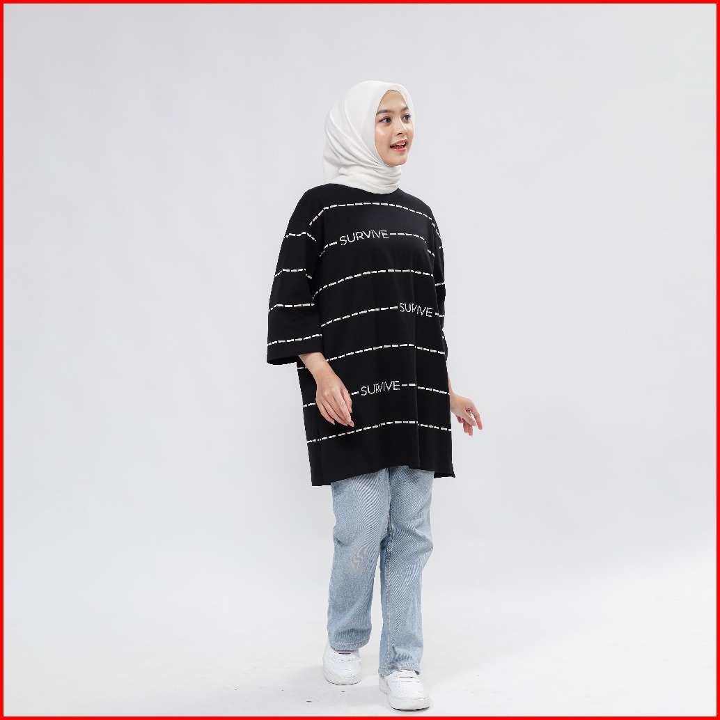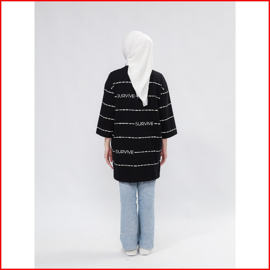 Survive Kaos Wanita Oversize Hitam Stripe Lengan 7 8