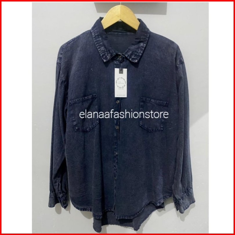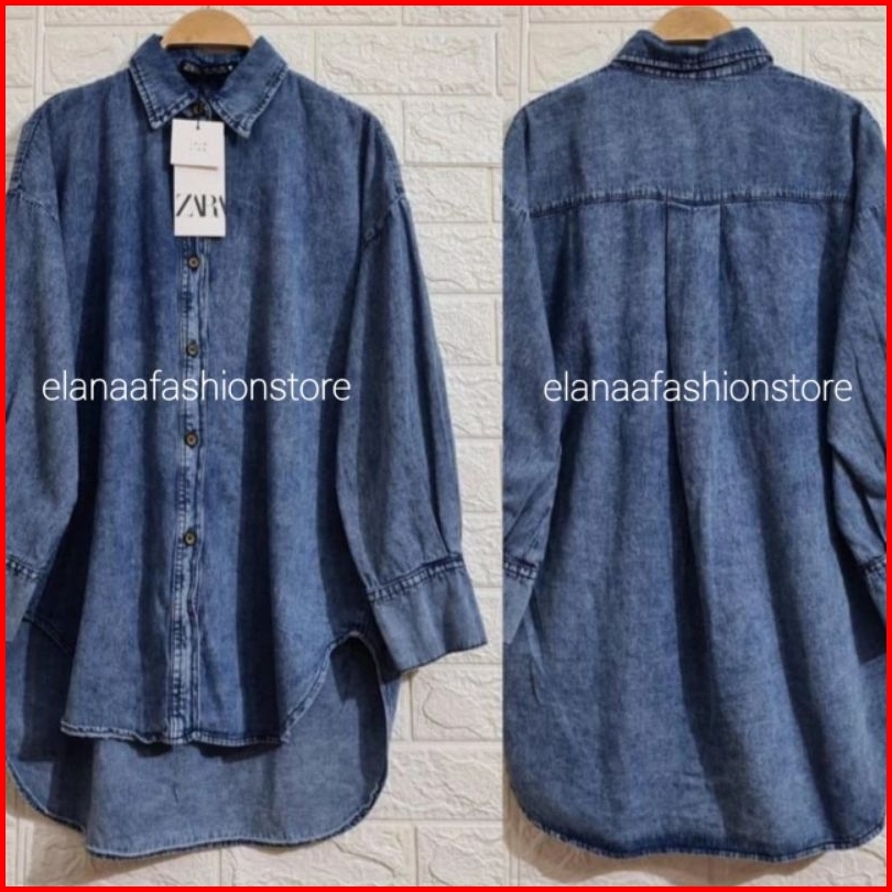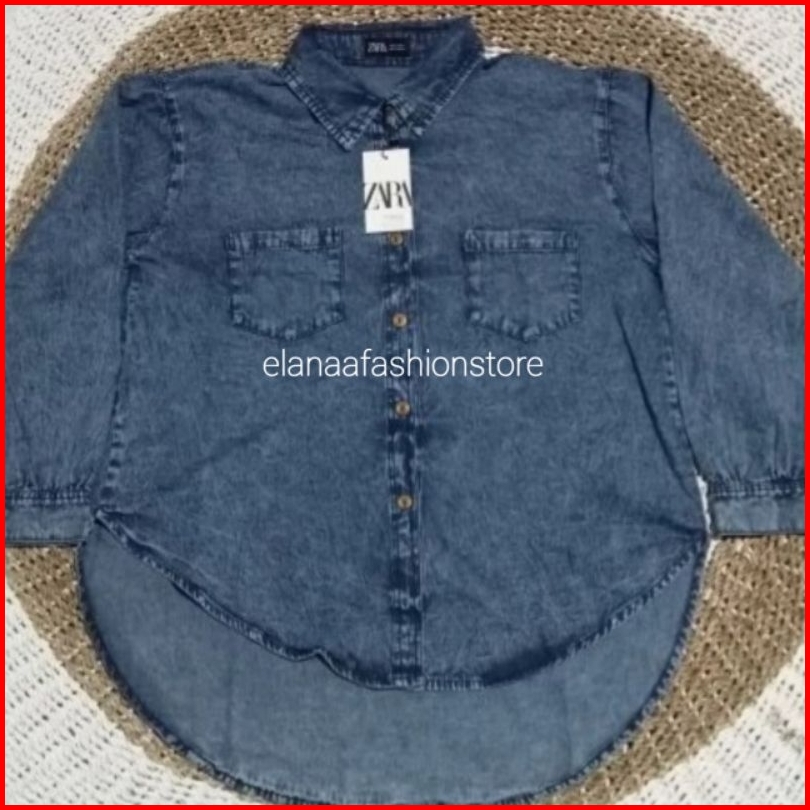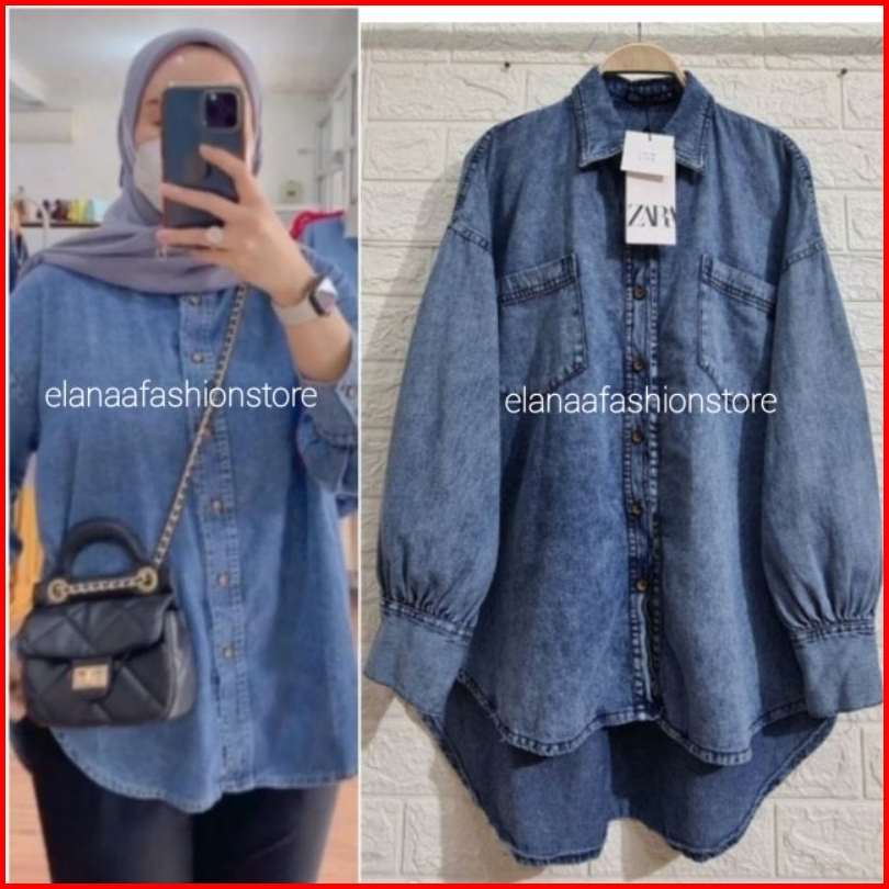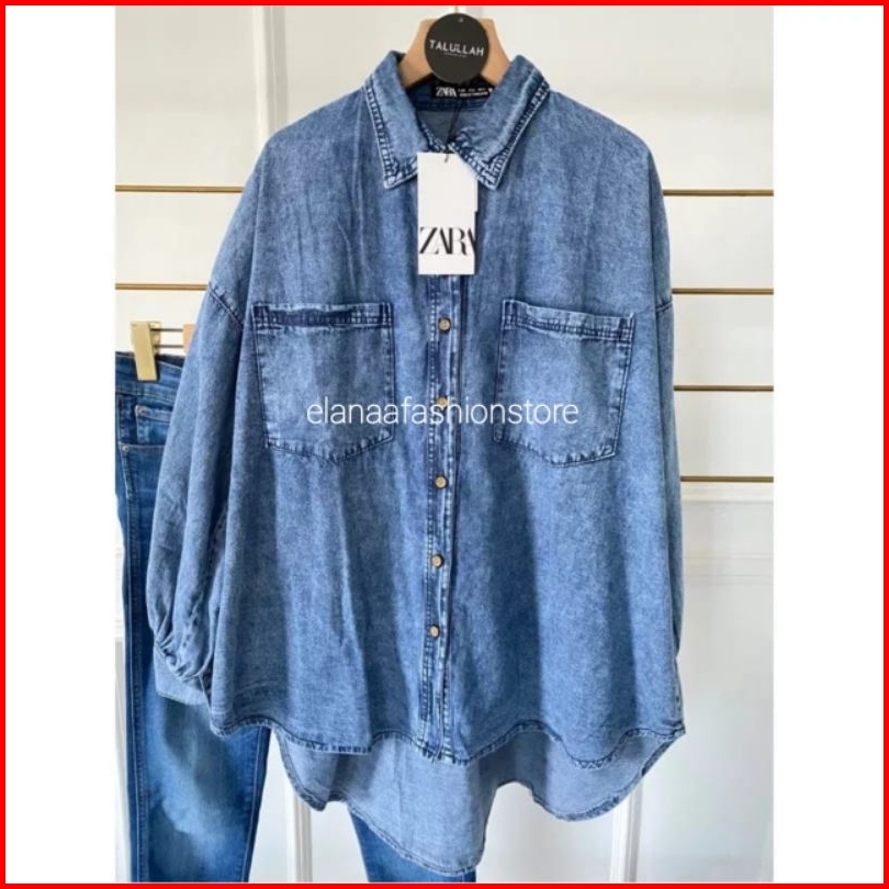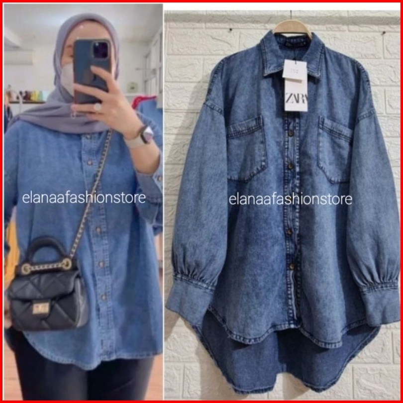 Atasan Kemeja Jeans Wanita Oversize Kemeja Jeans Wanita Kantong Lengan Tangan Kancing