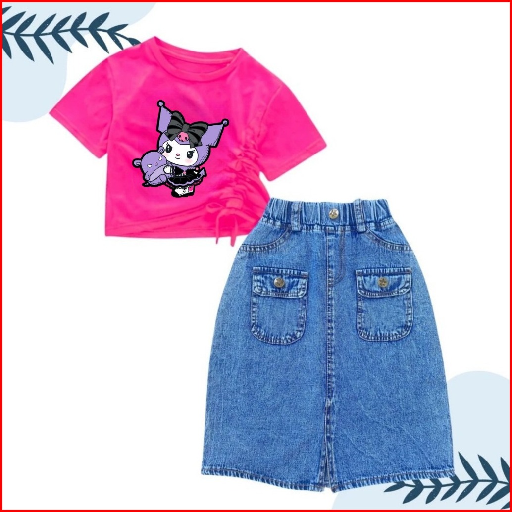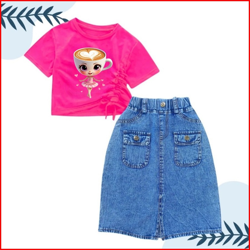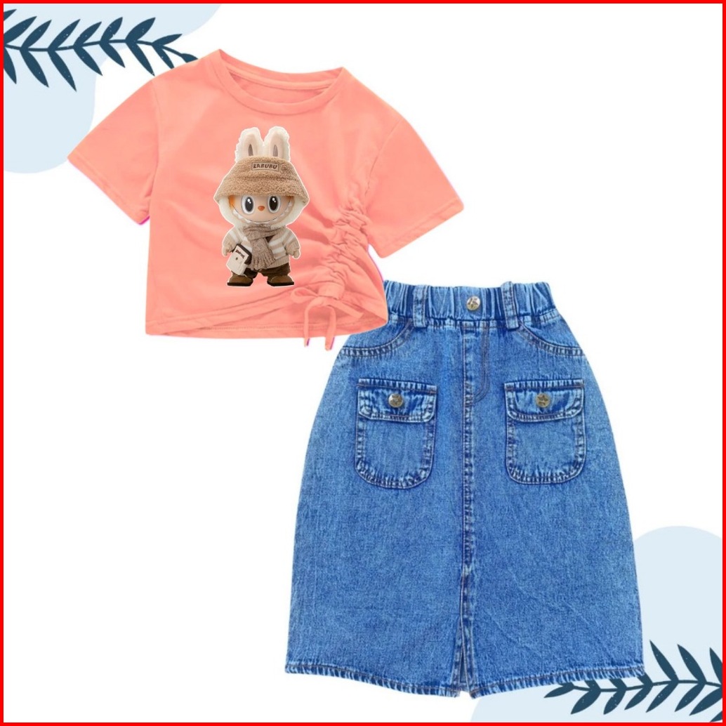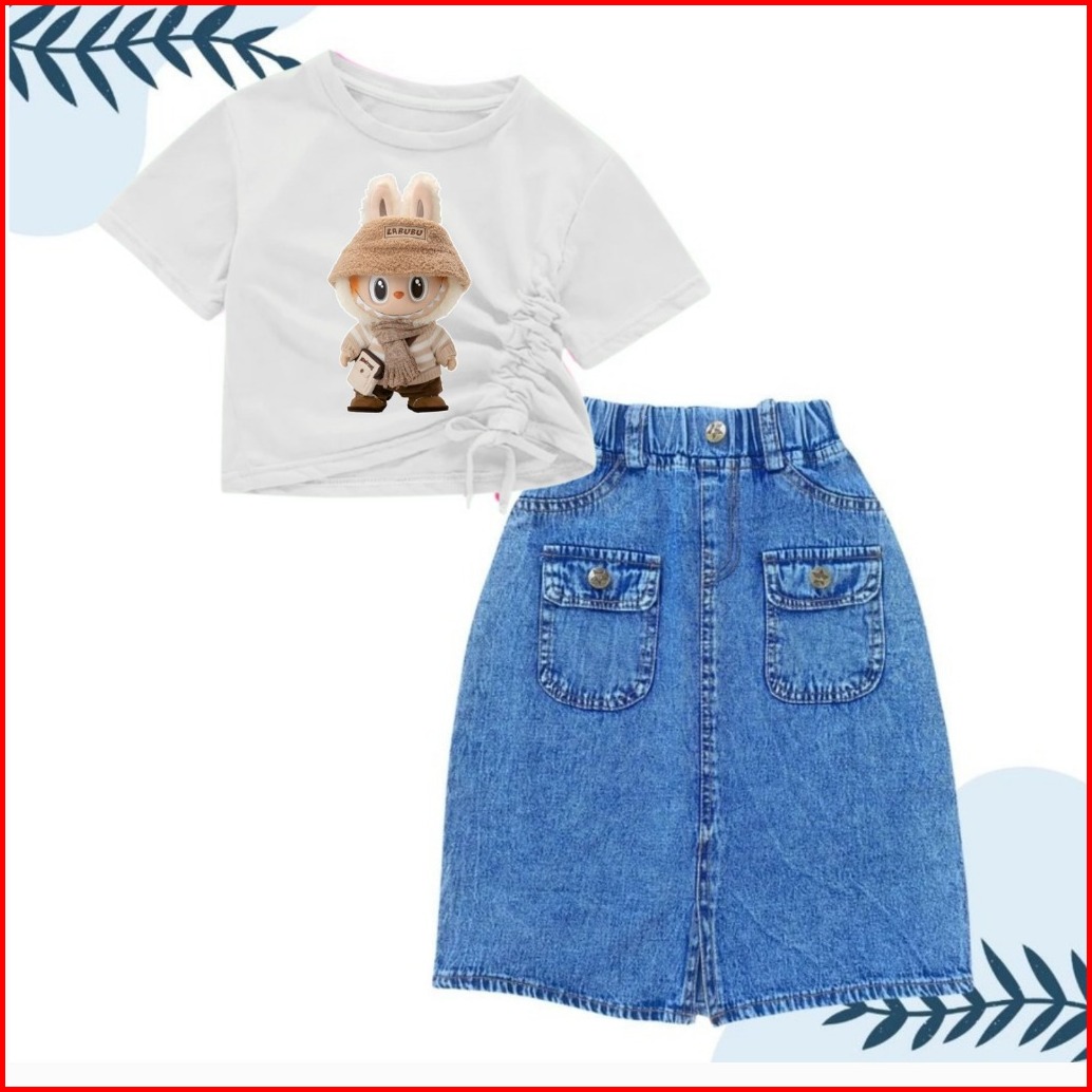 Setelan Rok Jeans Panjang Saku Depan Anak Perempuan