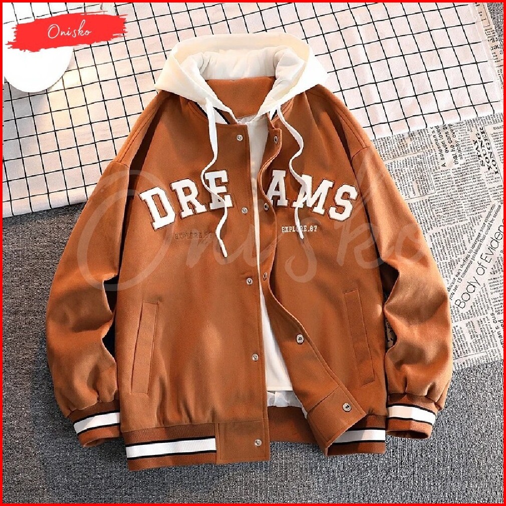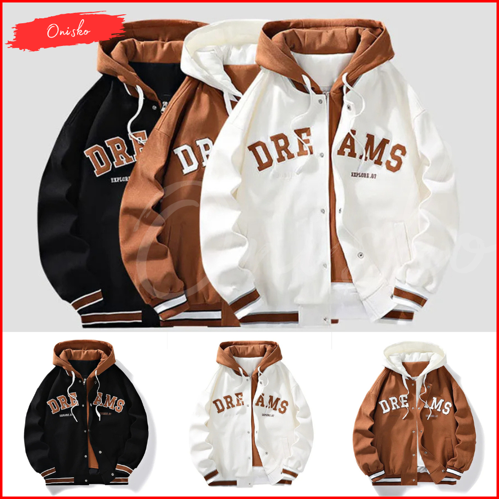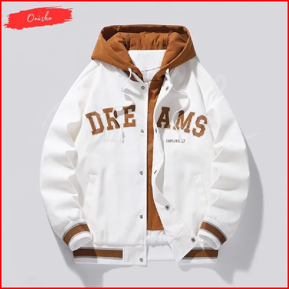 Jaket Hoodie Varsity Kupluk Baseball Anak Laki Laki Perempuan Uisex Sablon Motif Dreams Size Usia 2 4 6 8 10 12 14 16 18
