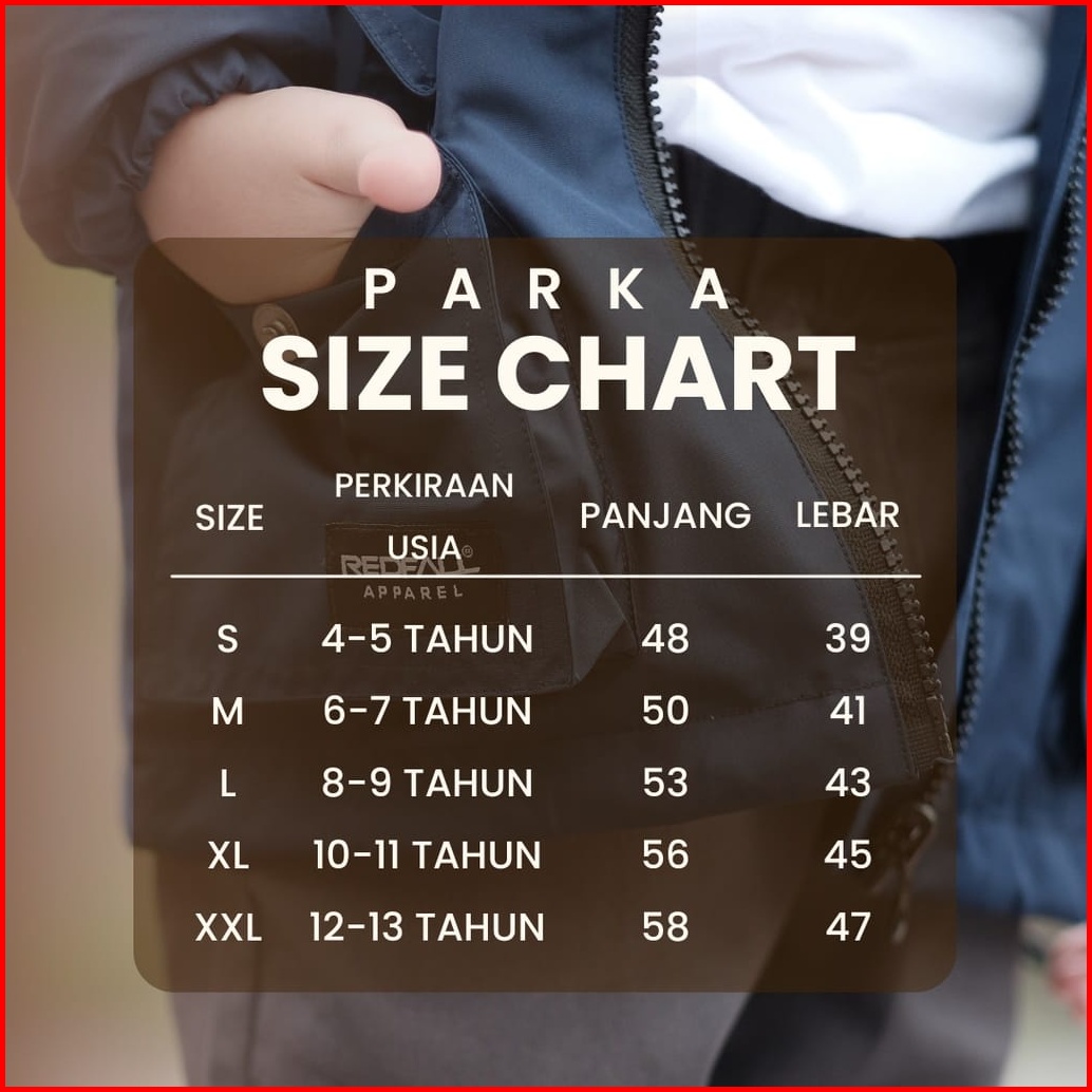 Jaket Parka Anak Ori Rdfl Premium Black Usia 4-13 Tahun