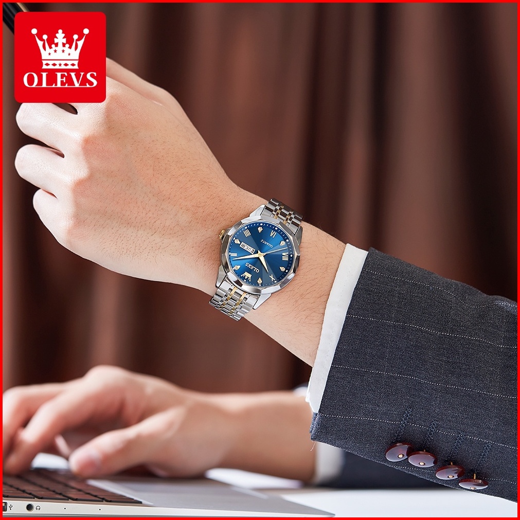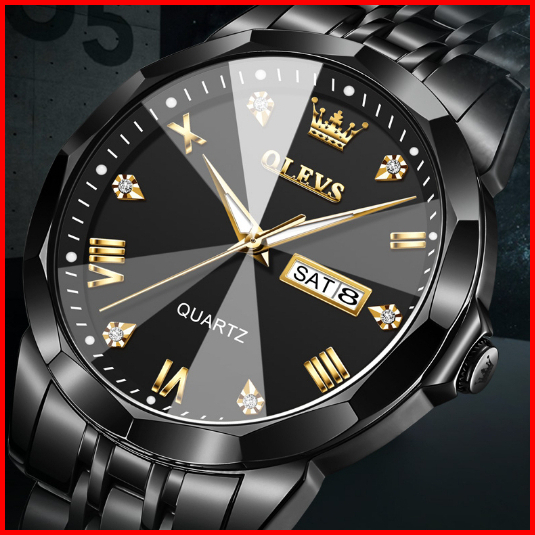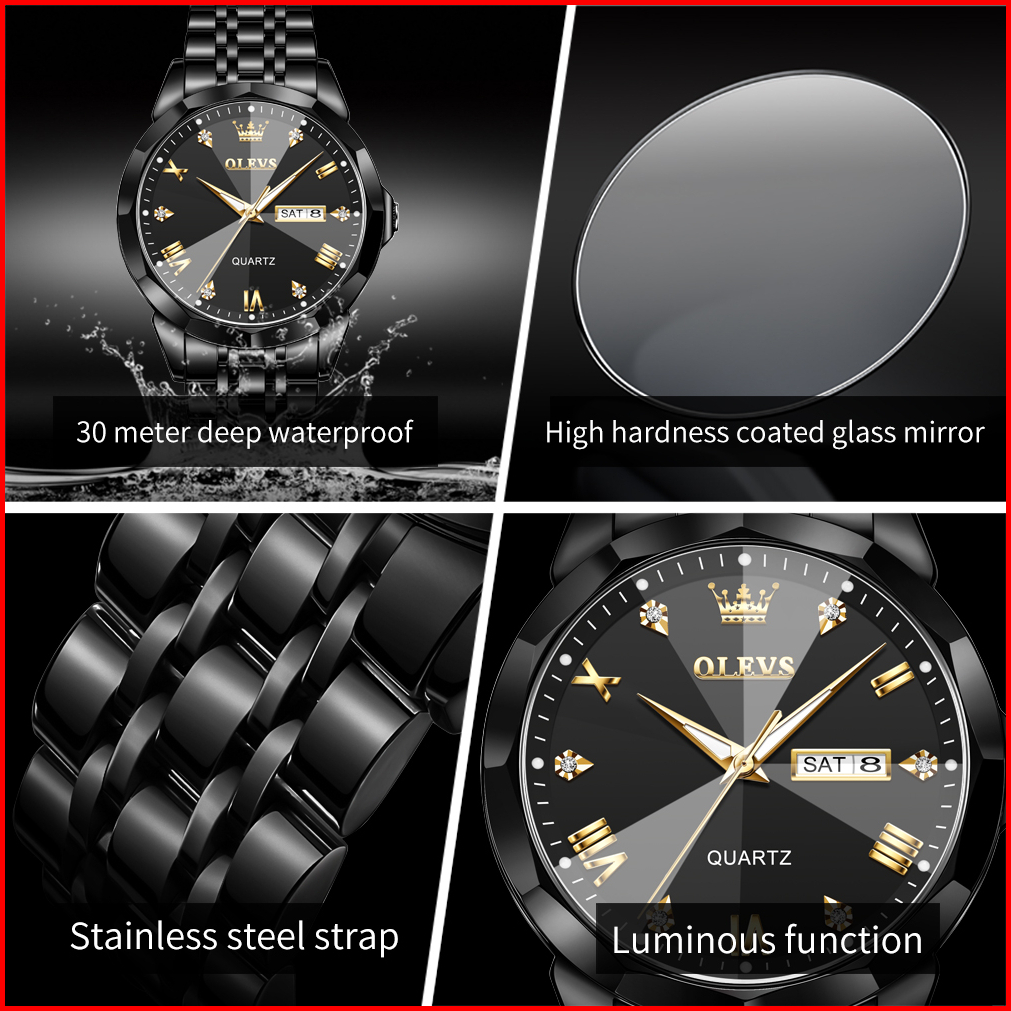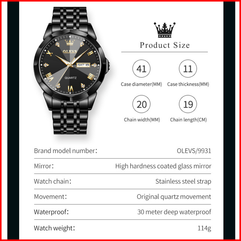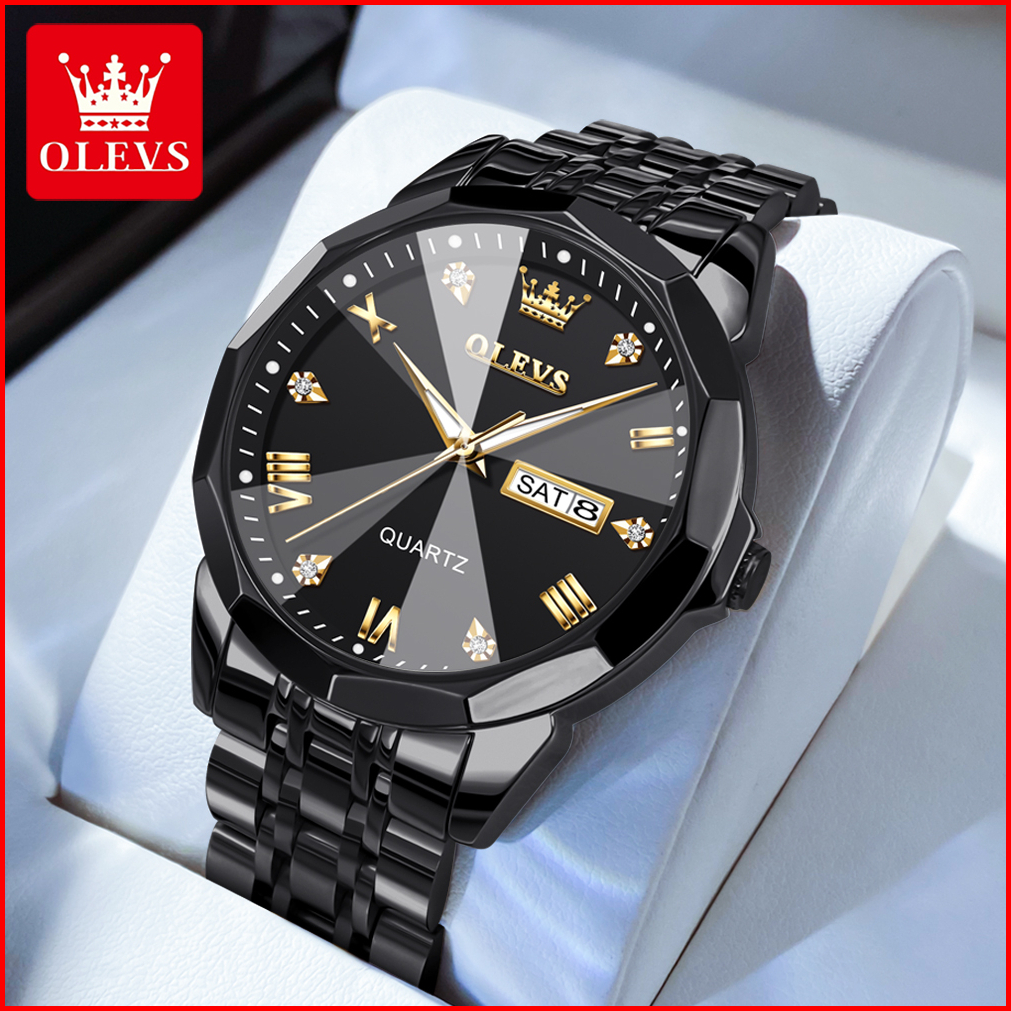 Olevs Jam Tangan Pria Anti Air Original Rantai Keren Mewah Hitam Luxury Stainless Steel Watch Men 9931