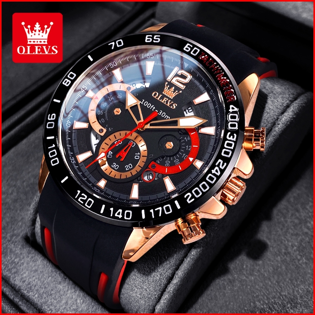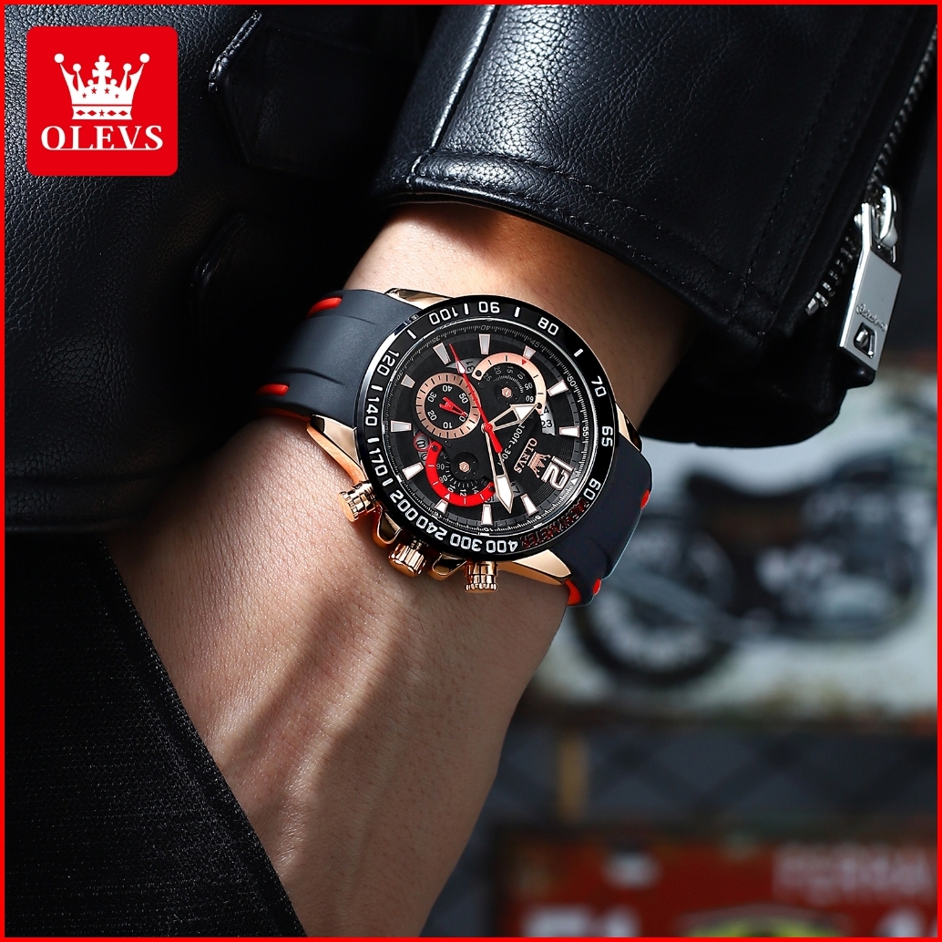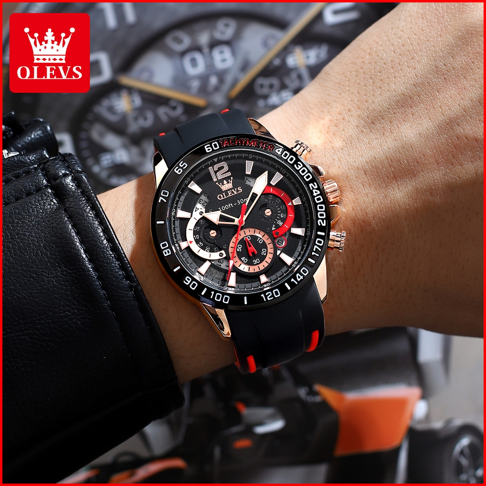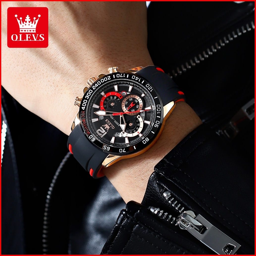 Olevs Jam Tangan Pria Anti Air Original 100 Terbaru 2025 Mewah Keren Chronograph Tali Silikon Tahan Watch Men Model 9936