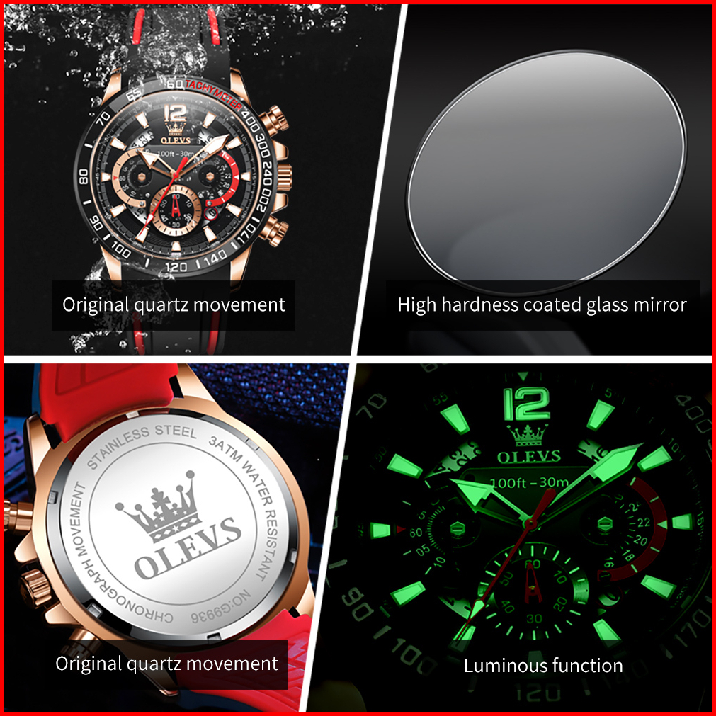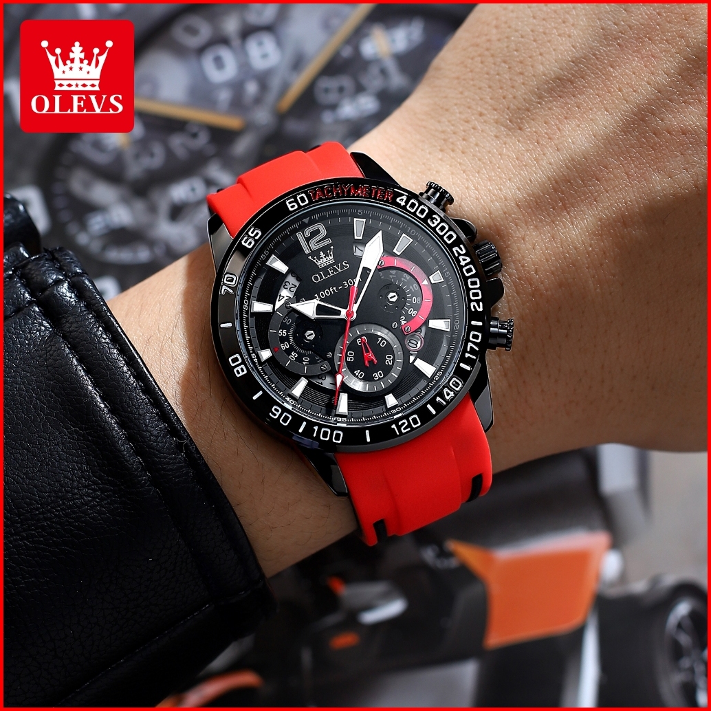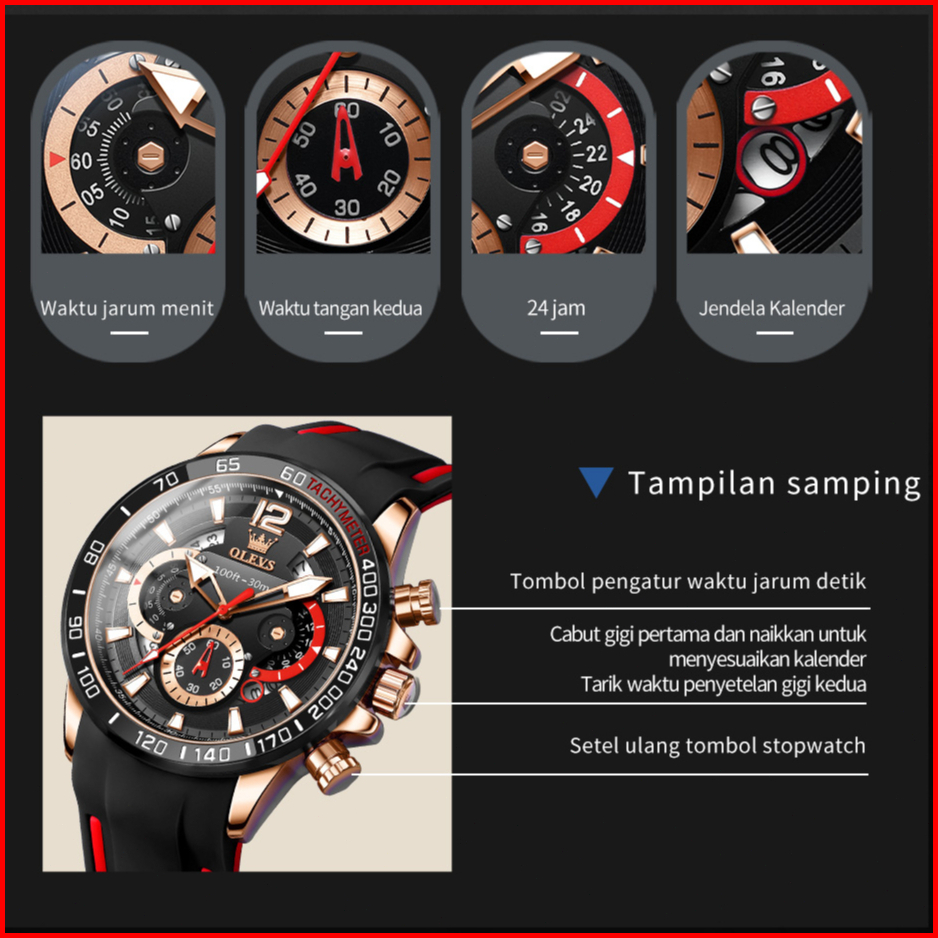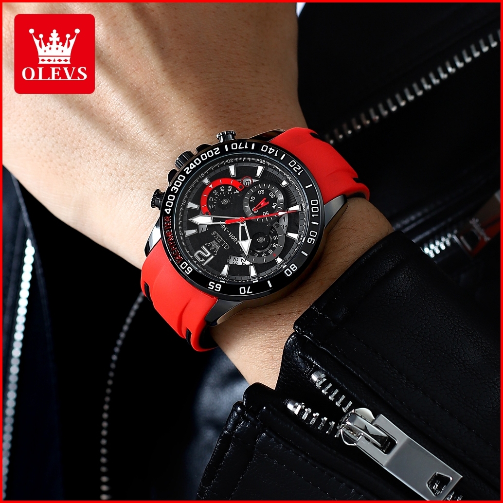 Olevs Jam Tangan Pria Anti Air Original 100 Terbaru 2025 Mewah Keren Chronograph Tali Silikon Tahan Watch Men Model 9936