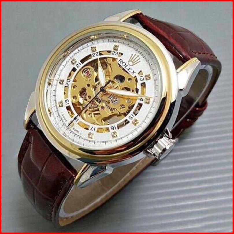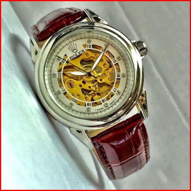 Jam Tangan Pria Rolex Automatic Kulit Premium Free Box Rolex Tipe Skeleton