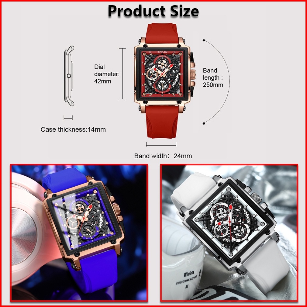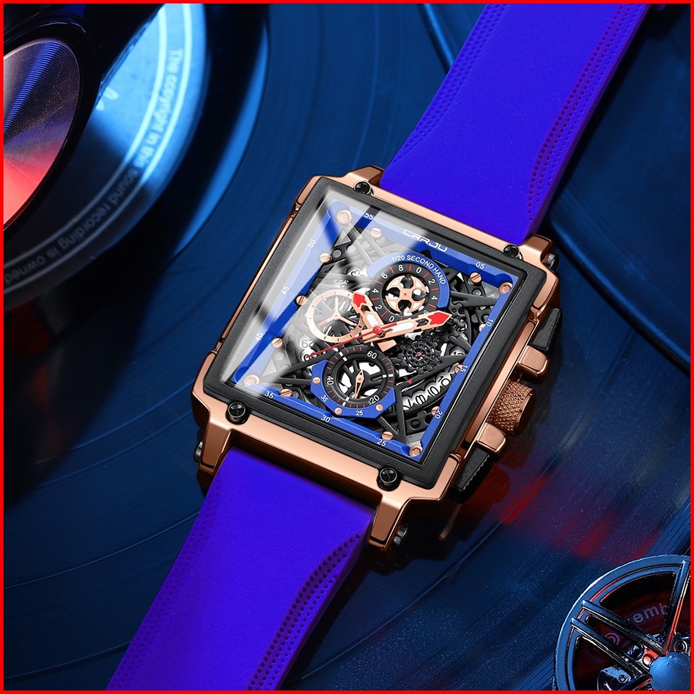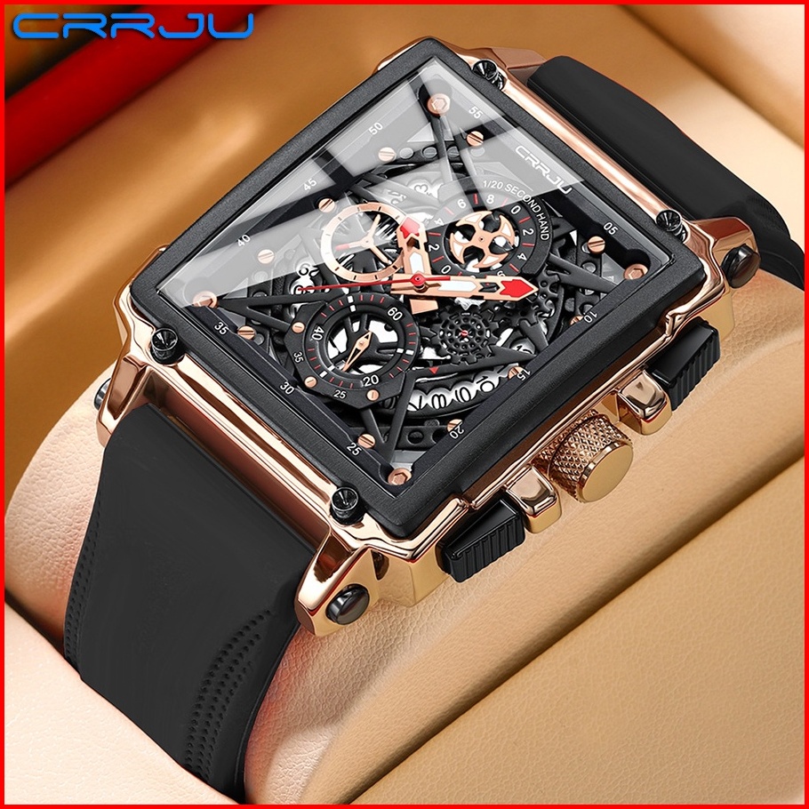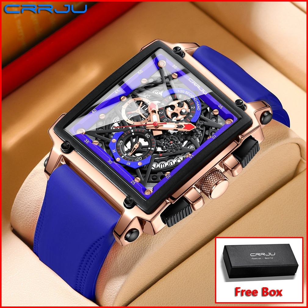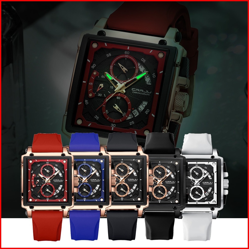 Crrju Jam Tangan Pria Keren Terbaru Anti Air Original Kronograf Tali Silikon Bercahaya Kalender Jam Tangan Cowok