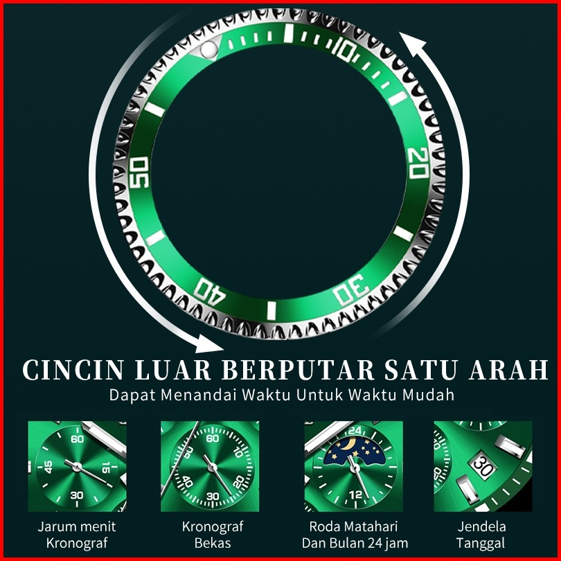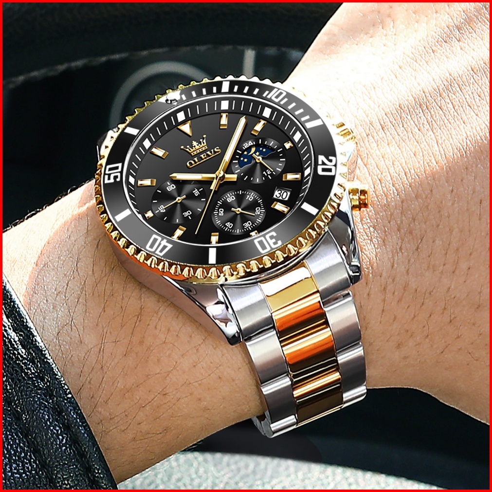 Olevs Jam Tangan Pria Anti Air Original Keren Luxury Led Analog Stainless Steel Chronograph Watch Men Hijau Hitam Biru
