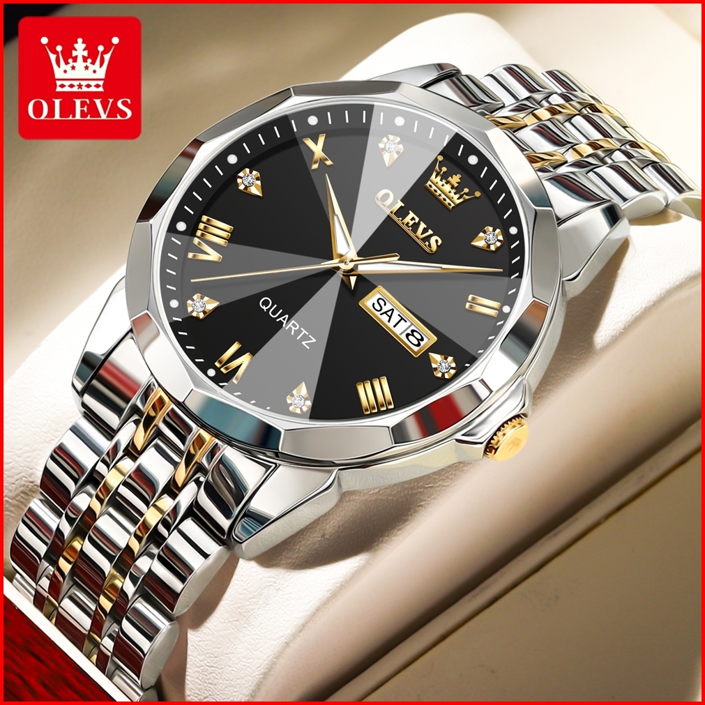 Olevs Jam Tangan Pria Original 100 Anti Air Mewah Keren Rantai Terbaru 2025 Tahan Analog Hitam Quartz Watch Men Model 99