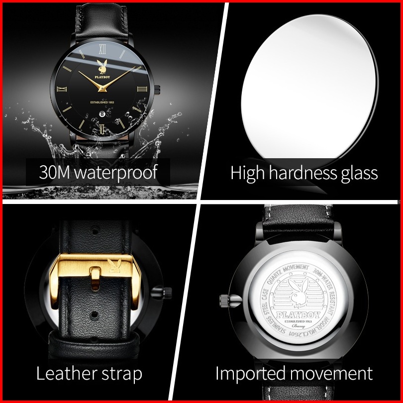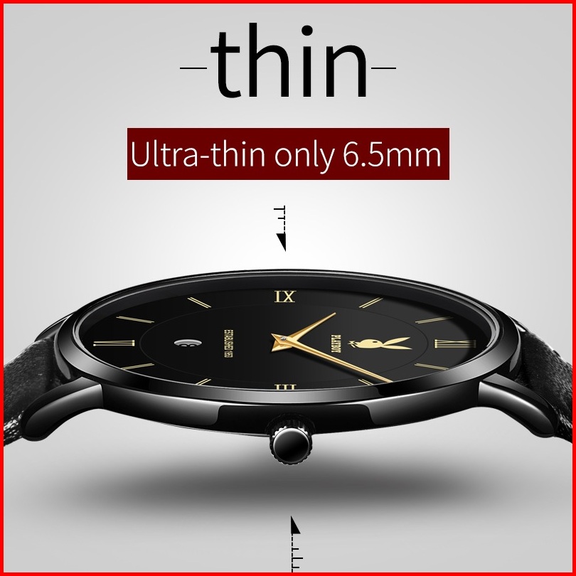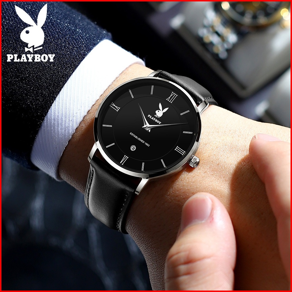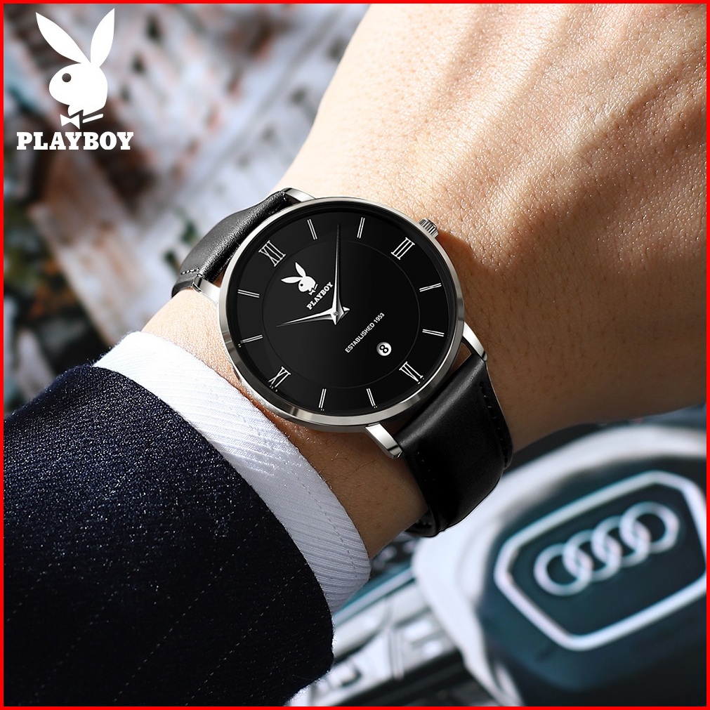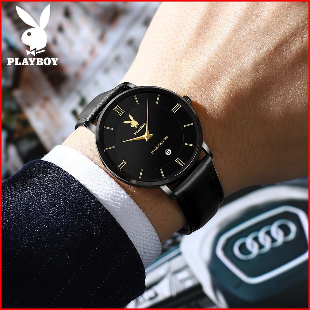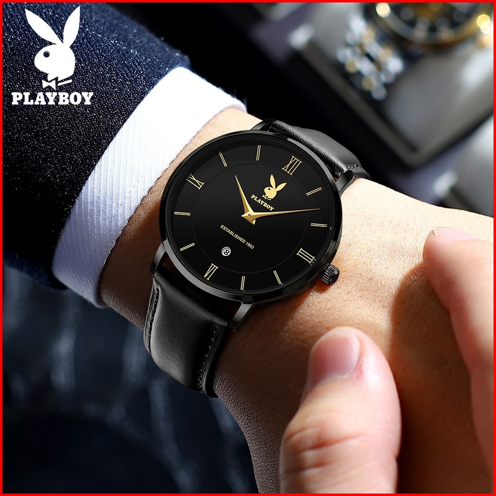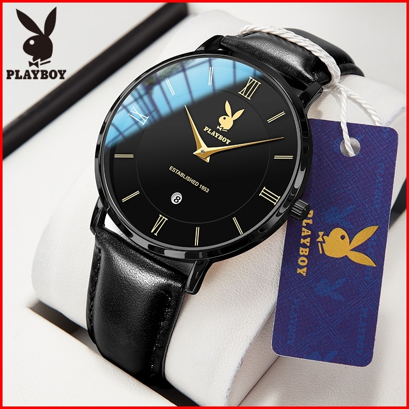 Playboy Jam Tangan Pria Original 100 Anti Air Ultra-thin Dial Keren Terbaru Mewah Luxury Leather Lelaki Men Watch Model