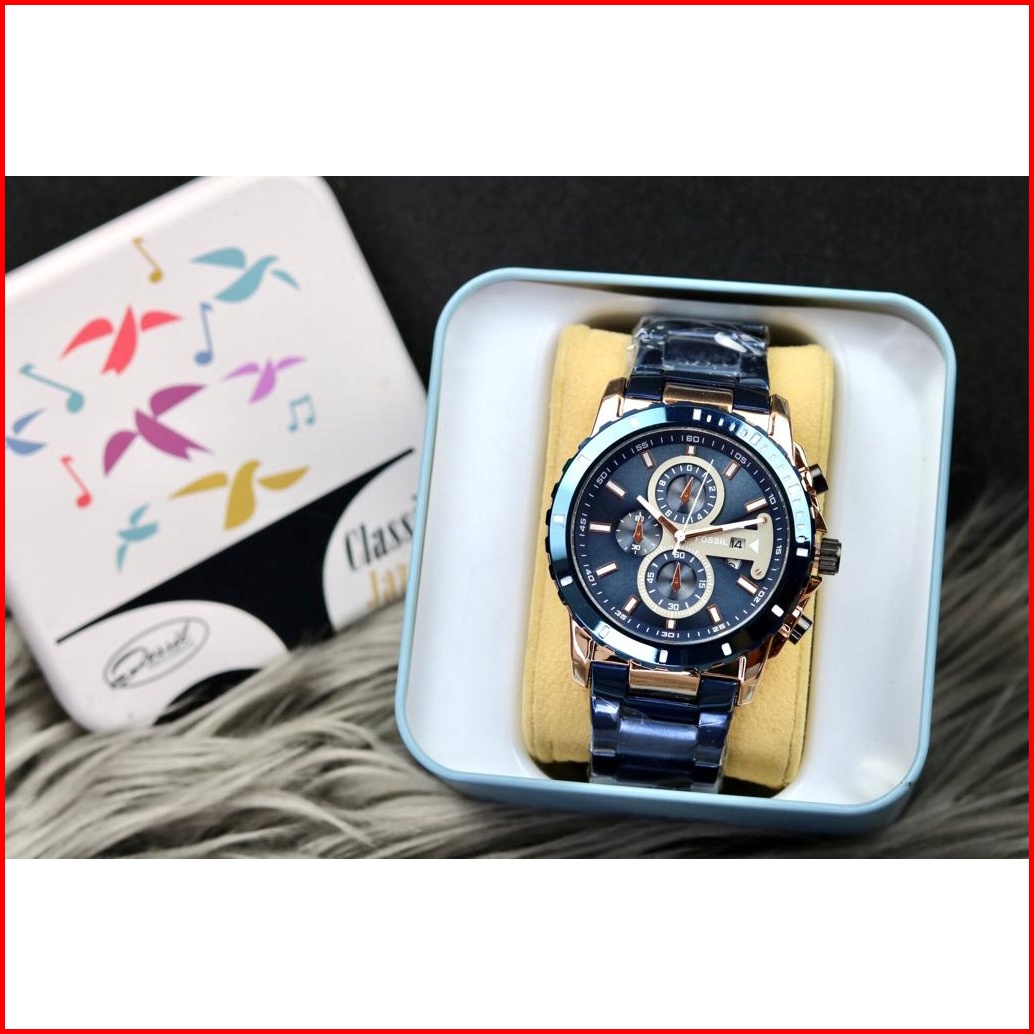 Jam Tangan Cowok Fs6137-2 Rantai Stainless Authentic Tanggal Aktif