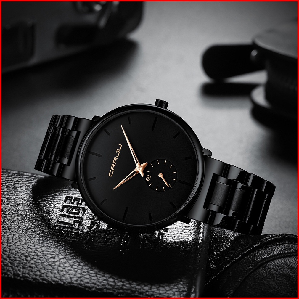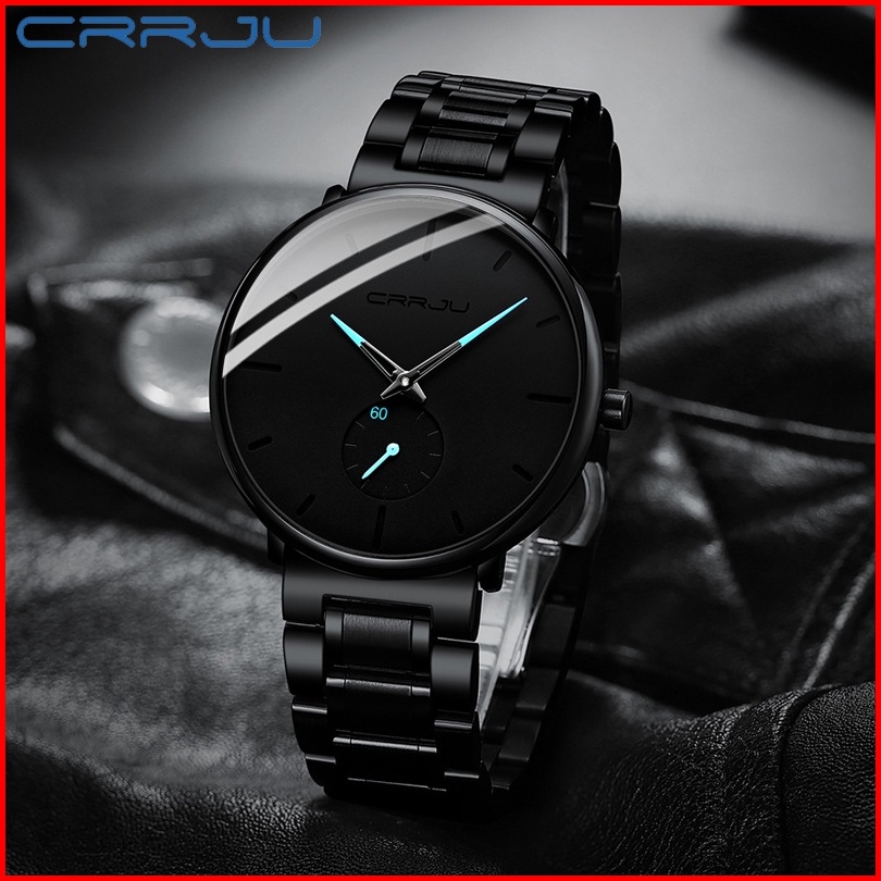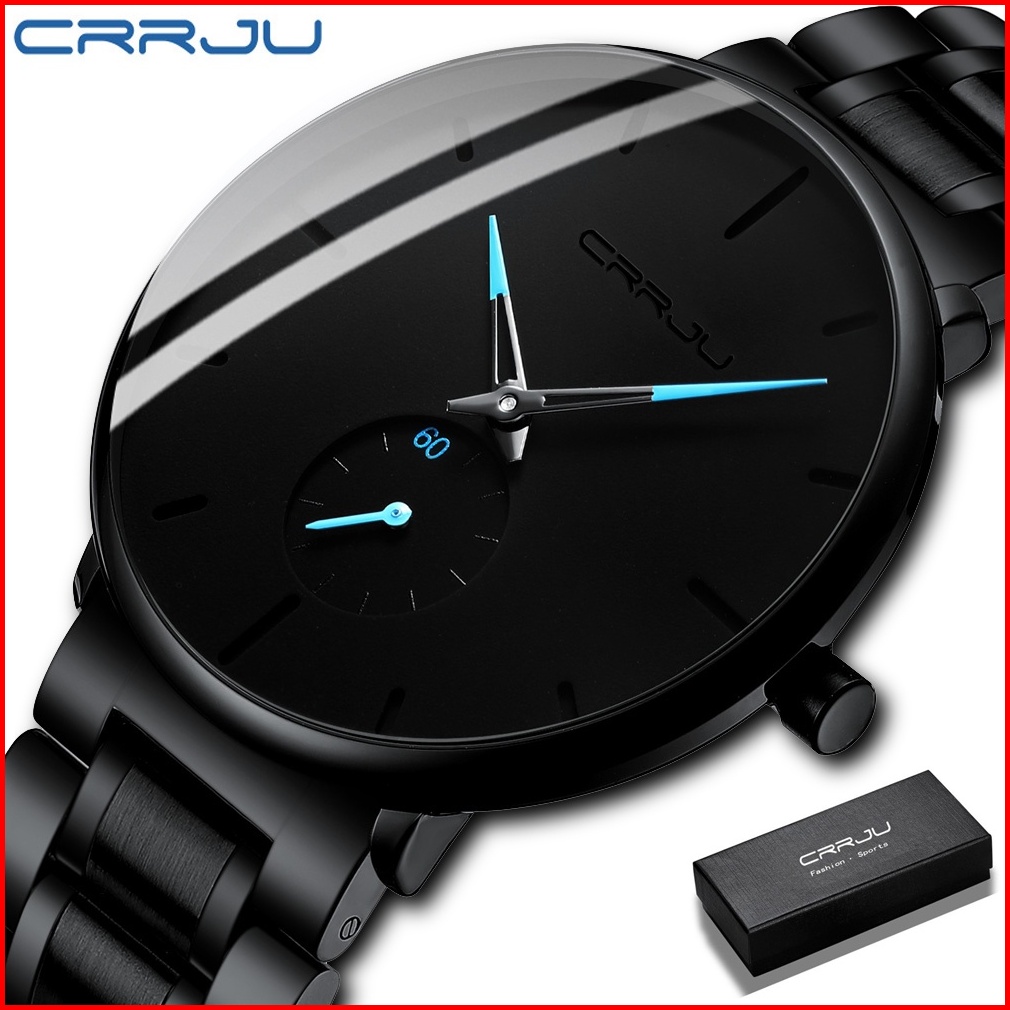 Crrju Jam Tangan Pria Kuarsa Olahraga Ultra Tipis Fashion Mewah Atas Tahan Air Jam Tangan Wanita Kotak Gratis