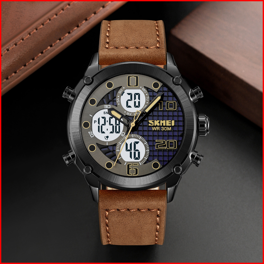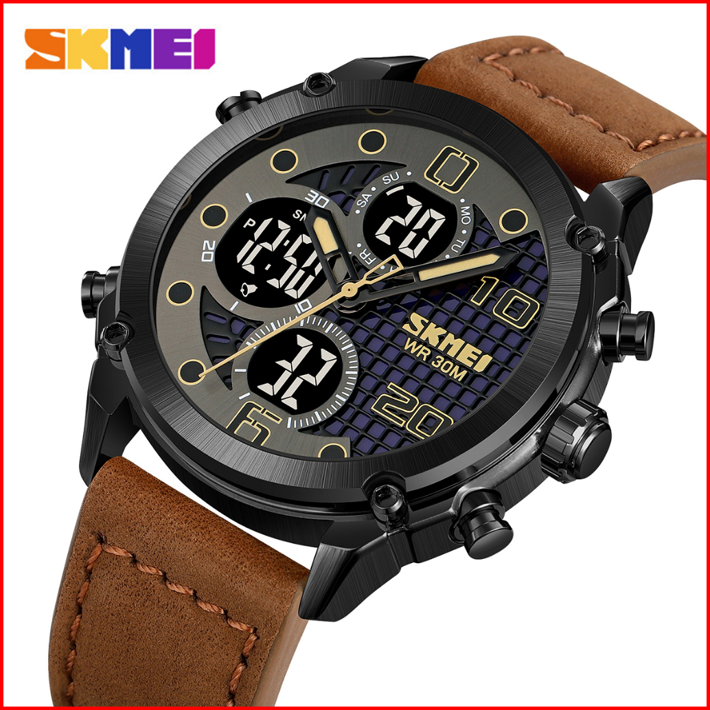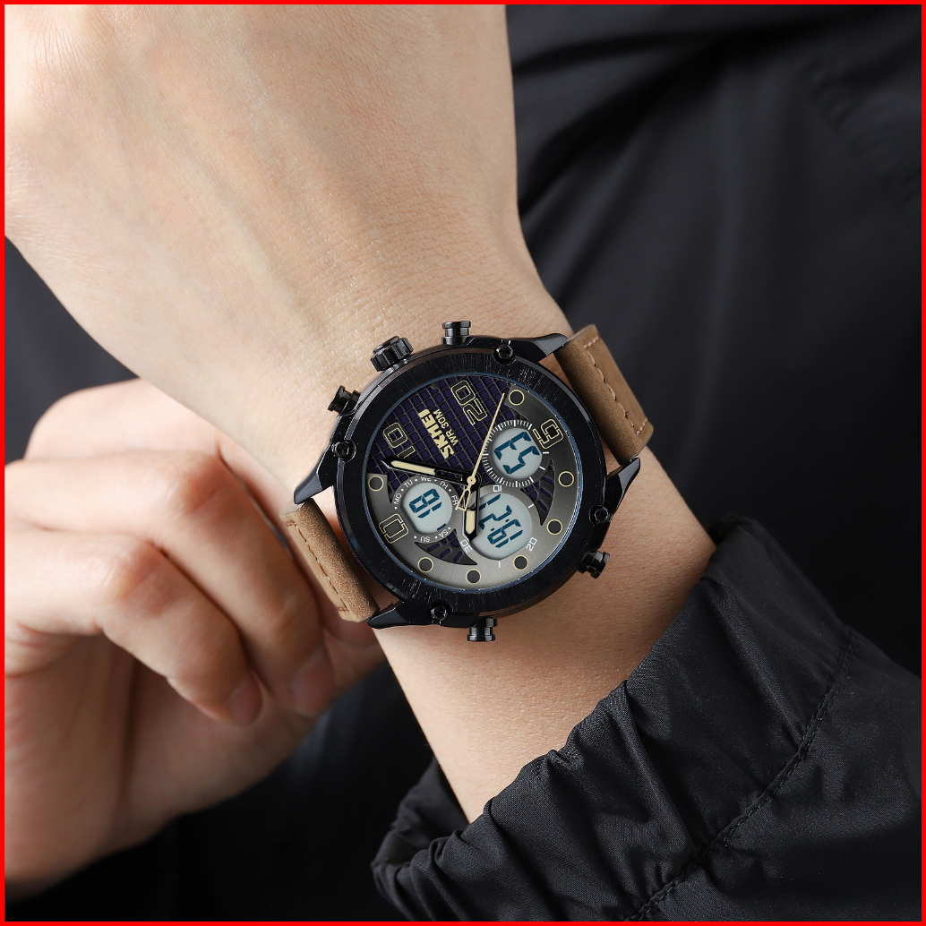 Skmei 1975 Jam Tangan Pria Digital Analog Tali Kulit Pu Watchkite Wkos