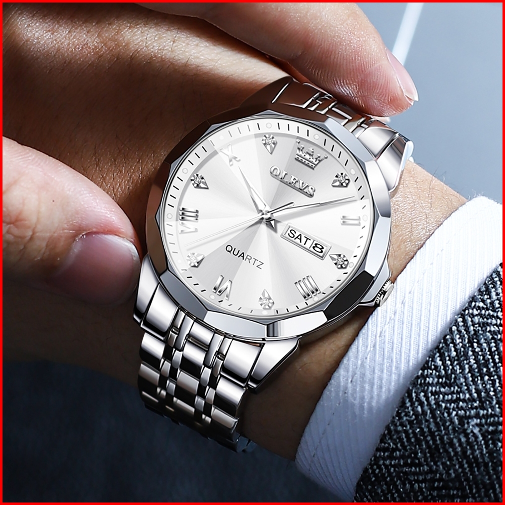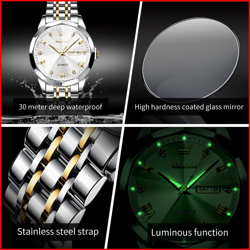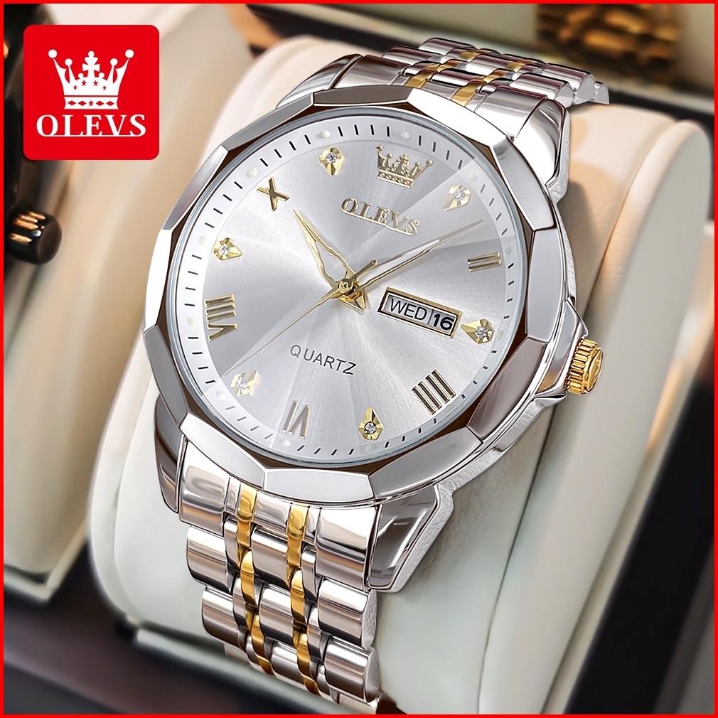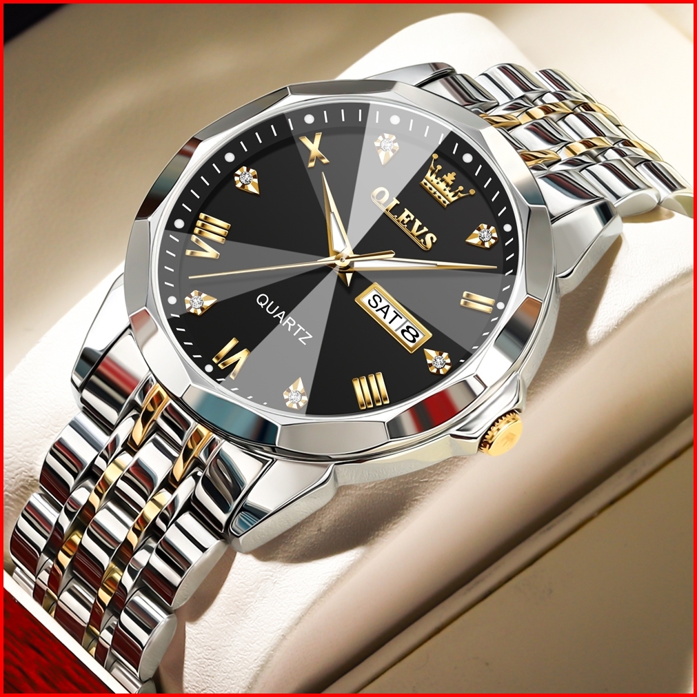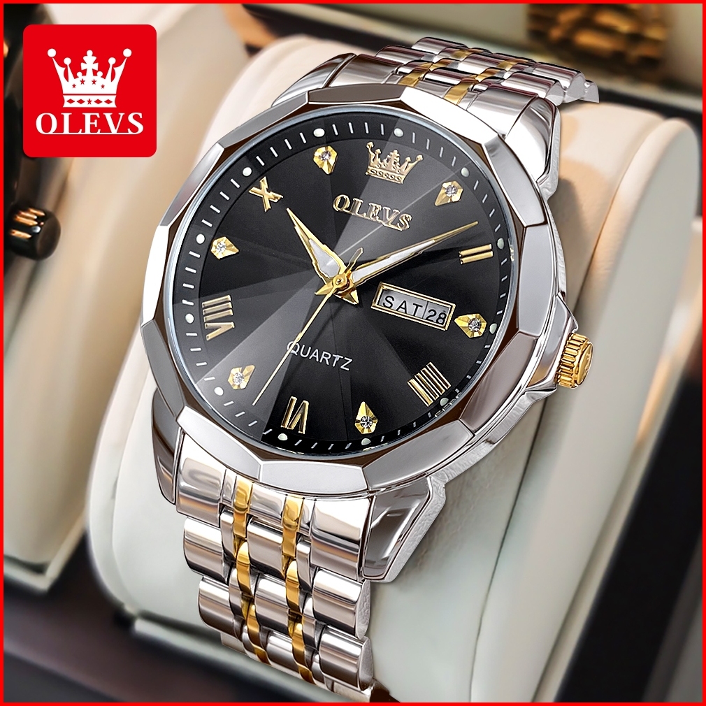 Olevs Jam Tangan Pria Anti Air Original Terbaru Mewah Hitam Luxury Stainless Steel Watch Men