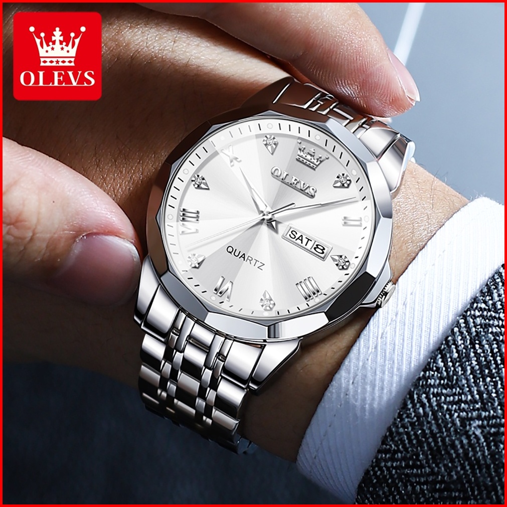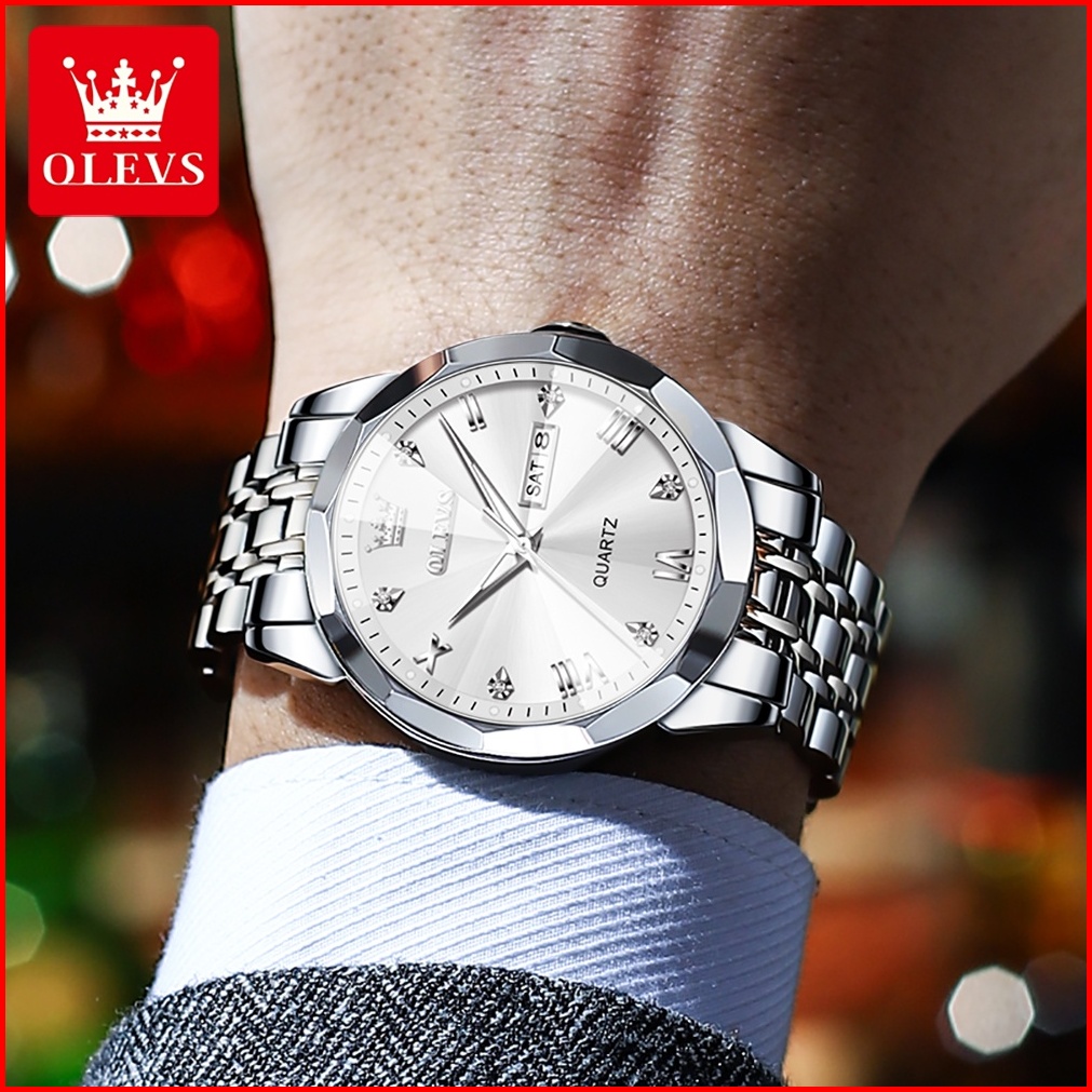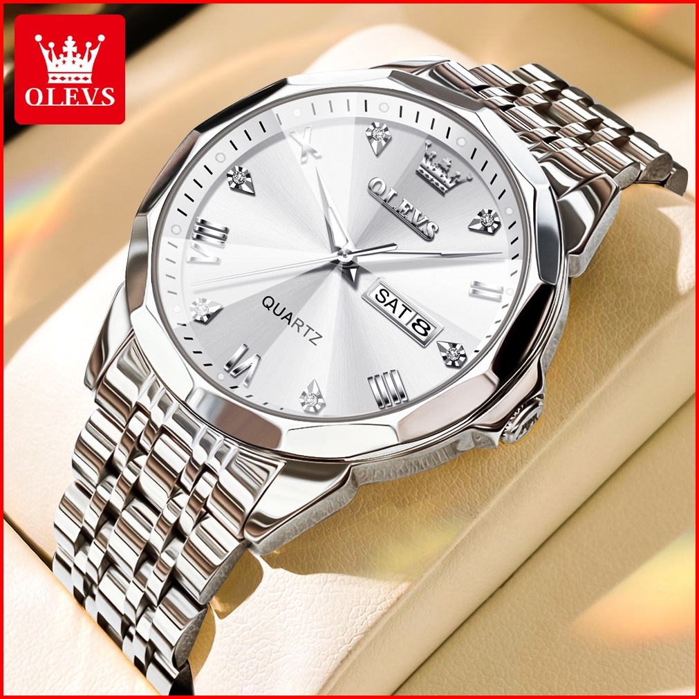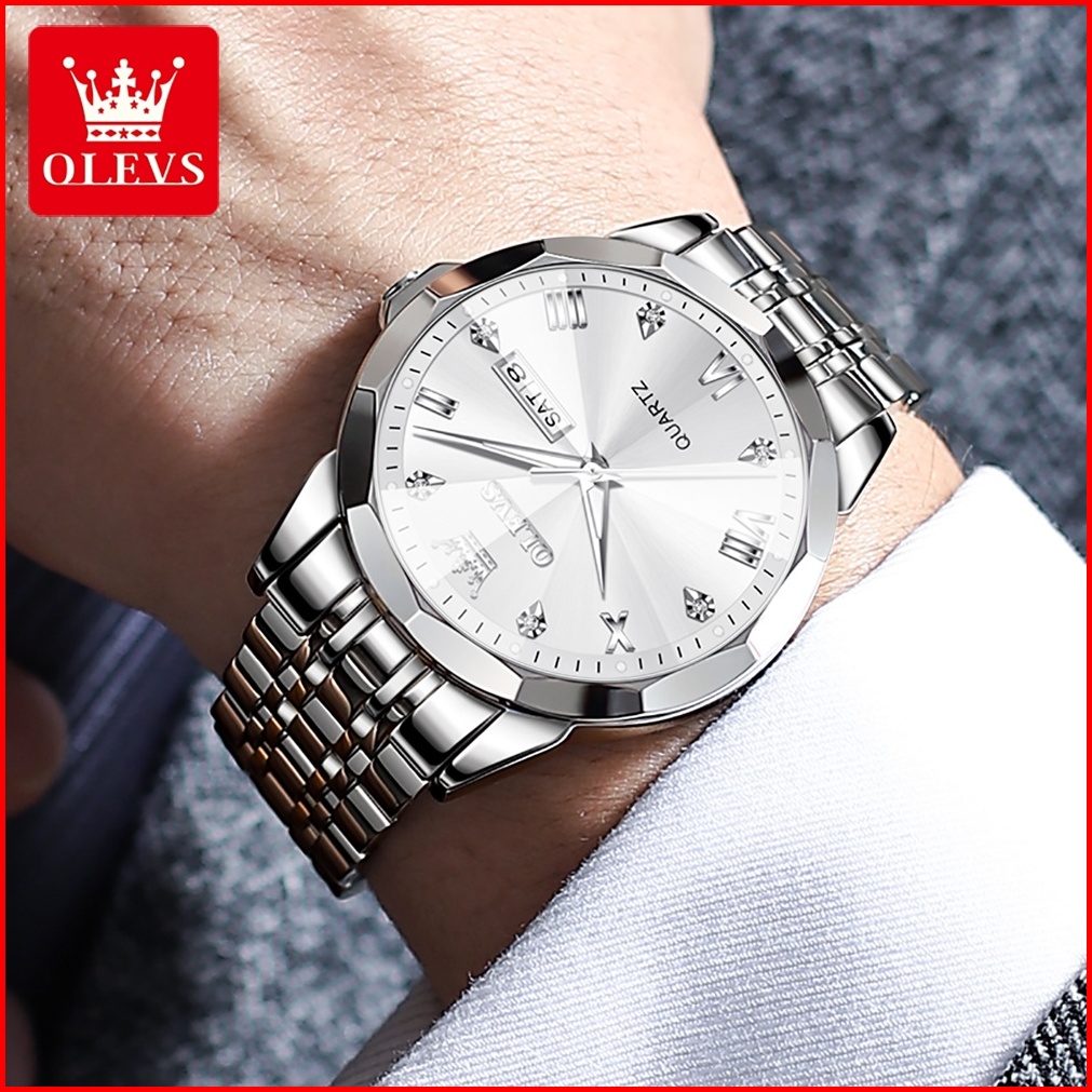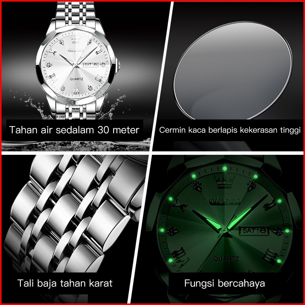 Olevs Jam Tangan Pria Anti Air Original Cowok Kalender Bercahaya Analog Luminous Stainless Steel Men Watch 9931