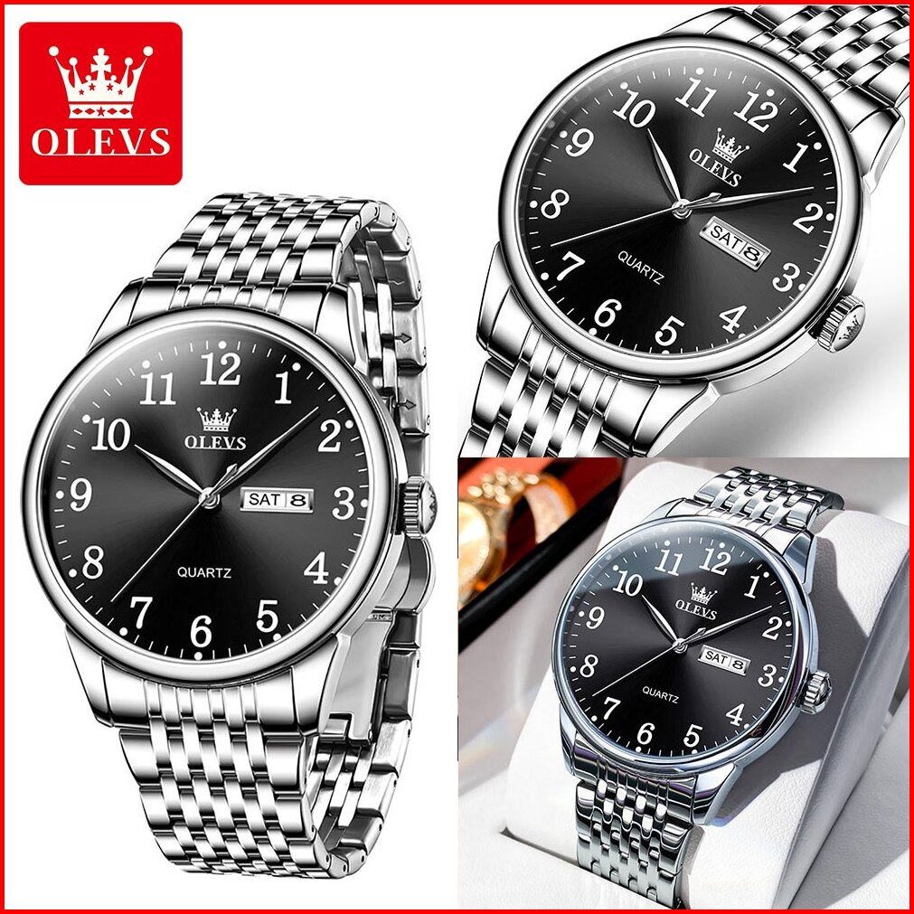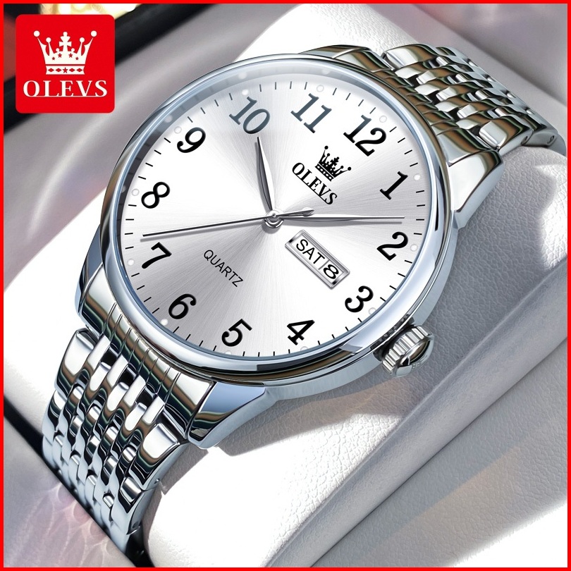 Olevs Jam Tangan Pria Original Anti Air Stainless Steel Analog Keren Casual Jam Tangan Rantai Pria