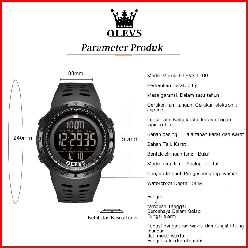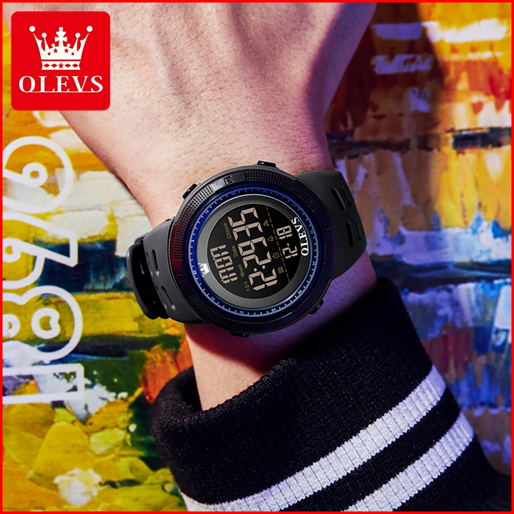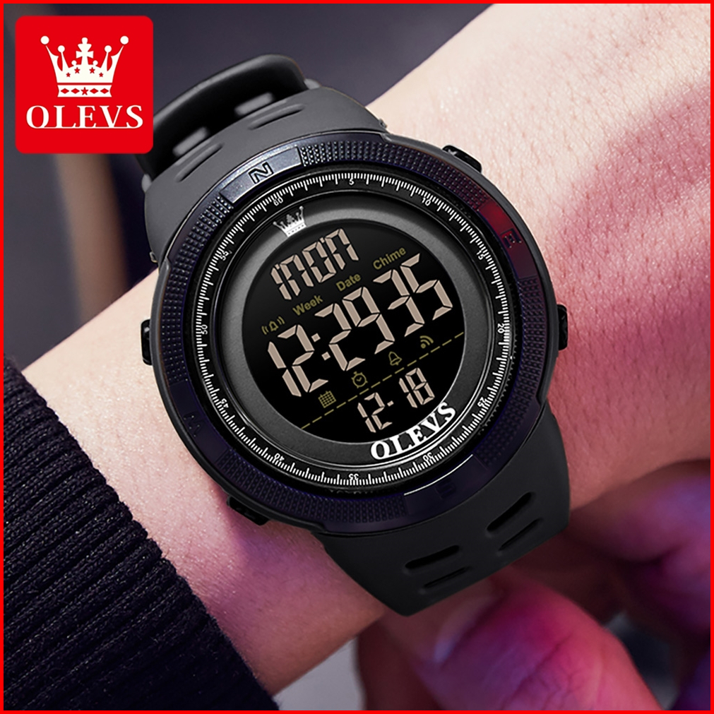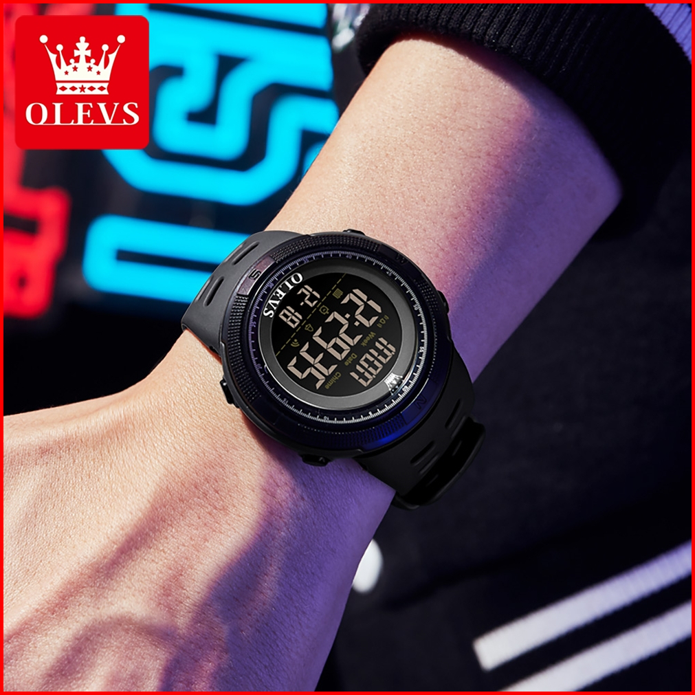 Olevs Jam Tangan Pria Anti Air Original Led Digital Tampilan Ganda Analog Multi Fungsi Jam Alarm Pengatur Waktu Men Watc