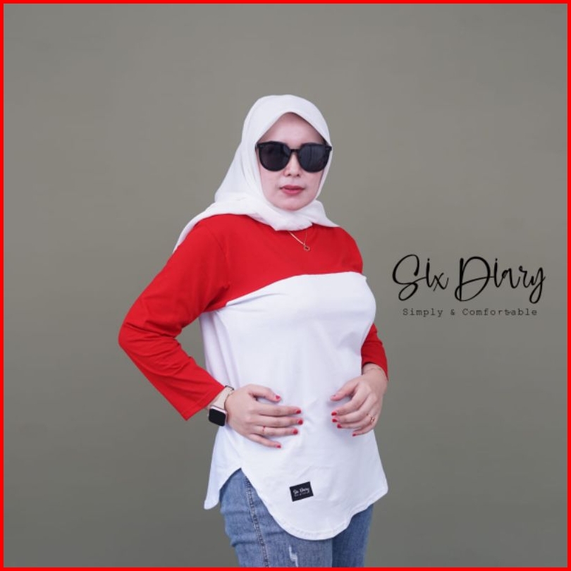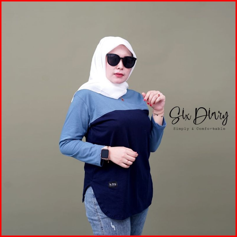 Atasan Wanita Terbaru Baju Wanita Kekinian Kaos Oval Warna Kombinasi Six Diary Original