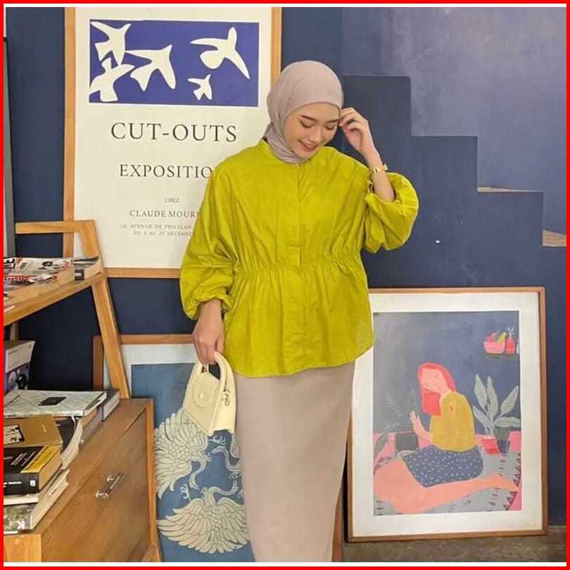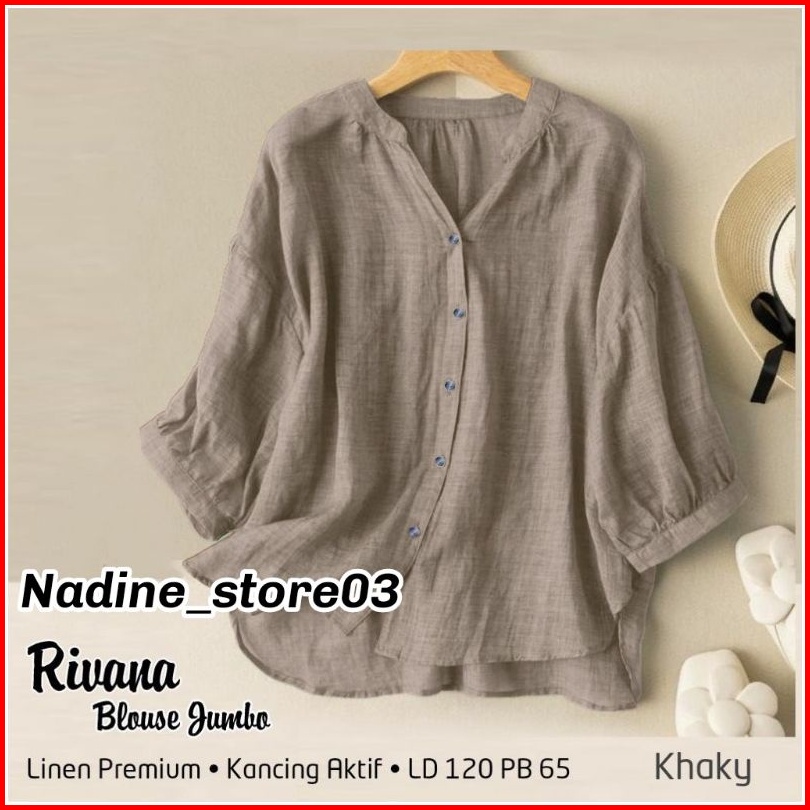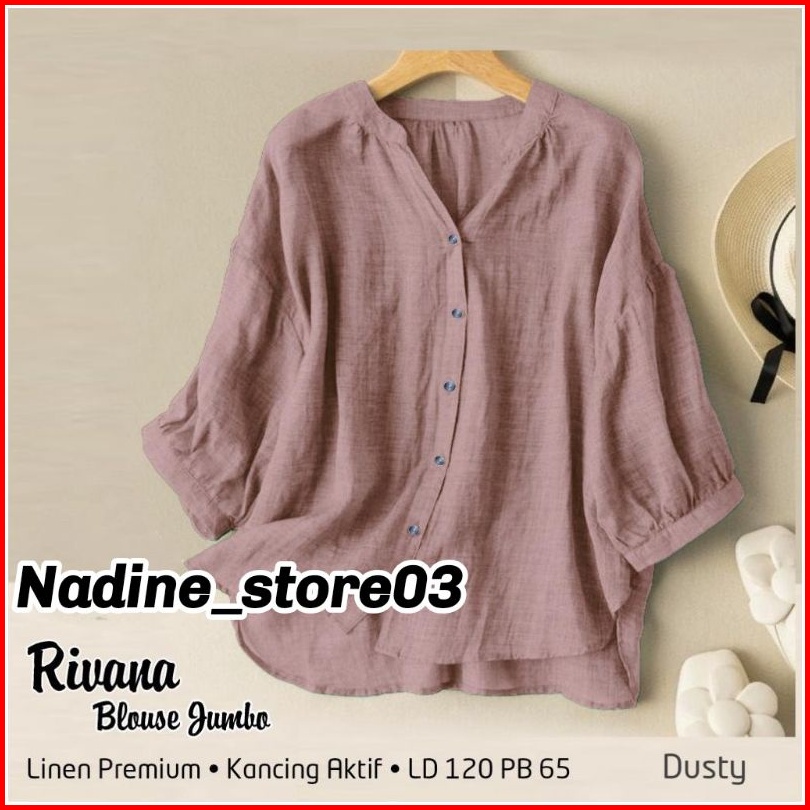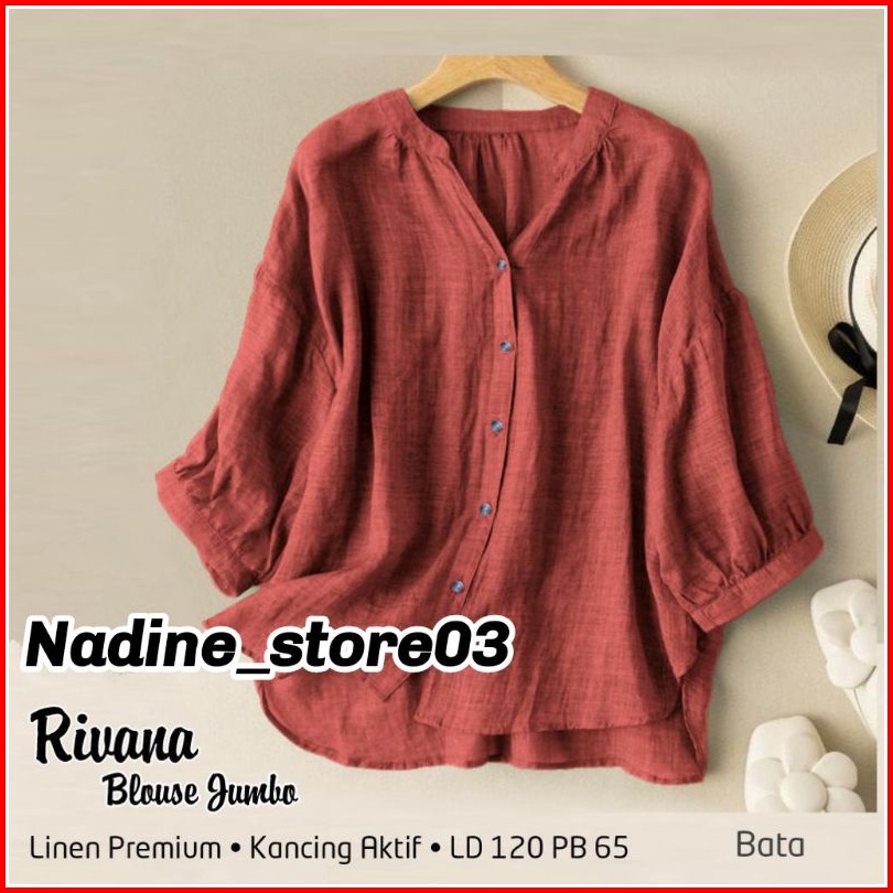 Rivana Blouse Jumbo Kemeja Polos Wanita Bahan Katun Linen.