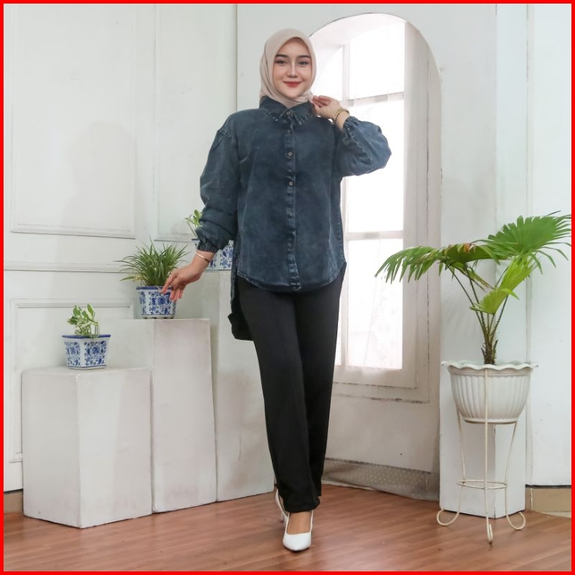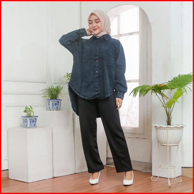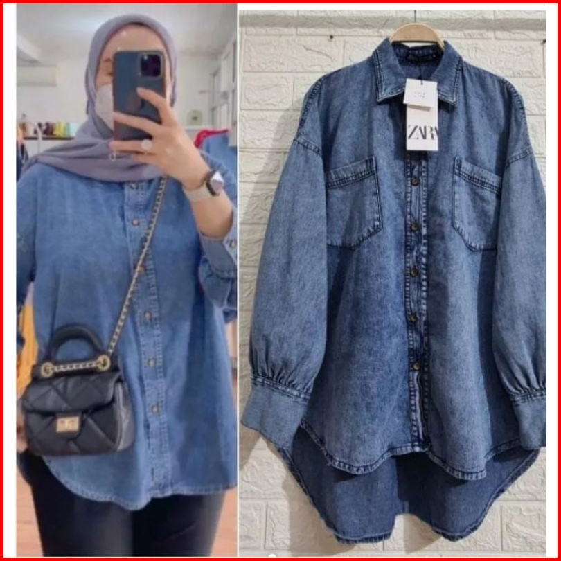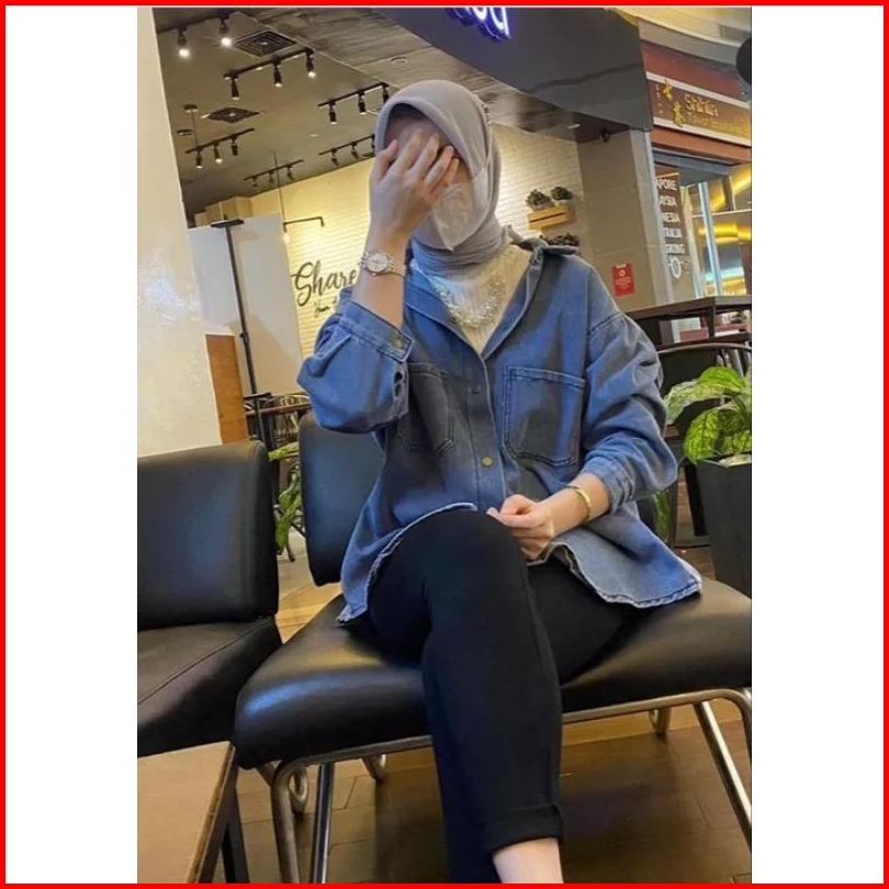 Atasan Jeans Wanita Oversize Kemeja Jeans Lingkar Dada 120cm