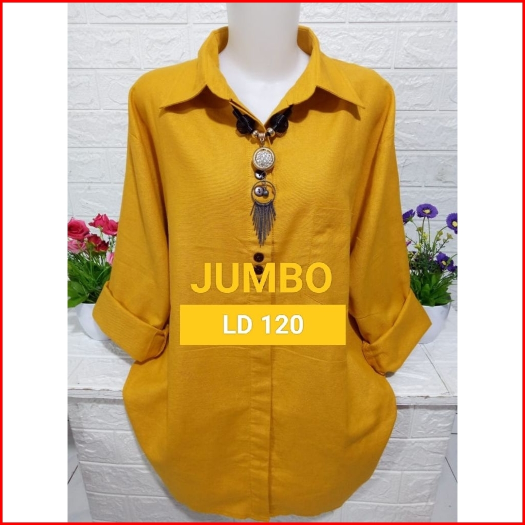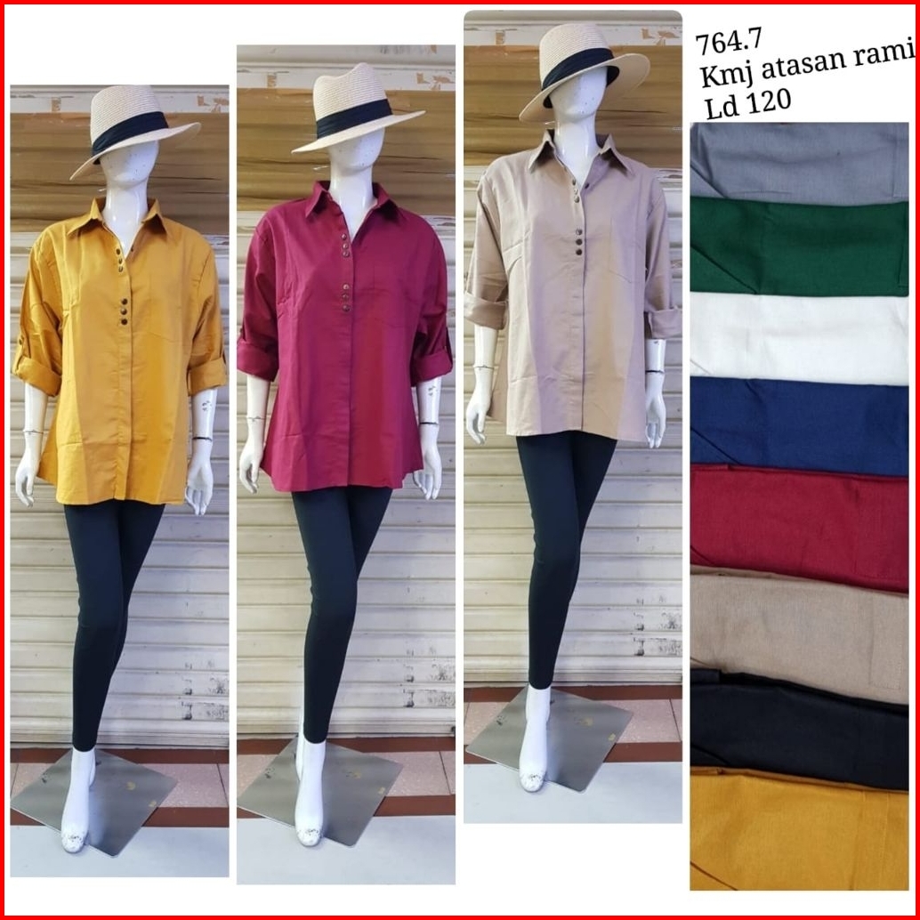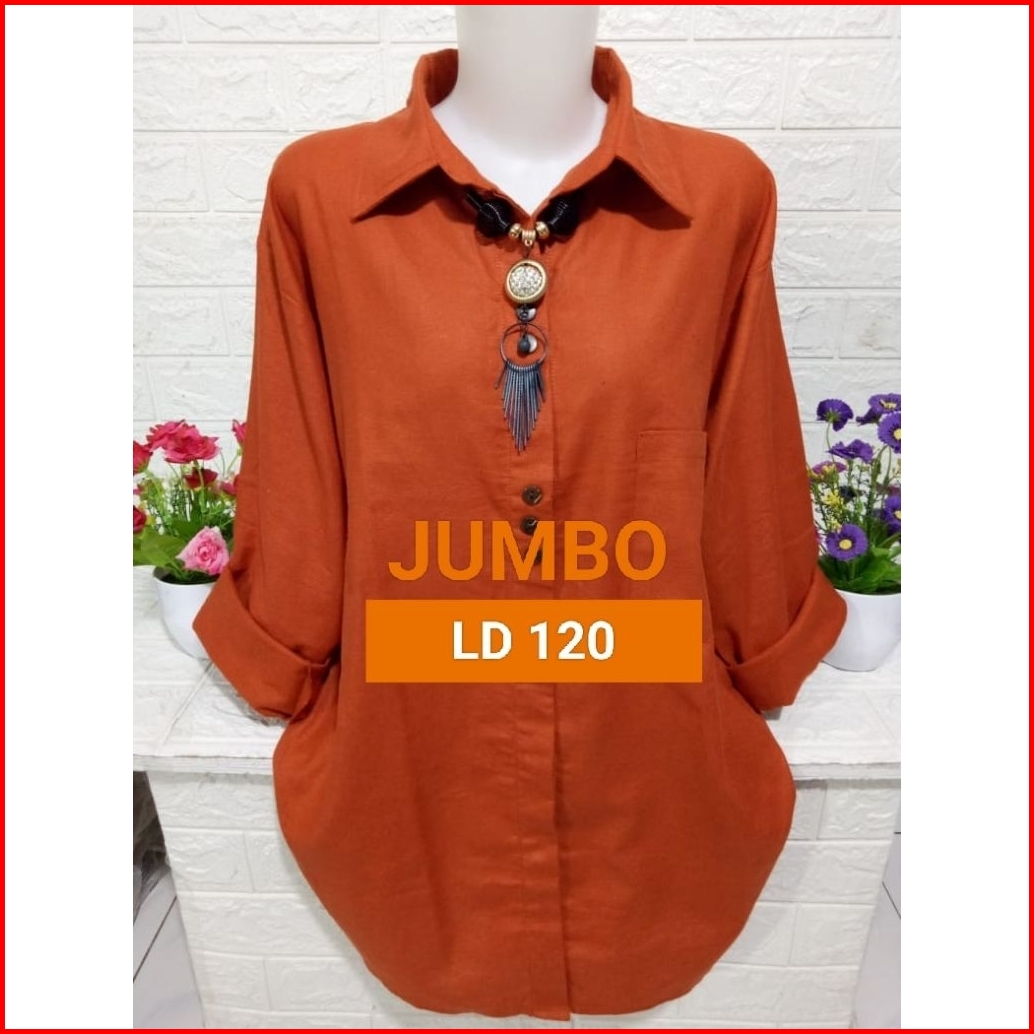 Baju Atasan Wanita Kemeja Casual Pakaian Wanita Polos Simpel Lengan Panjang Asli Katun Rami