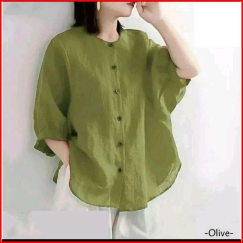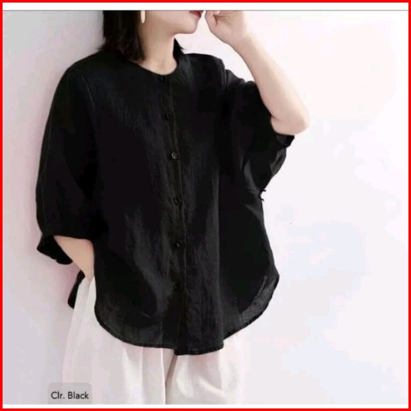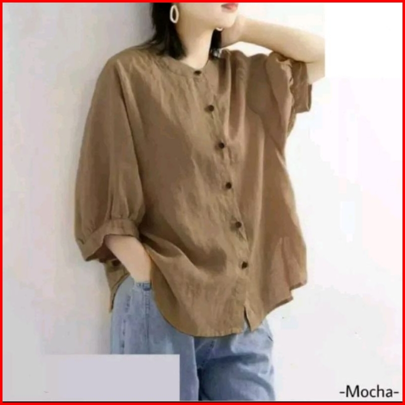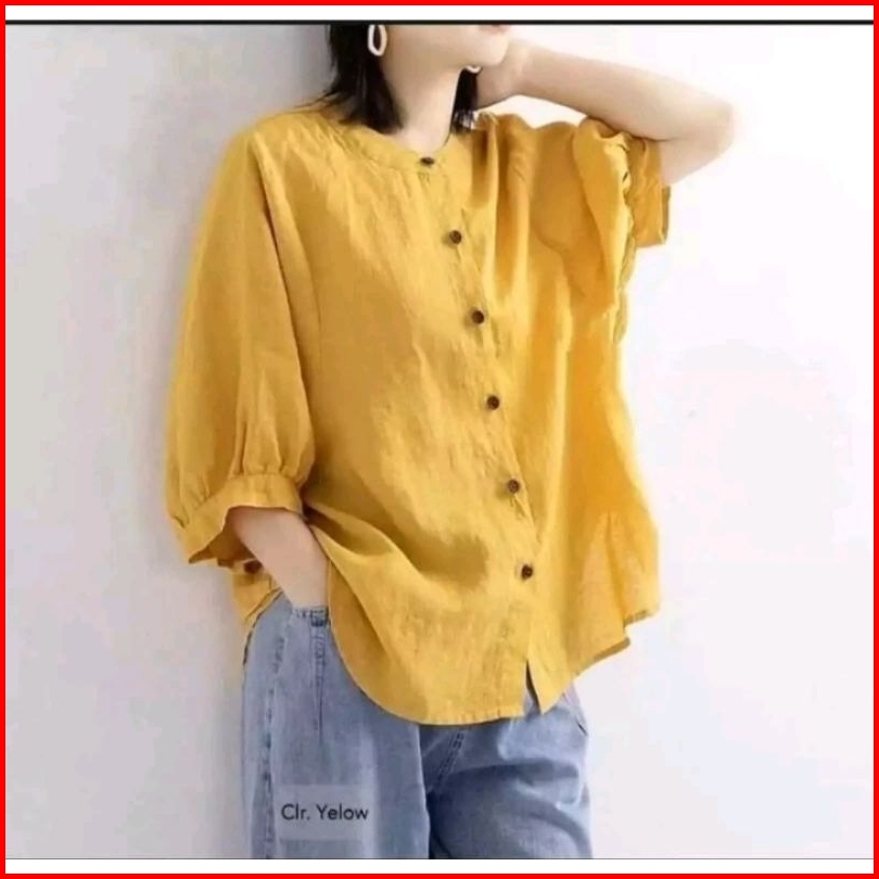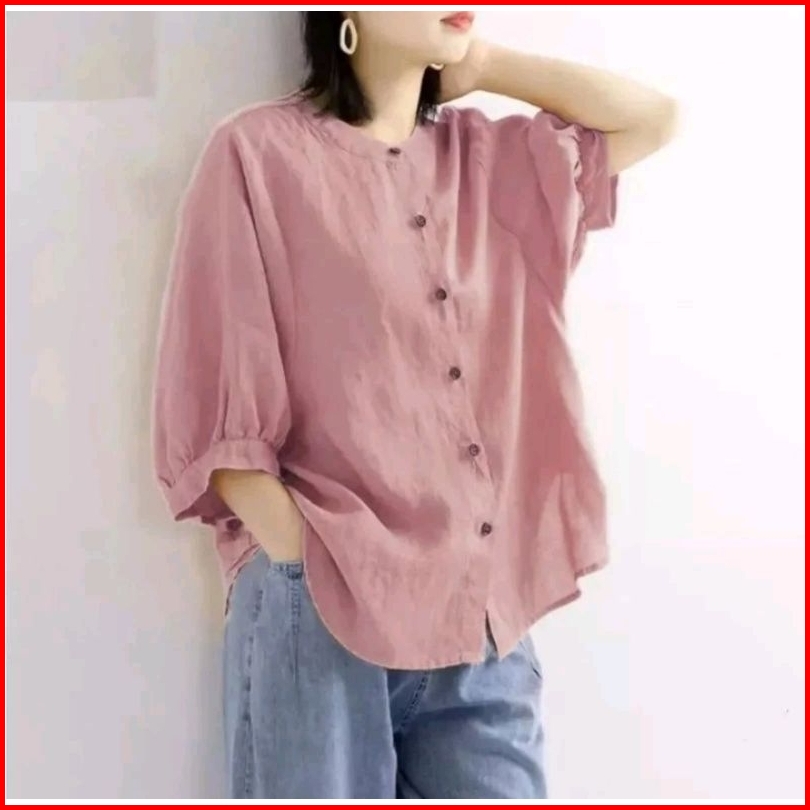 Blouse Wanita Linen Kemeja Wanita Premiumkerah Shanghai