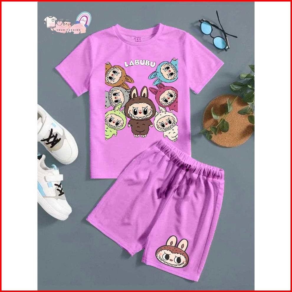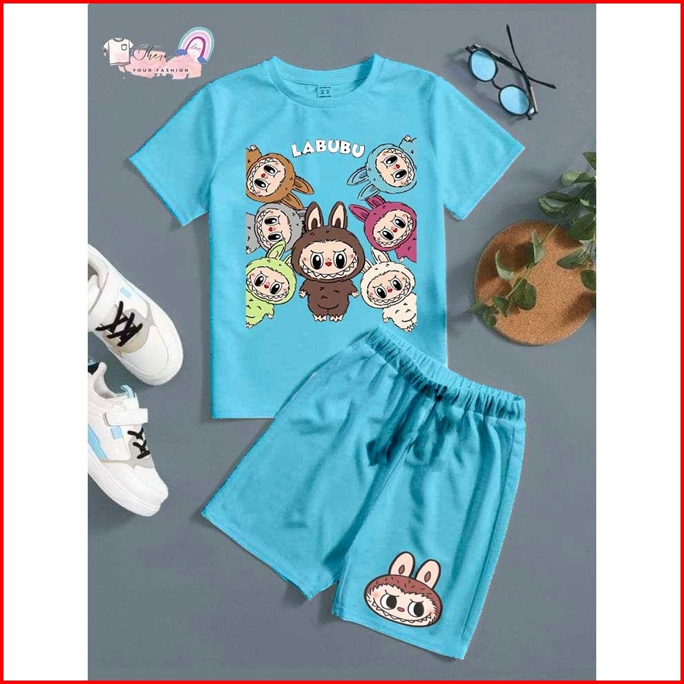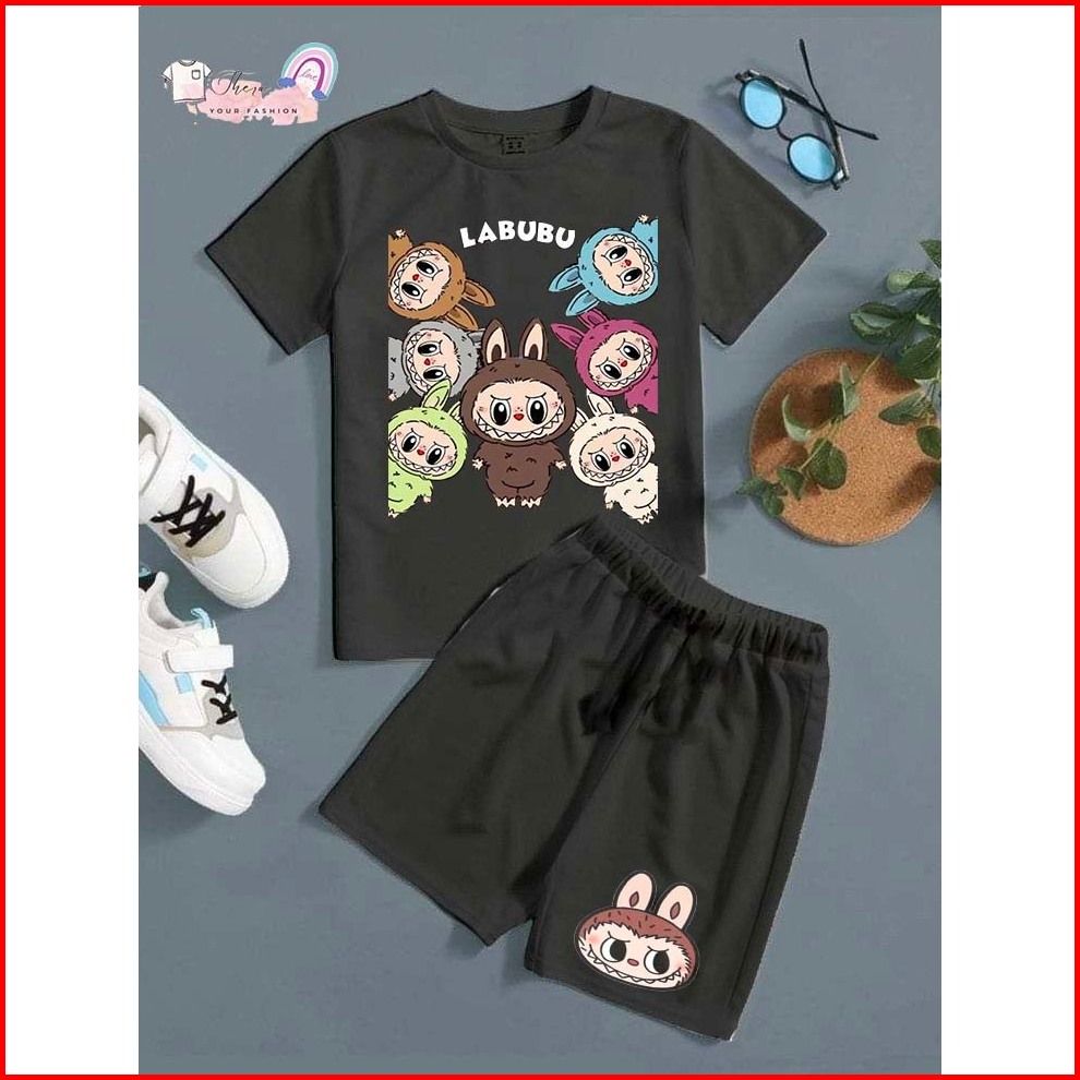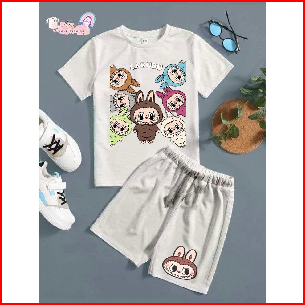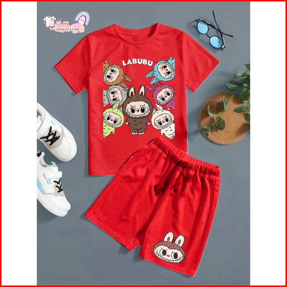 Free Nama Baju Kaos Setelan Anak Motif Labubu Monster Bahan Premium Unisex