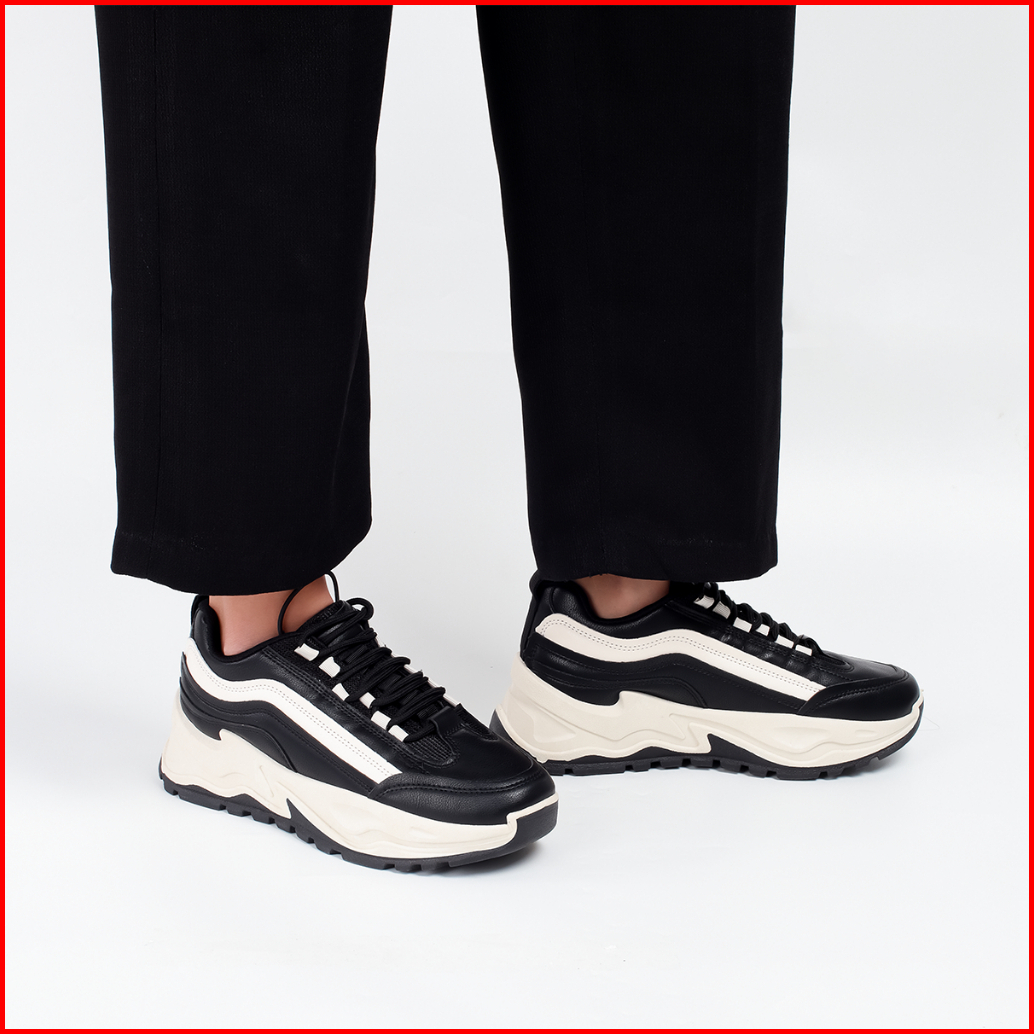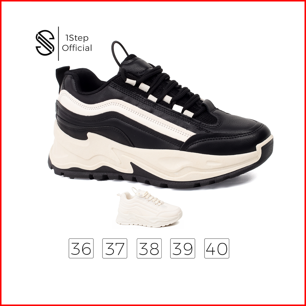 1step Taecyeon Sepatu Sneakers Wanita Hitam Putih Kasual Sport White Black Free Box Size 36-40