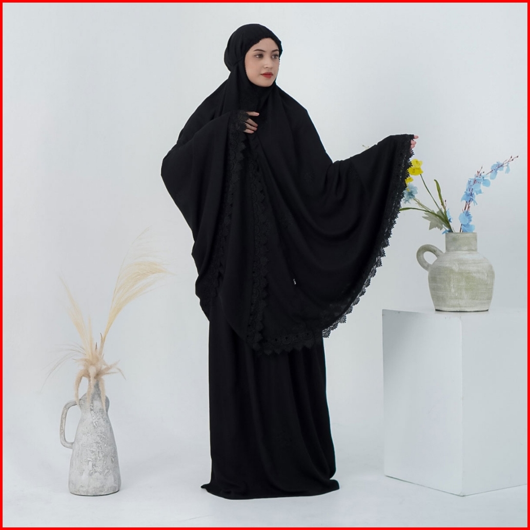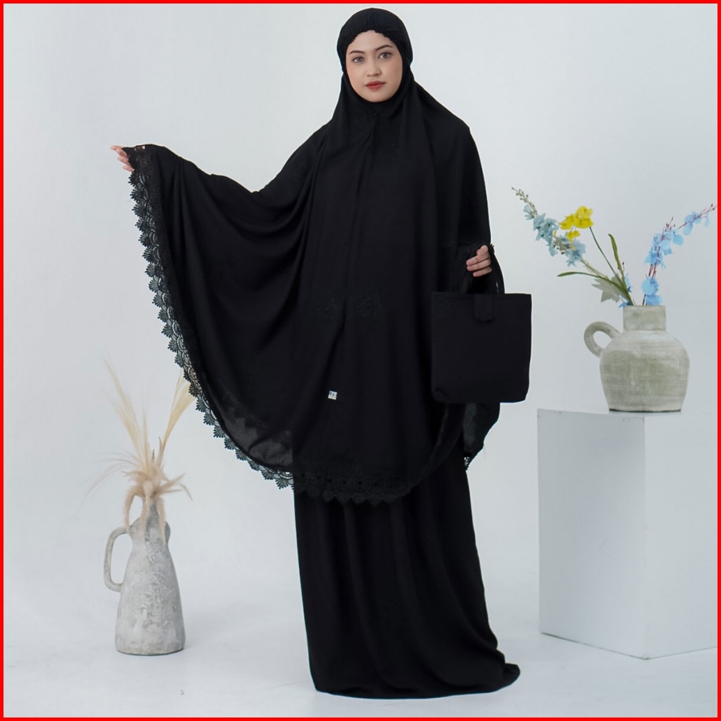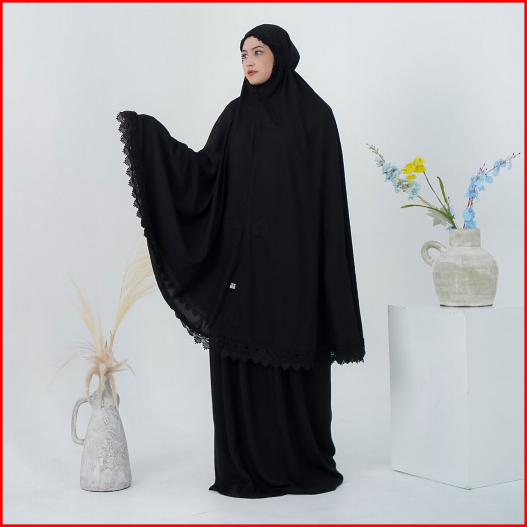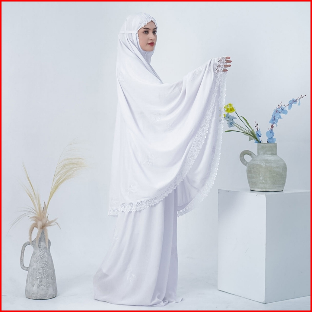 Mukena Dewasa Jumbo Bordir Katun Rayon Premium Renda Zipper