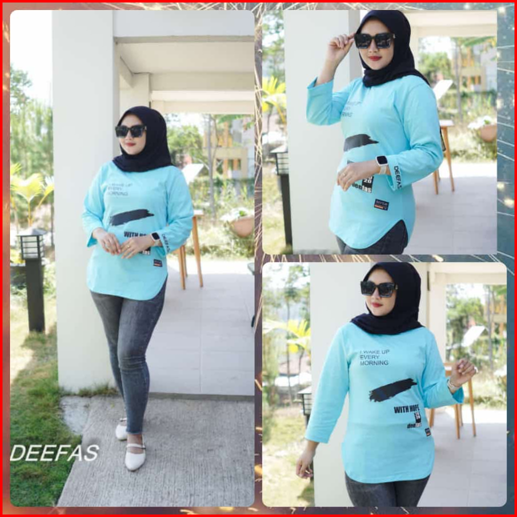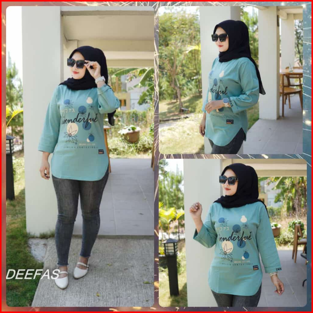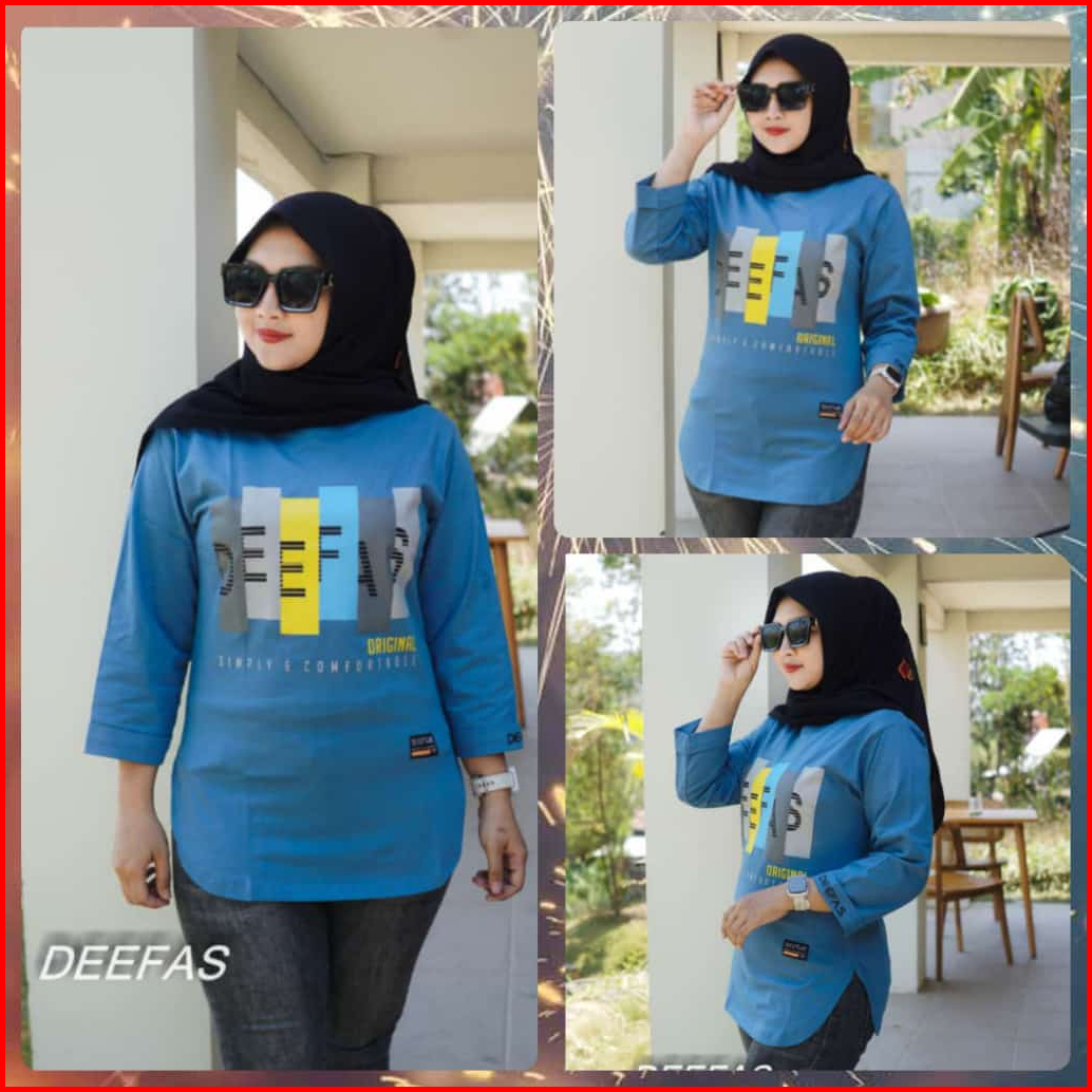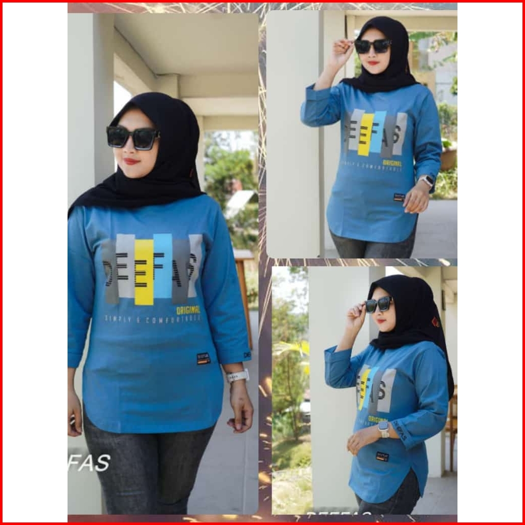 Fashion Oval Motif Atasan Baju Kaos Wanita Dengan Lengan Jahitan Stik Balik Panjang Lengan 7 8 Bahan Katun Combet20s