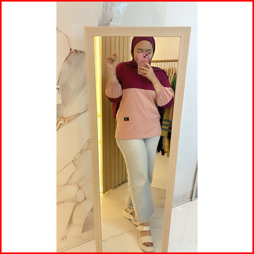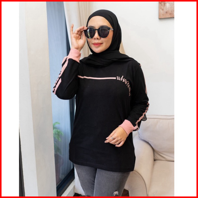 Kaos Wanita Oval Kombinasi Salur Atasan Wanita Model Los Belah Pinggir Original Fst Kaos Wanita Lengan Panjang Size S Xx
