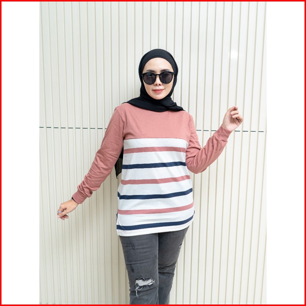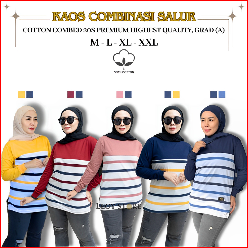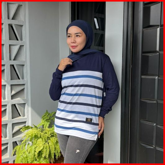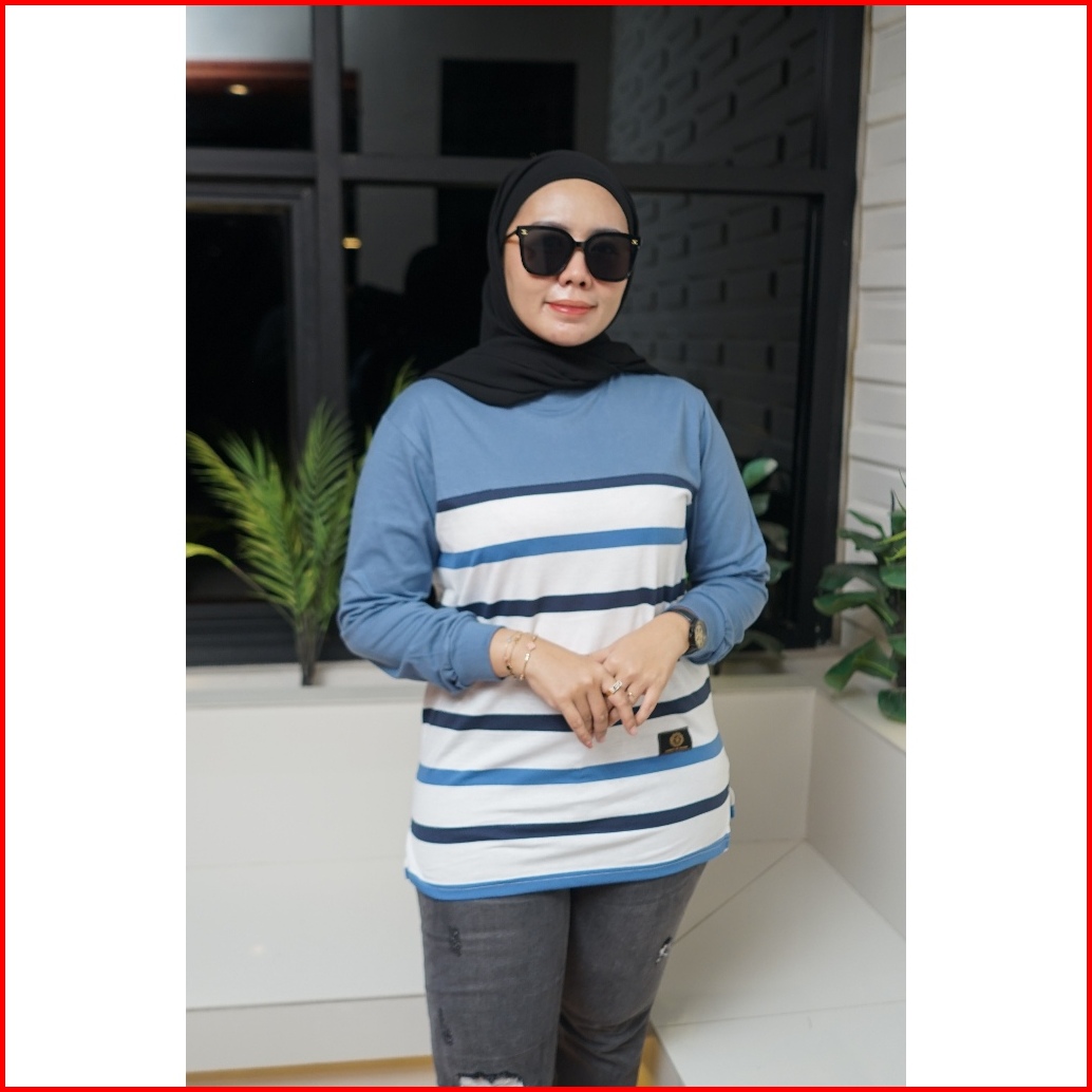 Legystore - Kaos Wanita Garis Salur Lengan Panjang Katun Combed 20s Premium Atasan Jumbo