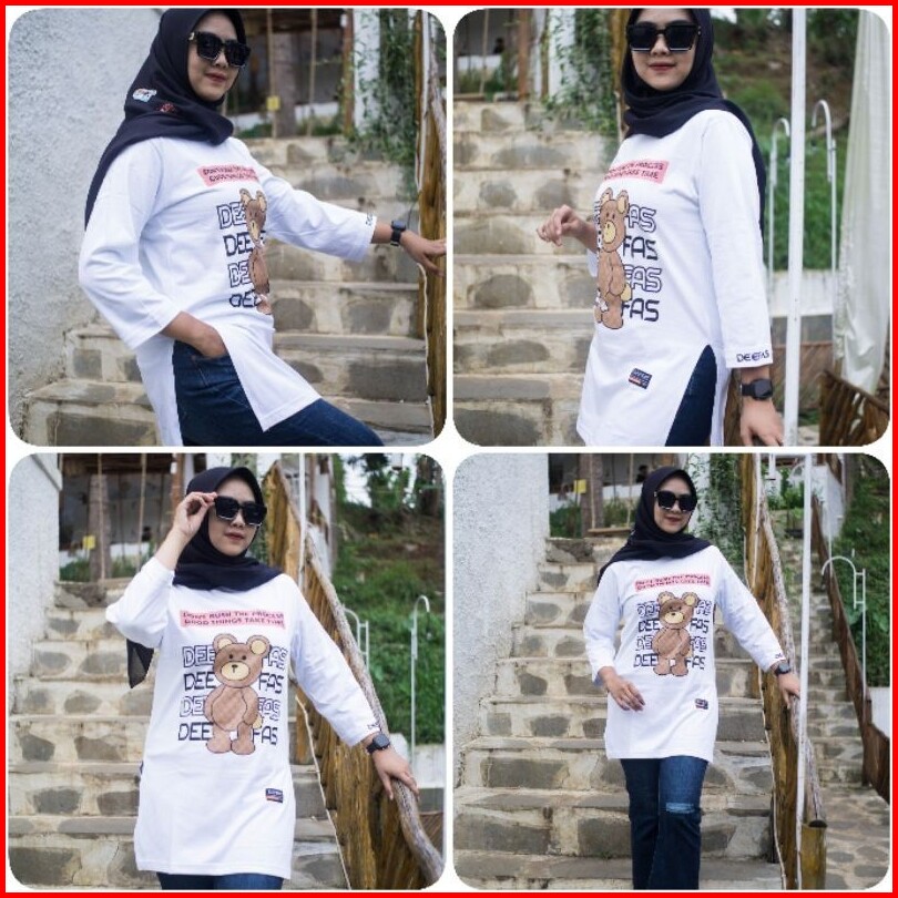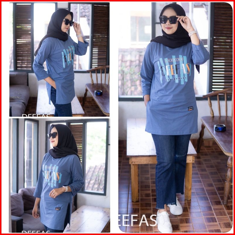 Tunik Stik Balik 08a Atasan Kaos Wanita Lengan 7 8 Jahitan Belah Pinggir Bahan Katun Kombet 20s