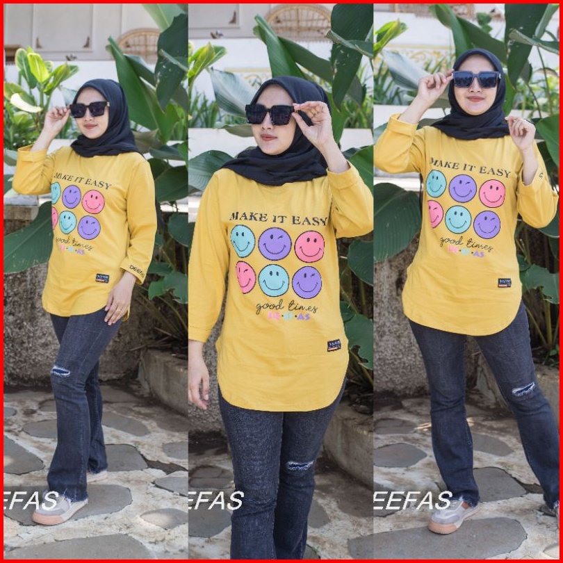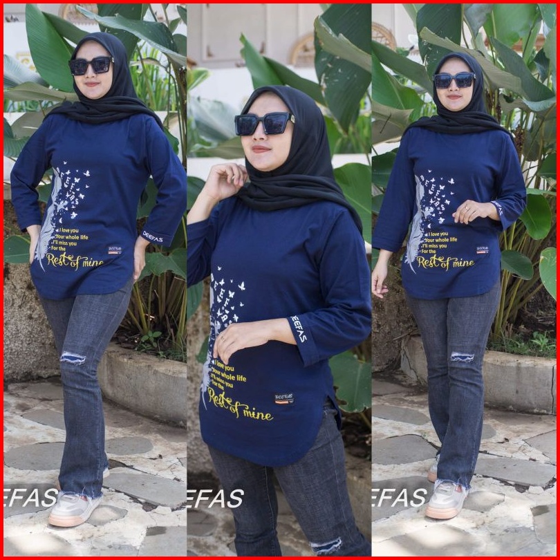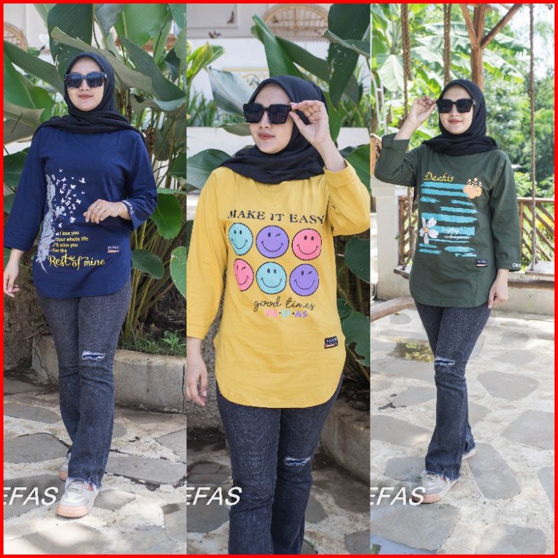 Oval Motip 04tangan Setik Balik 7 8 Kaos Atasan Wanita Deefas Original