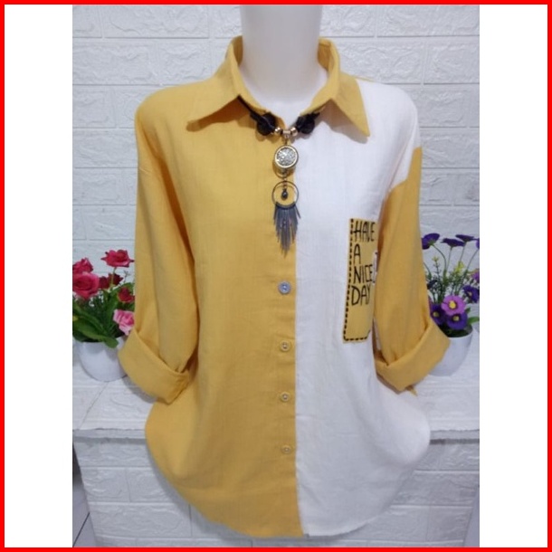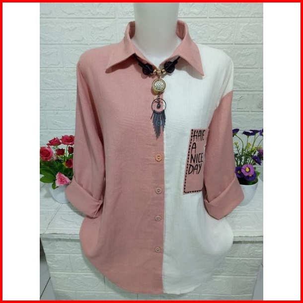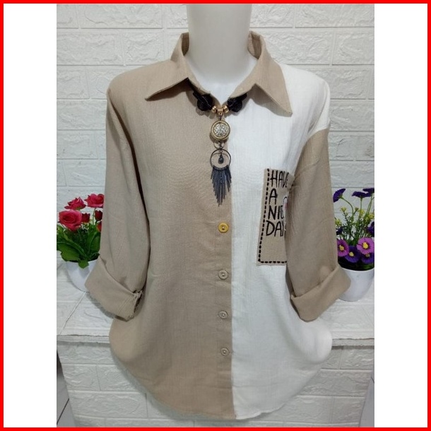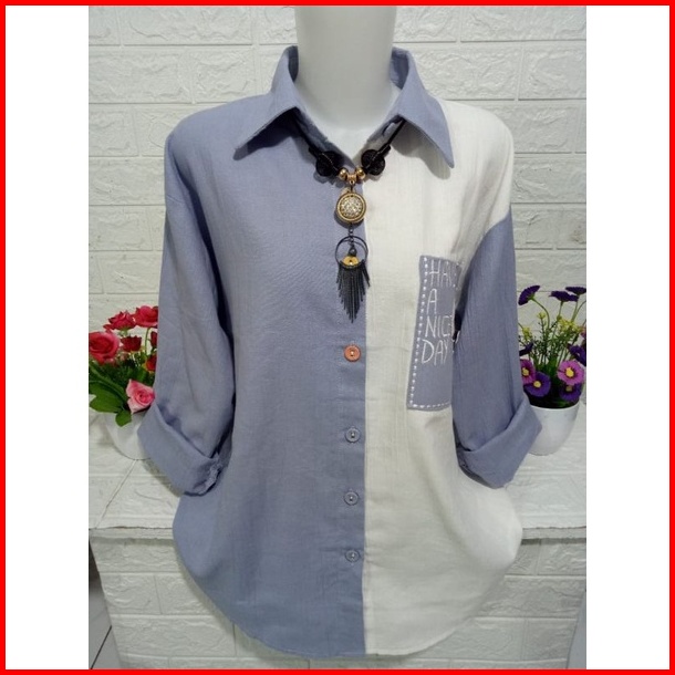 Atasan Casual Kemeja Kombinasi Wanita C1389w