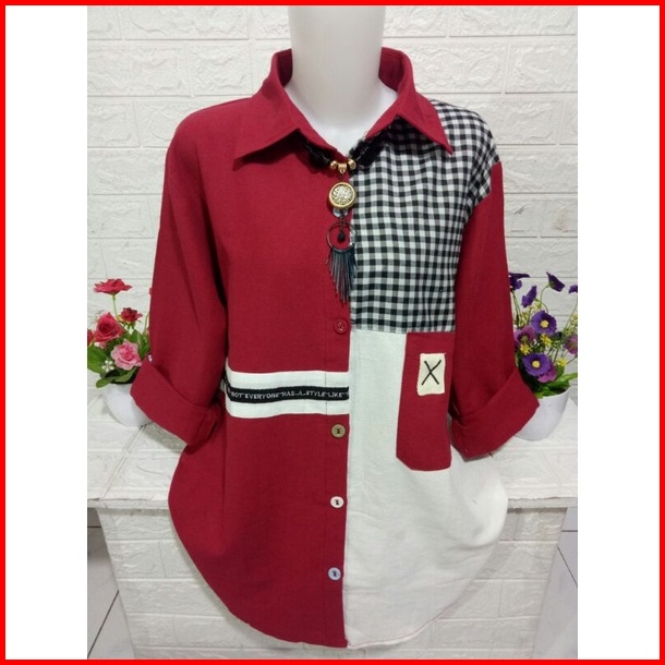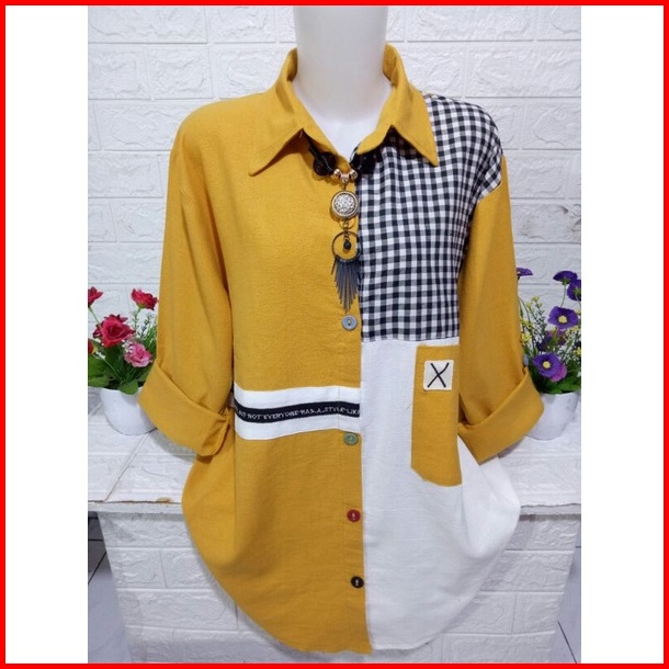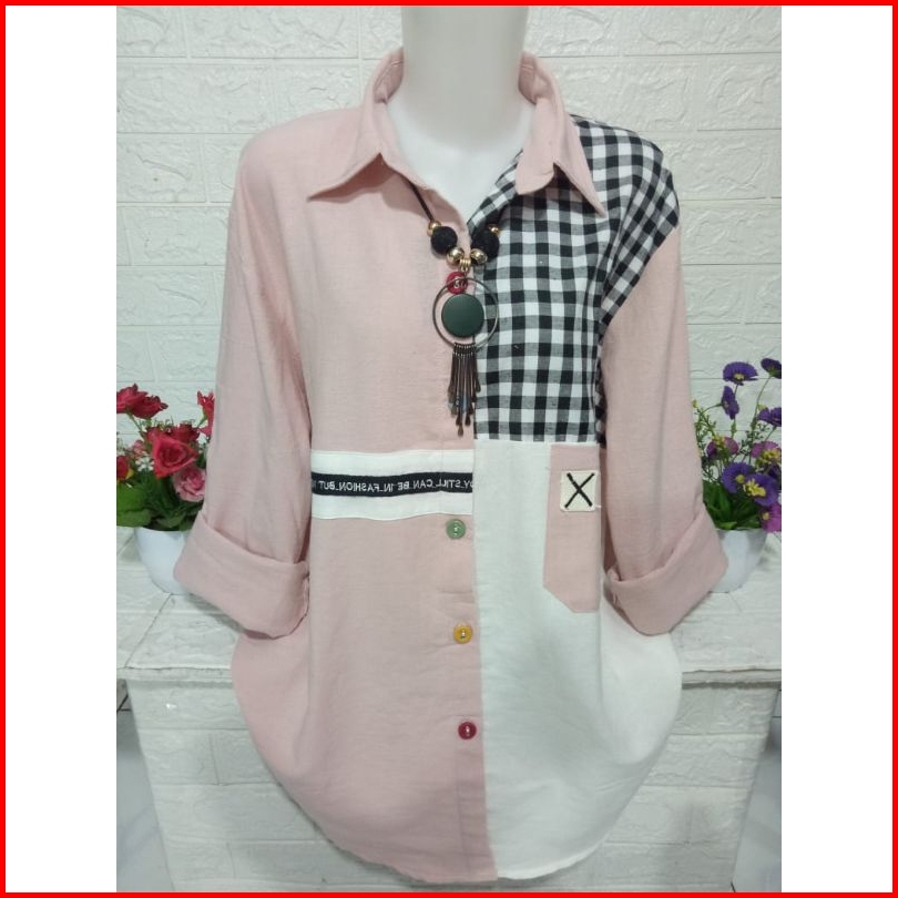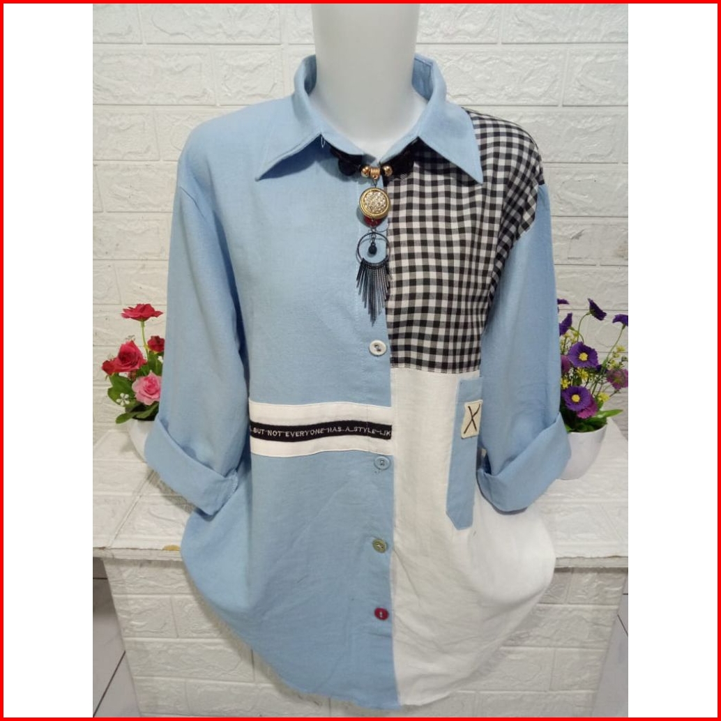 Atasan Kemeja Fashion Wanita Lengan Panjang Model Kombinasi B357
