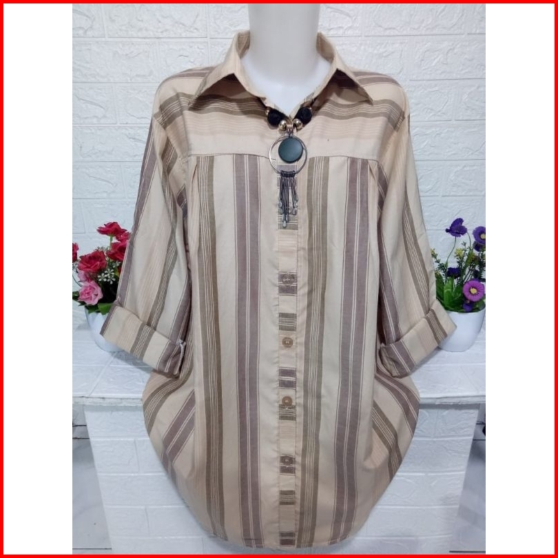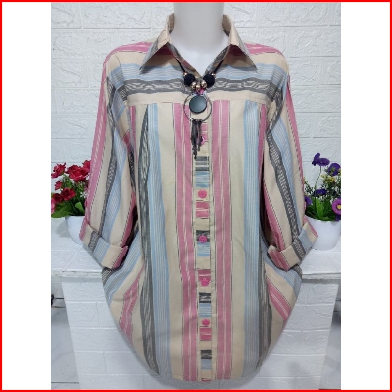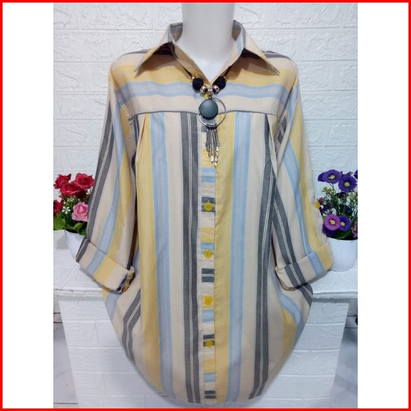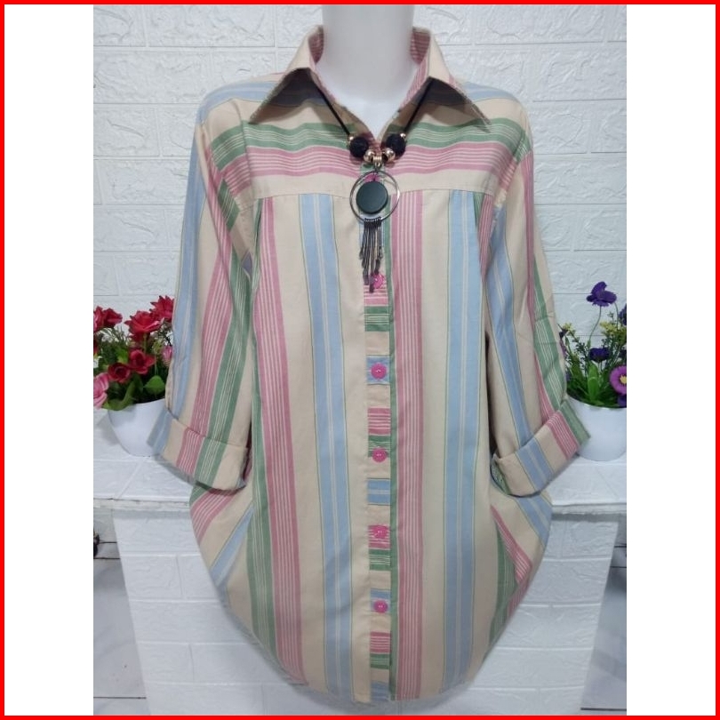 Baju Cewek Kemeja Katun Garis-garis Lengan Panjang