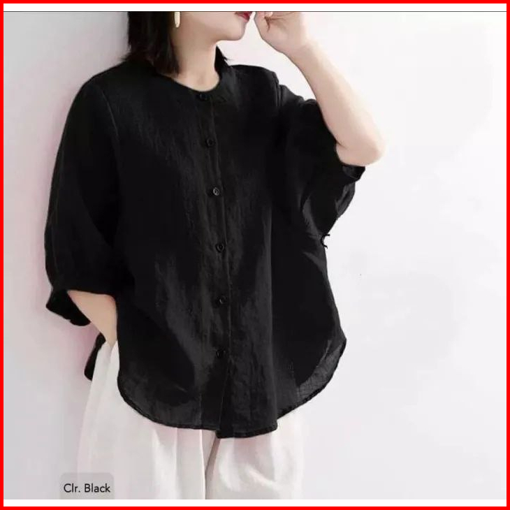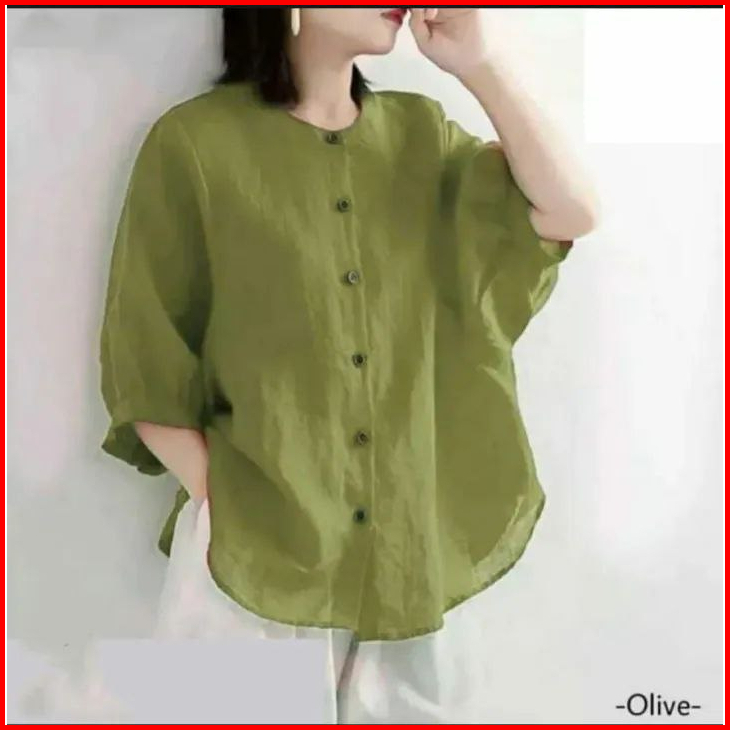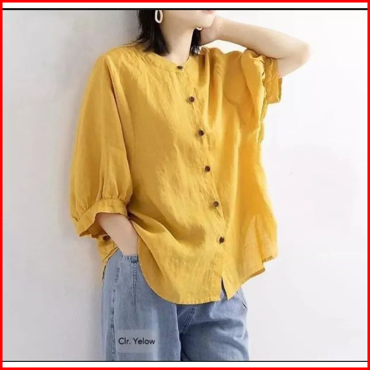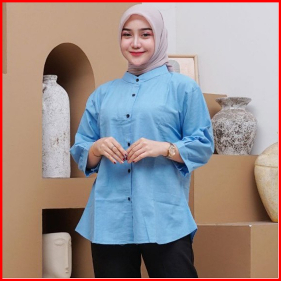 Kemeja Linen Wanita Kerah Sanghai Blouse Wanita Katun Linen Rami