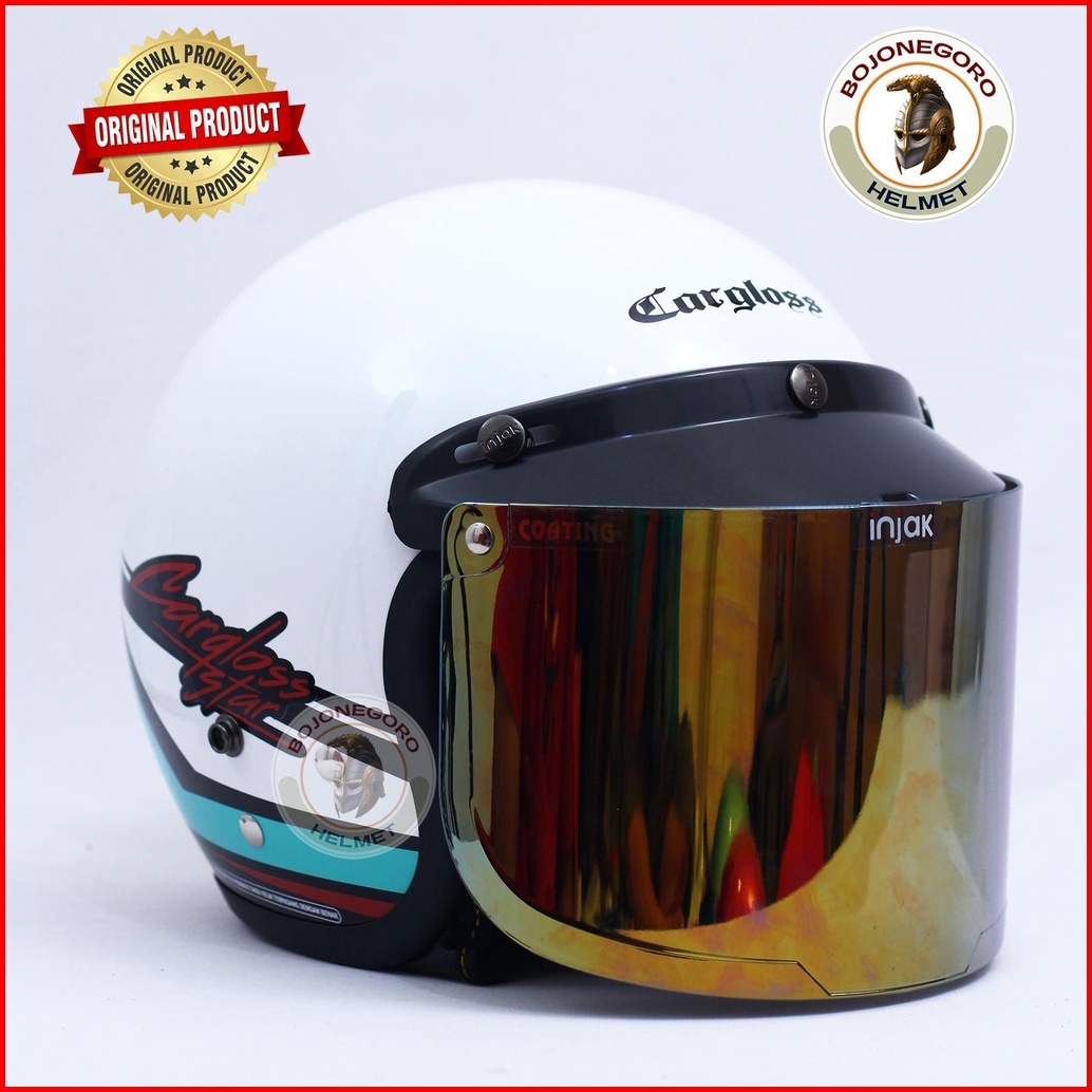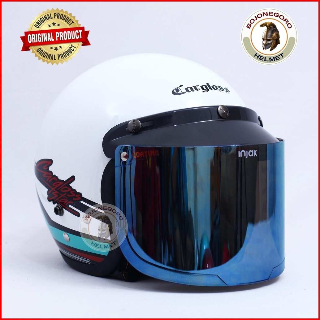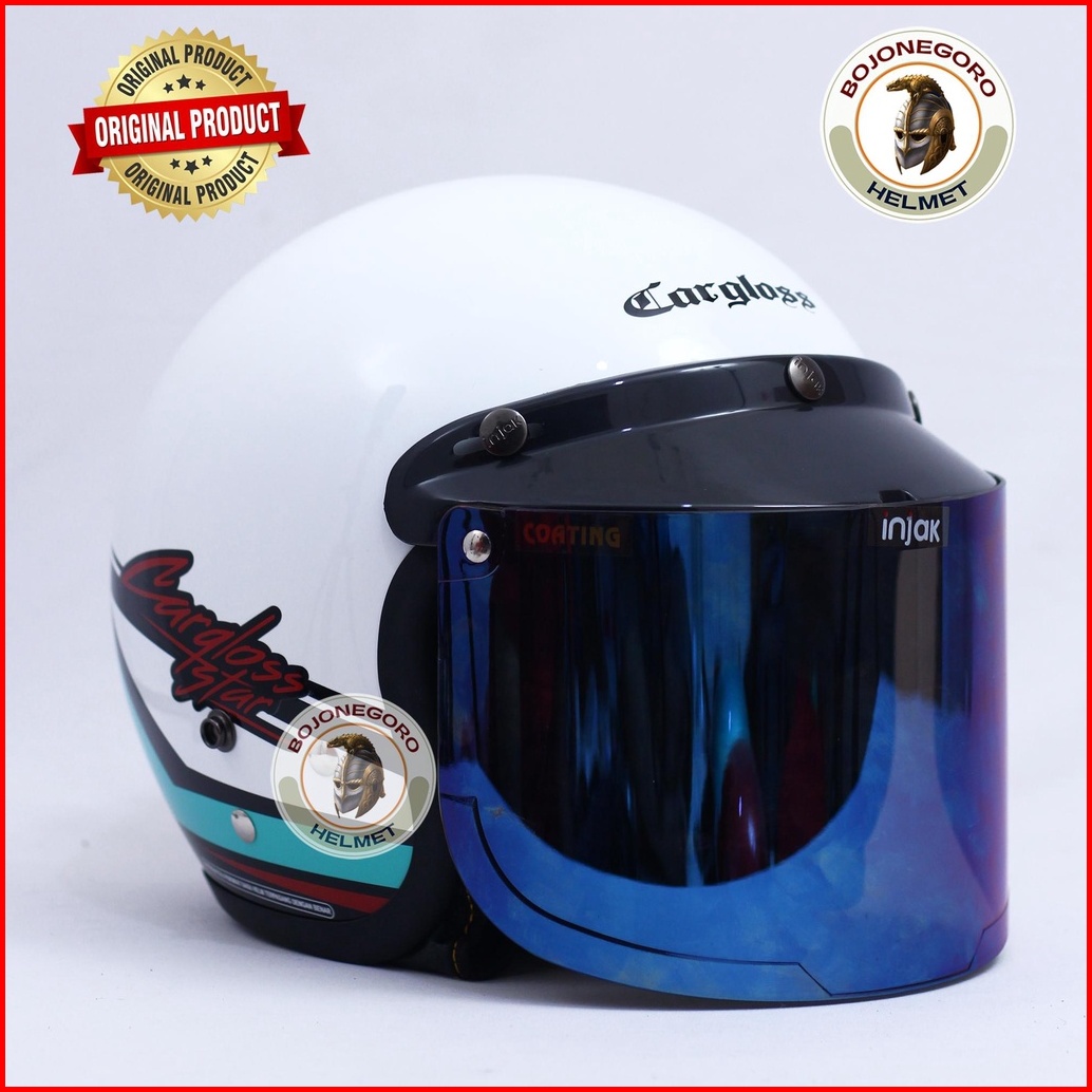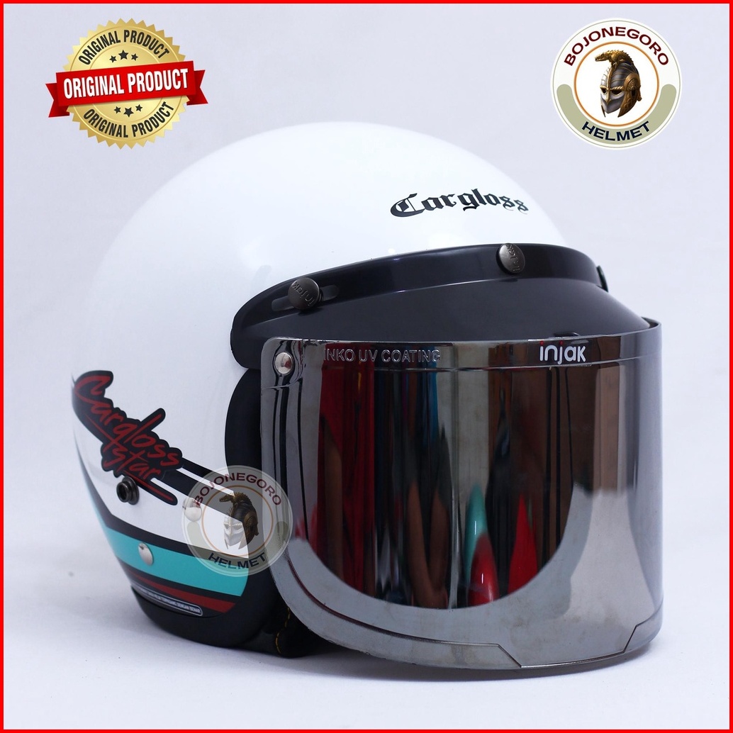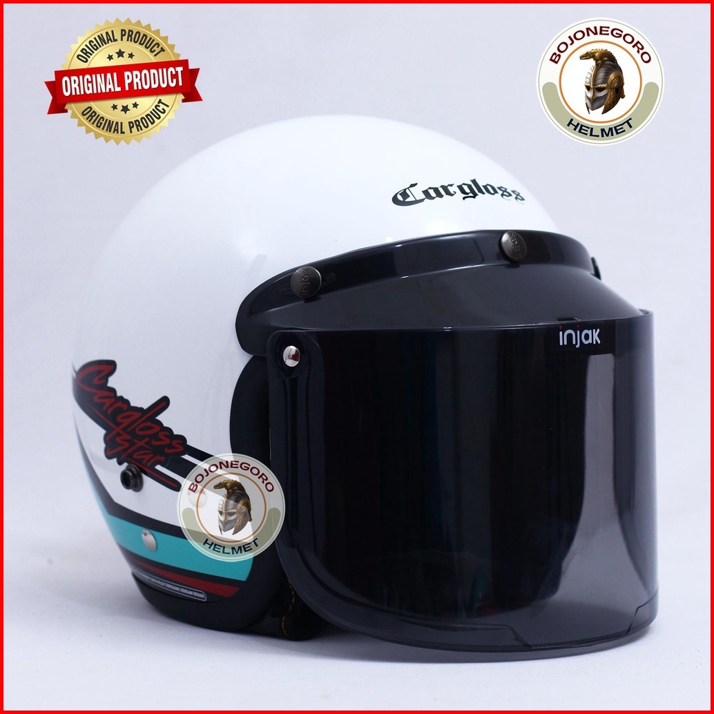 Helm Cargloss Cfm Retro Classic Star Link White Glossy Sni Original