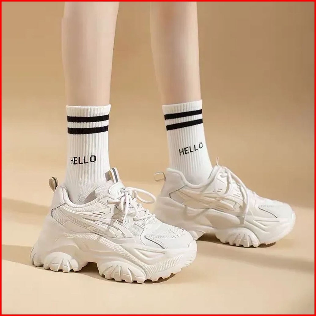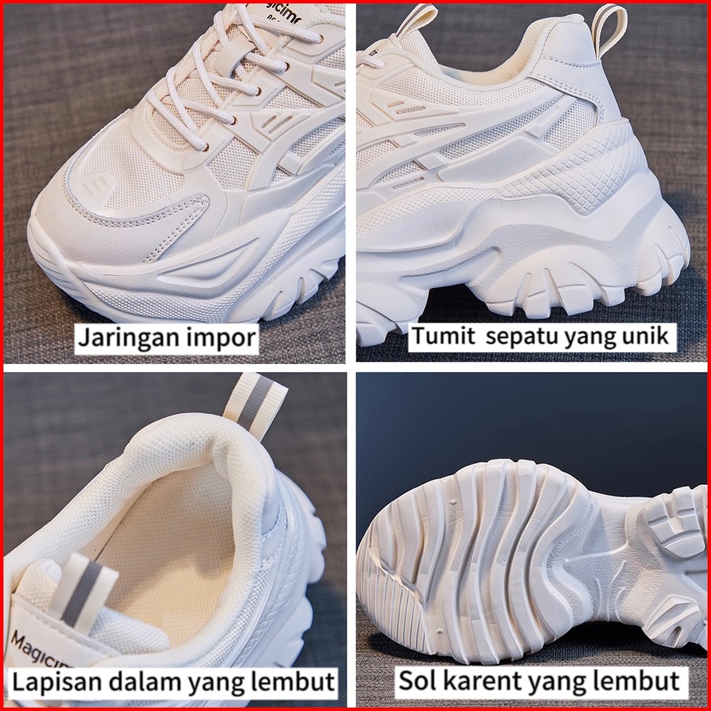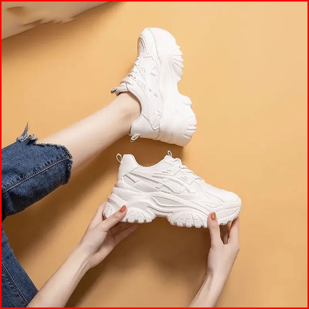 Sepatu Wanita Sneakers Dengan Kasual Korea Menarik 5cm Sol Tinggi Putih Beige Hitam St040