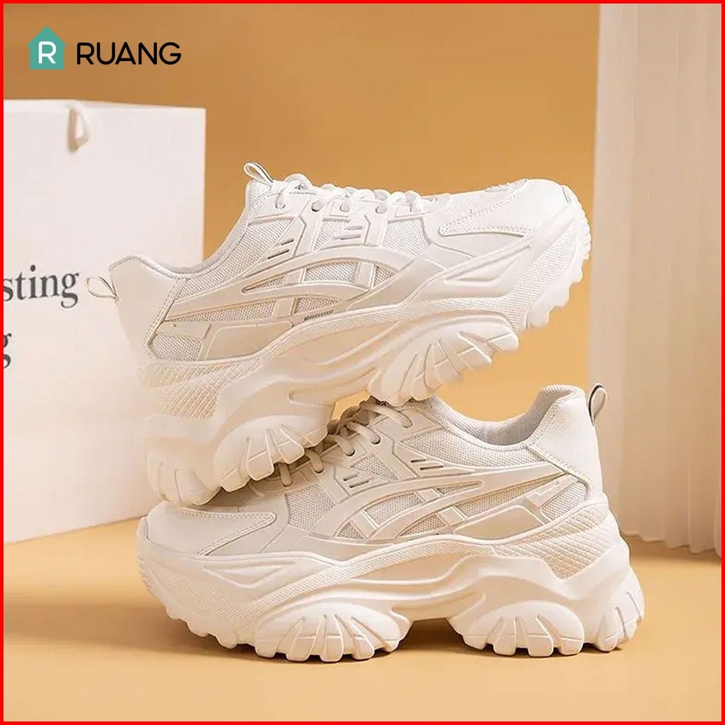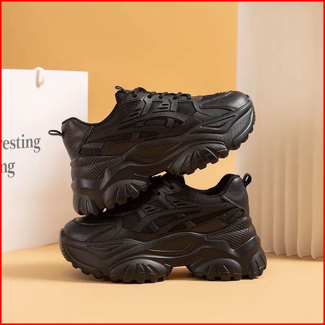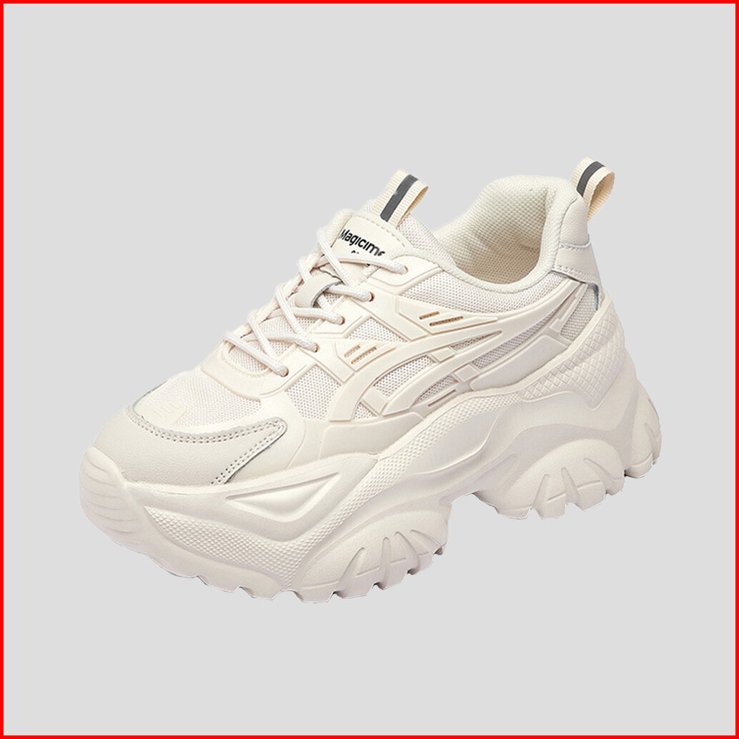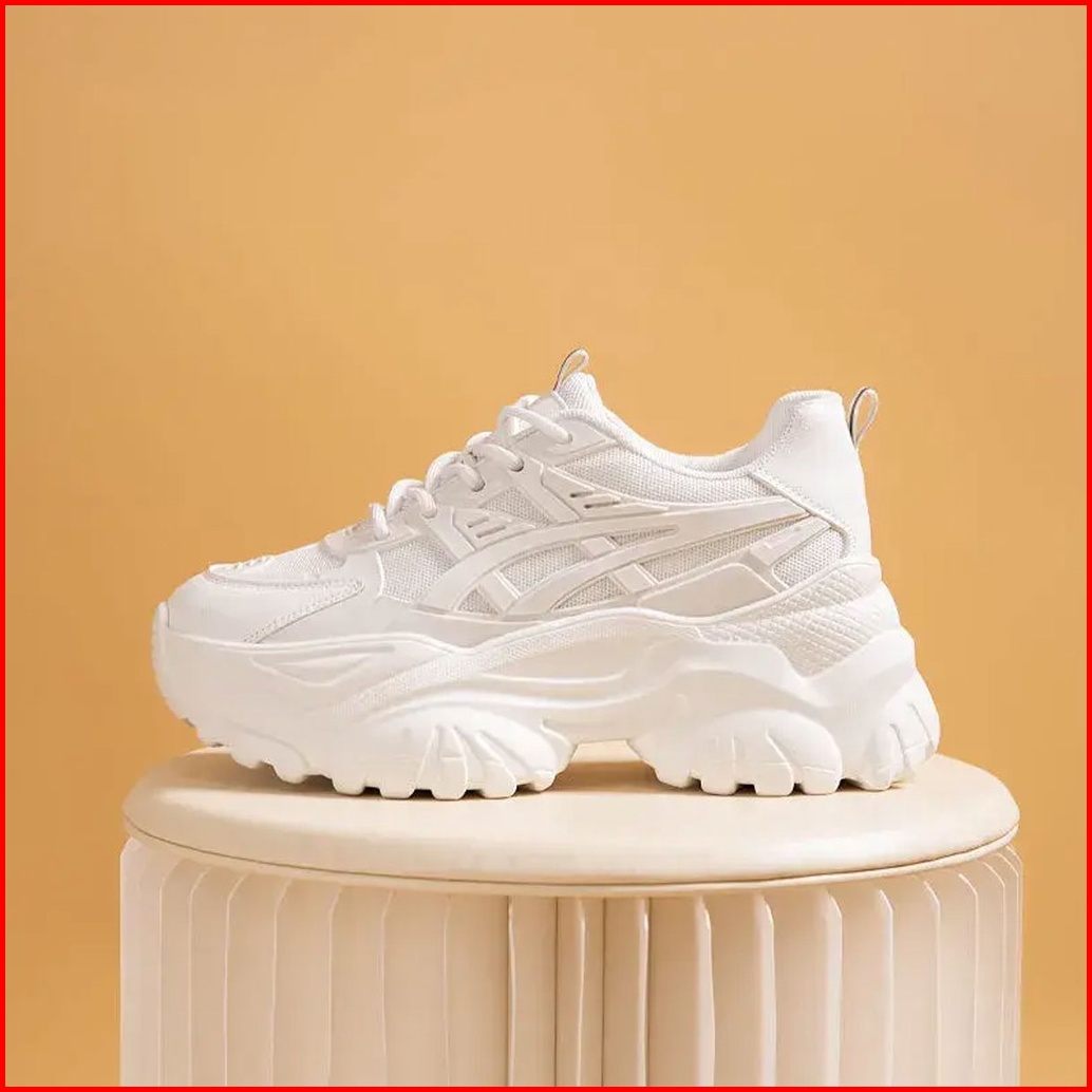 Sepatu Wanita Sneakers Dengan Kasual Korea Menarik 5cm Sol Tinggi Putih Beige Hitam St040