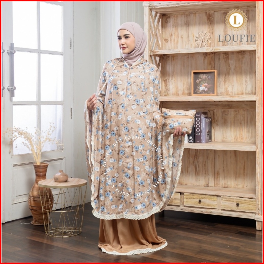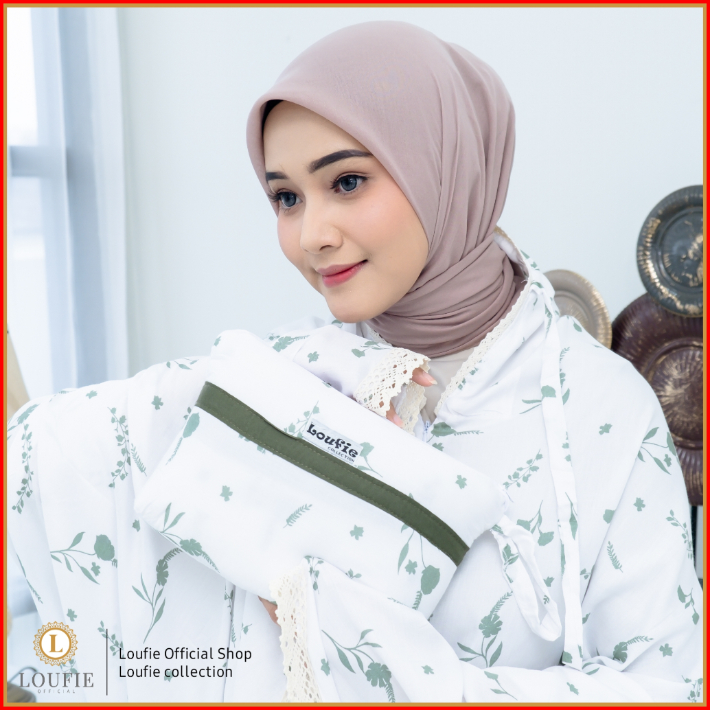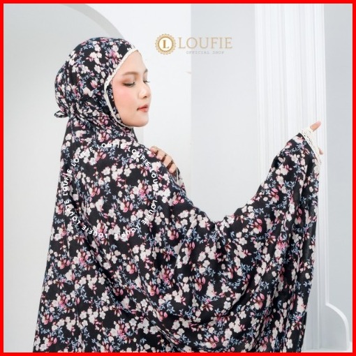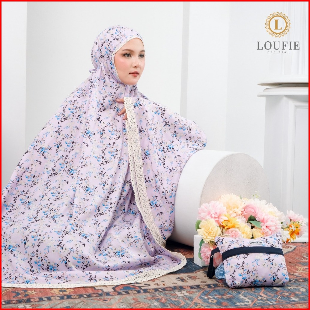 Loufie - Mukena Dewasa Rayon Motif Bunga Printing 2 In 1 Renda Rajut Isyana Premium Jumbo