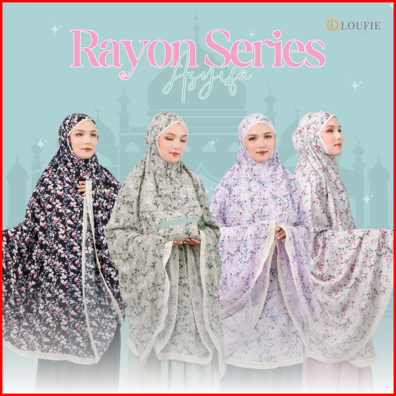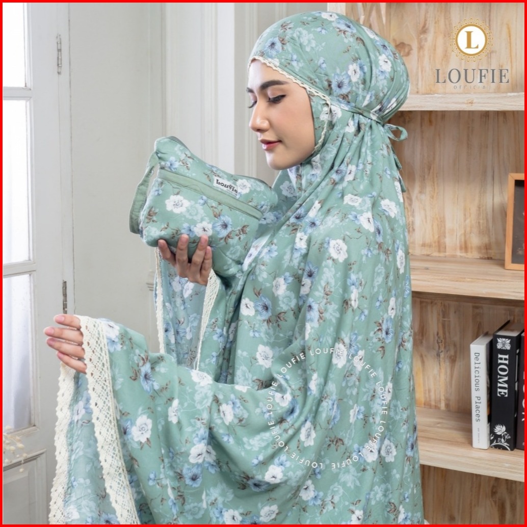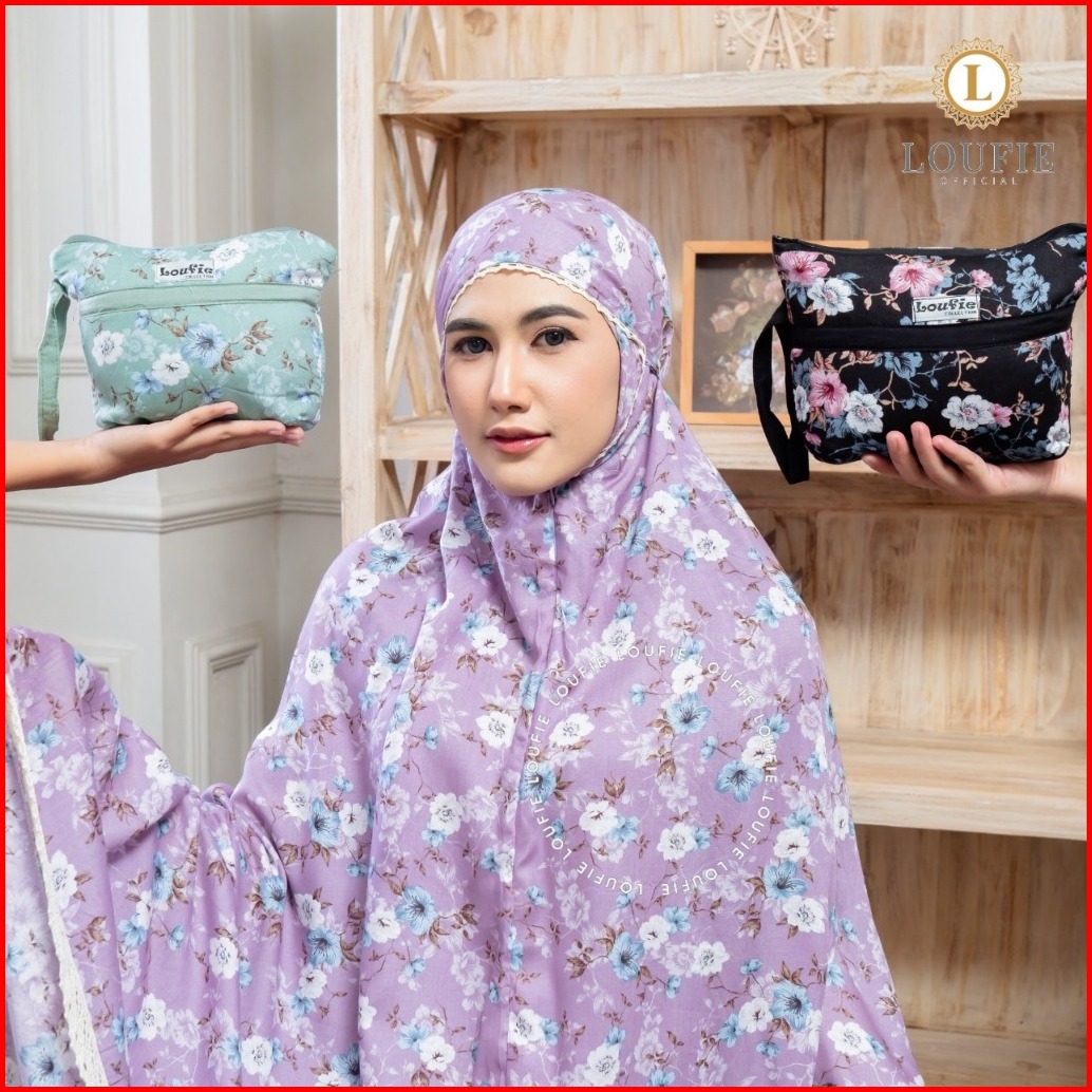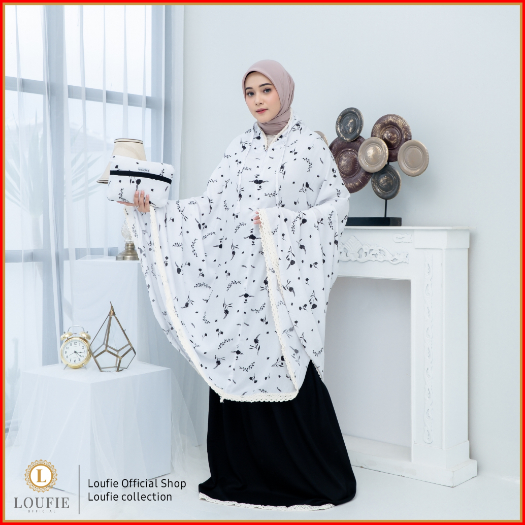 Loufie - Mukena Dewasa Rayon Motif Bunga Printing 2 In 1 Renda Rajut Isyana Premium Jumbo