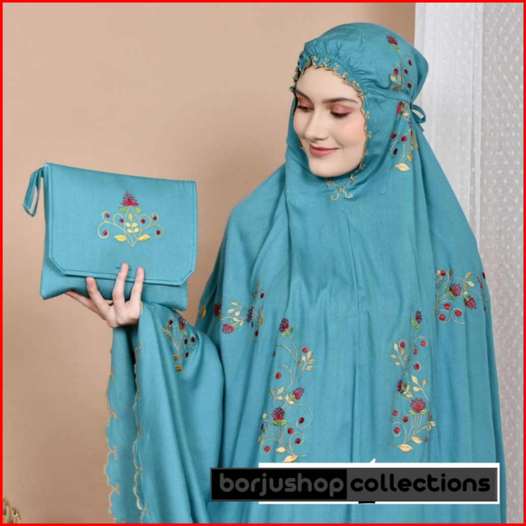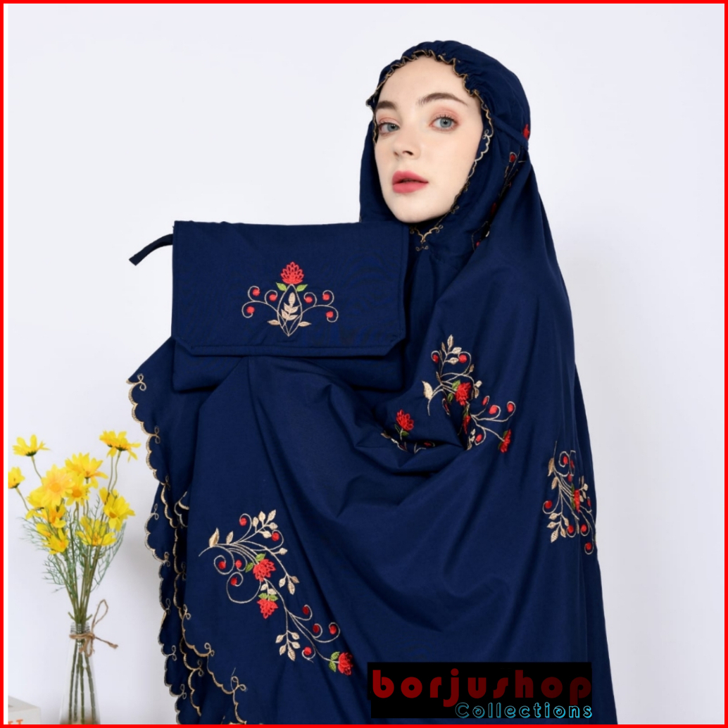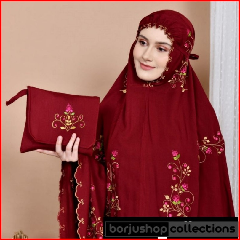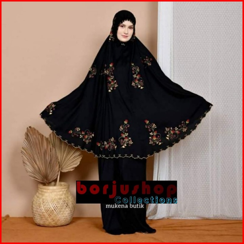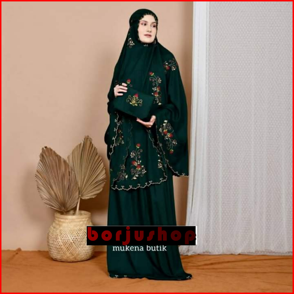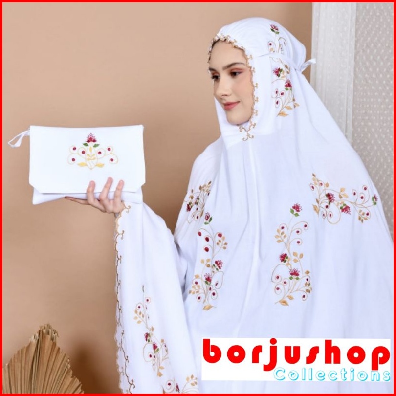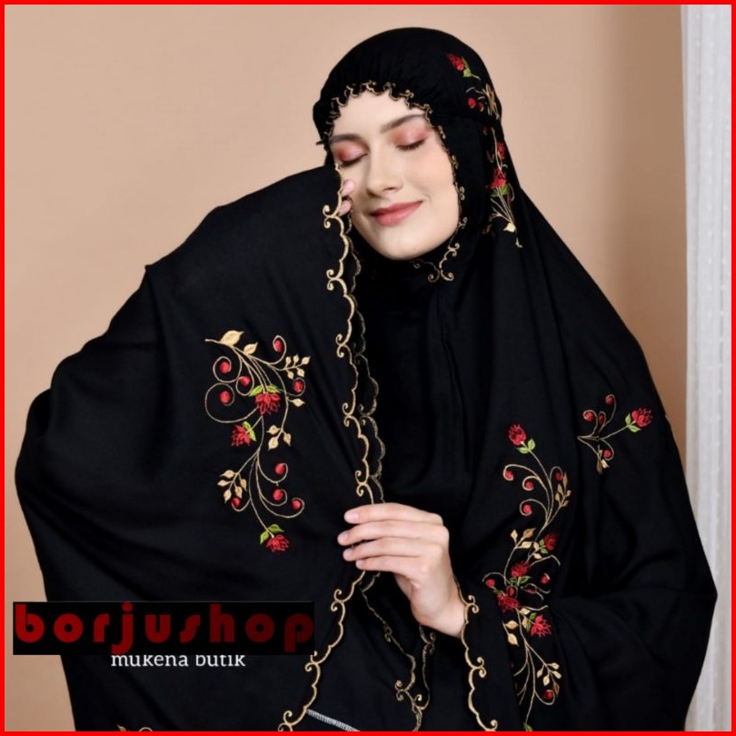 Mukena Katun Premium Bordir Butik Mewah Bunga Platinum Rose Mukena Katun Bunga Rose