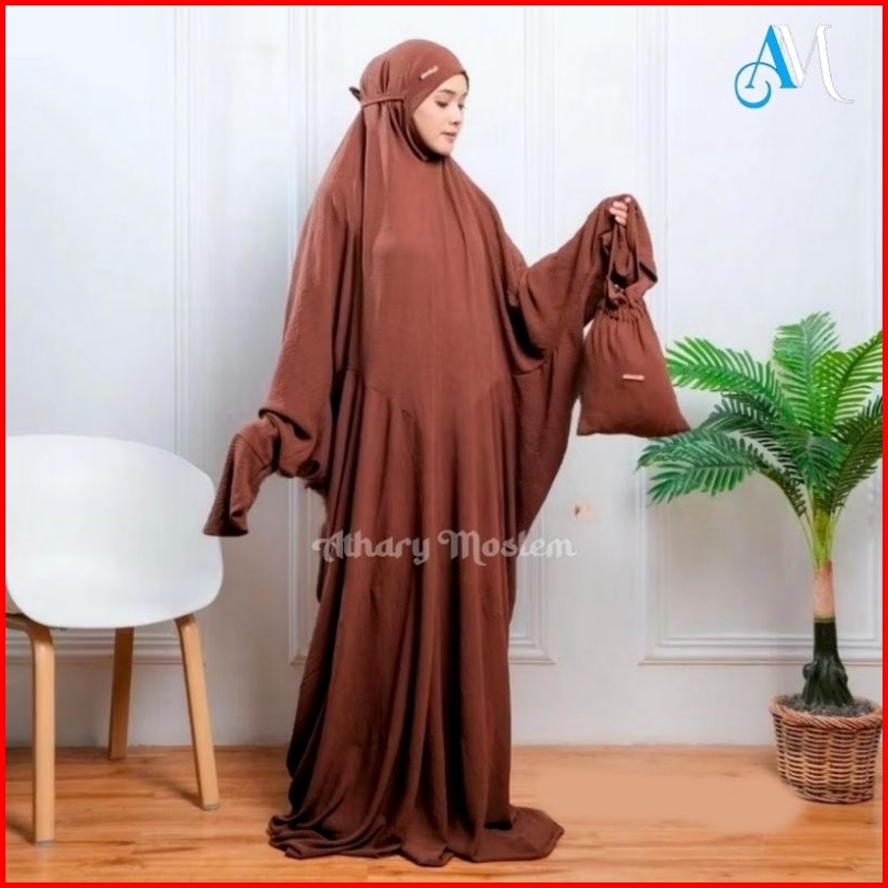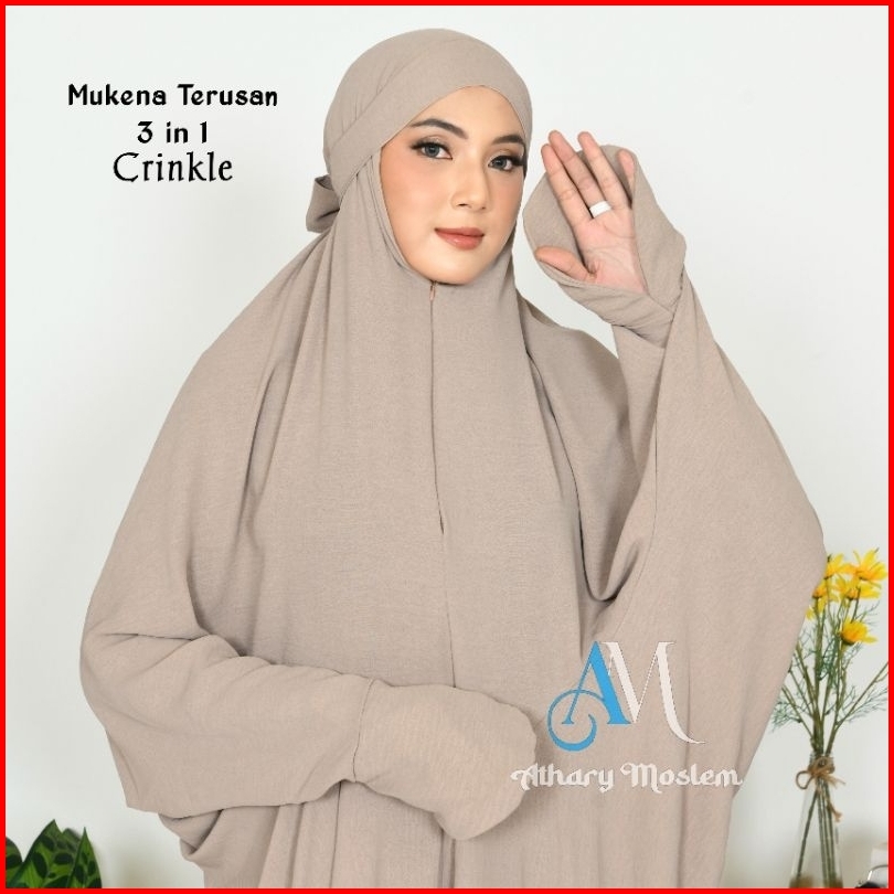Mukena Terusan Dewasa 3in1 Crinkel Airflow Mukena Terusan Jumbo Polos Terbaru