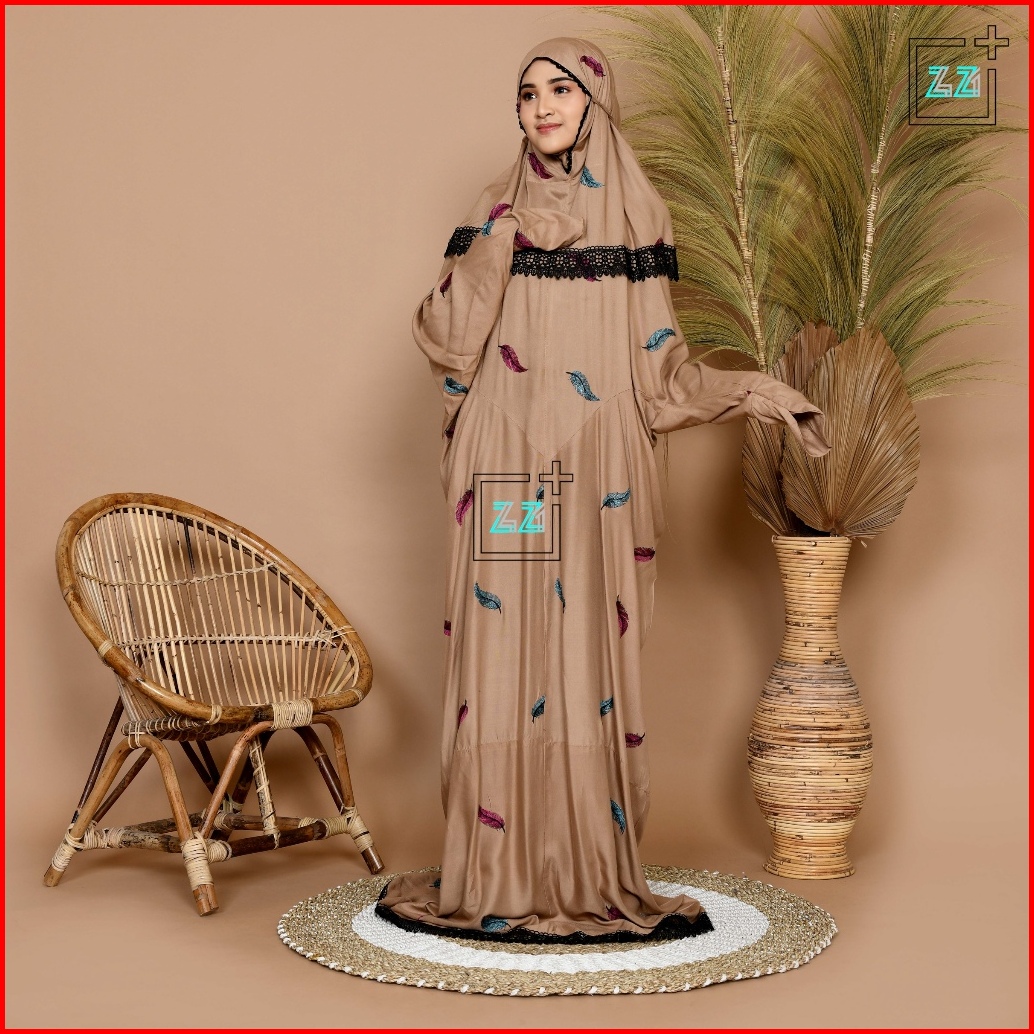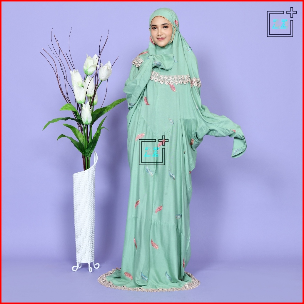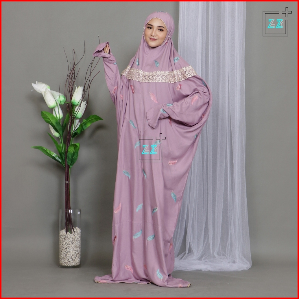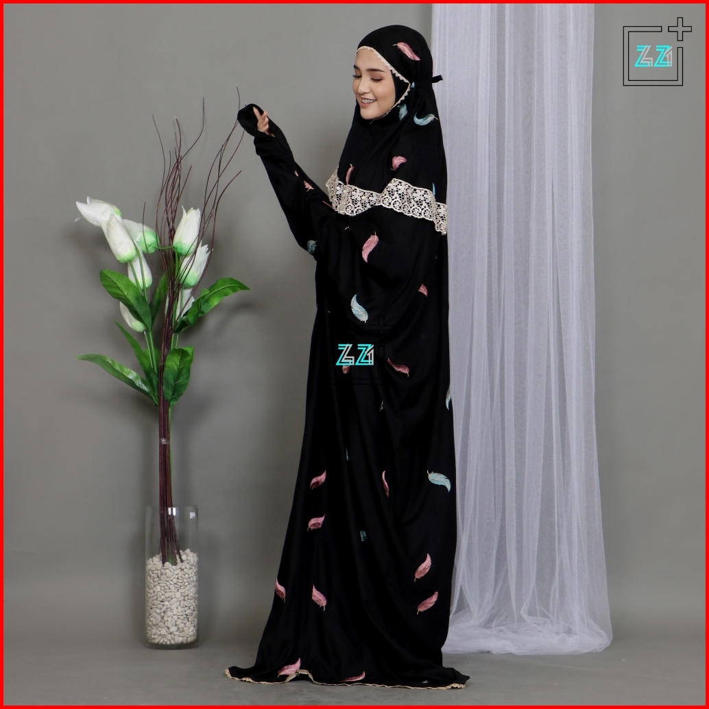 Zazi Stealth Mukena Terusan Dewasa Double Renda Bordir Daun Noah