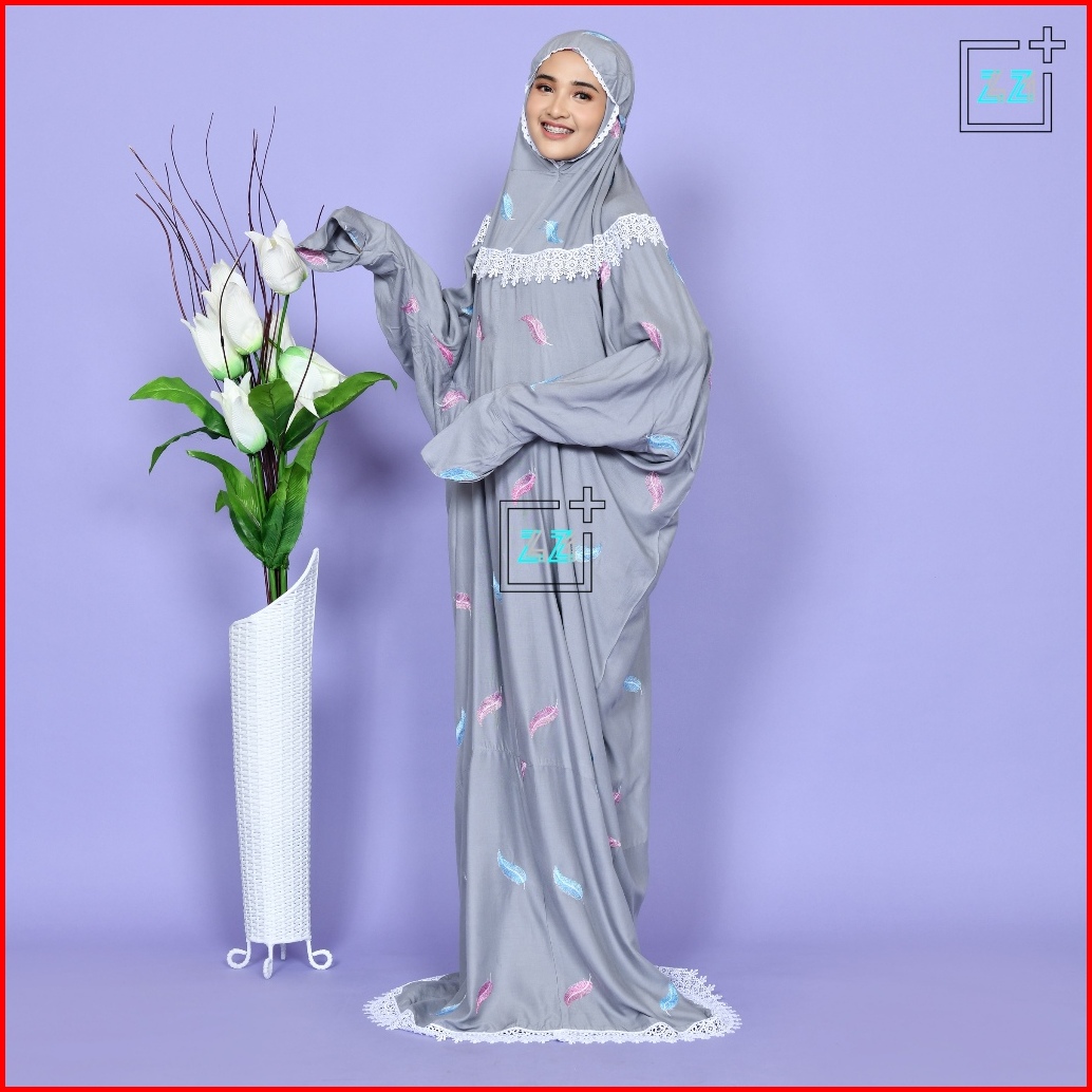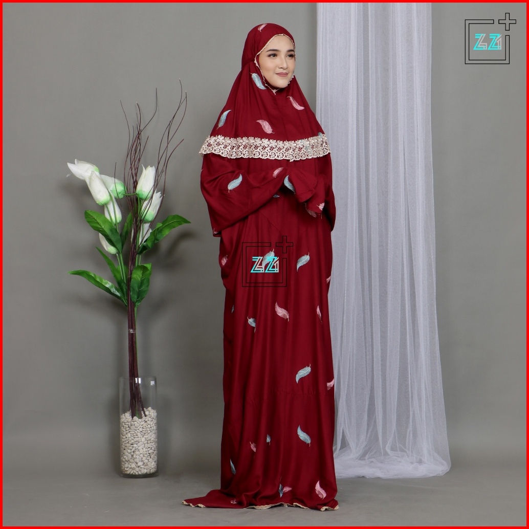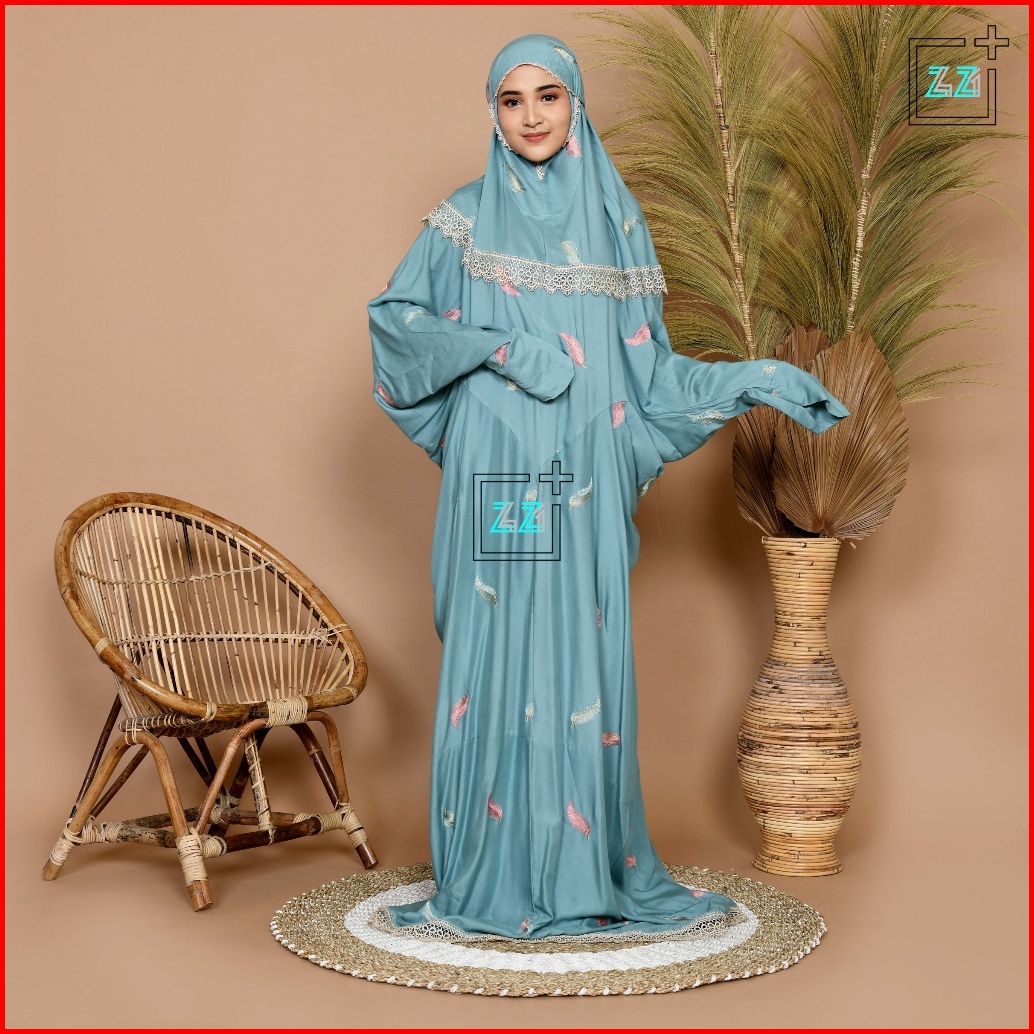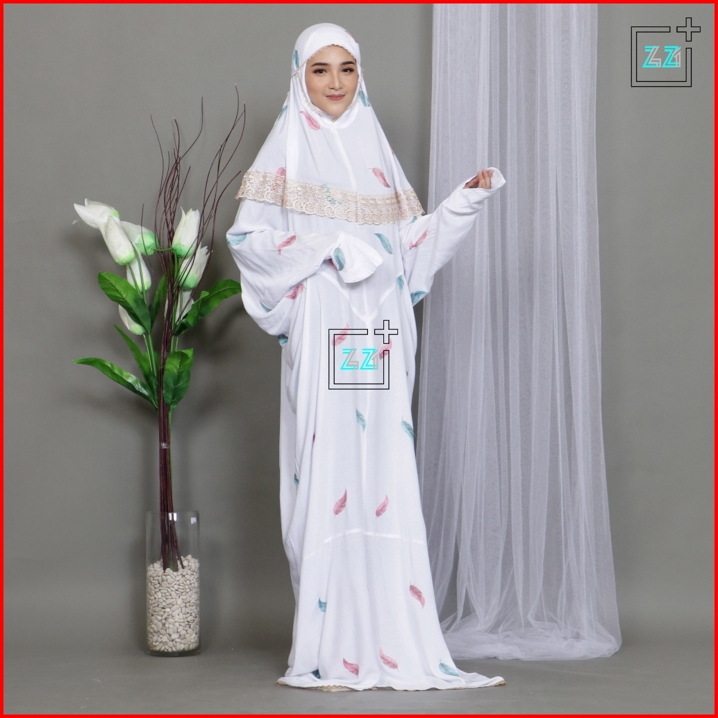 Zazi Stealth Mukena Terusan Dewasa Double Renda Bordir Daun Noah