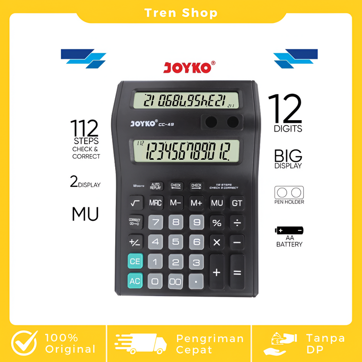 KALKULATOR JOYKO ORIGINAL / CALCULATOR CC-49 12 DIGITS 2 DISPLAY / KALKULATOR JOYKO BERKUALITAS HITUNG CEPAT DAN TEPAT
